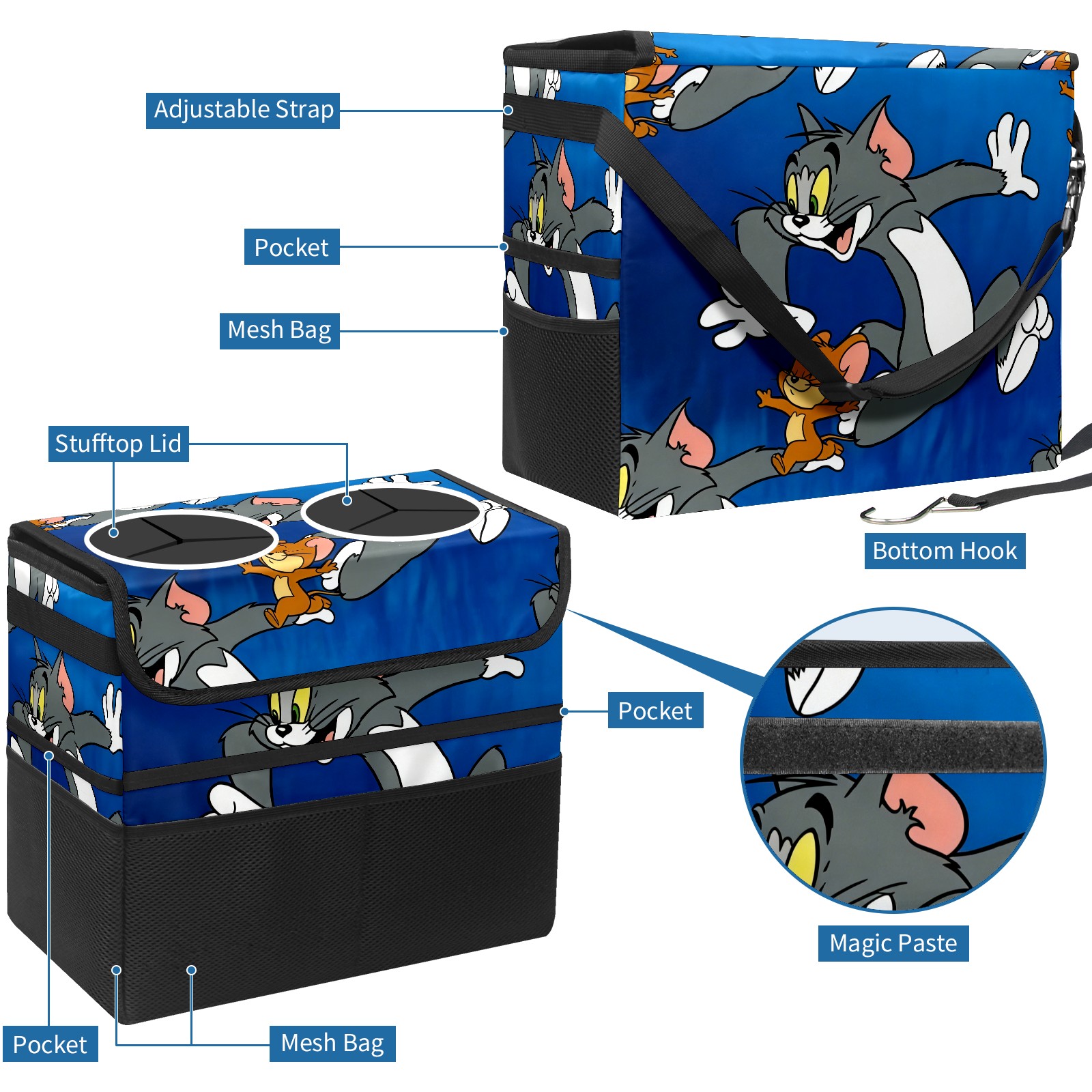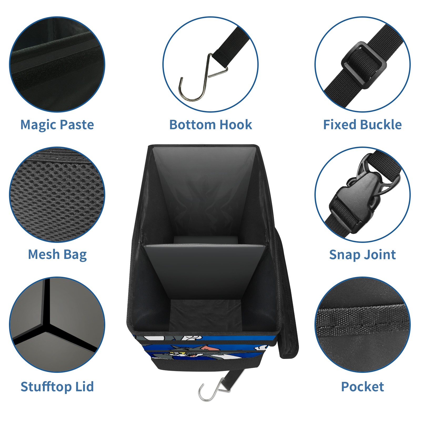 Car Trash Can with Lid, Portable Hanging Automotive Garbage Bin for Vehicles, Leakproof Waste Bag Container for SUV Truck Van Interior Auto Travel Road Trips(创作经典IP图 (91))
