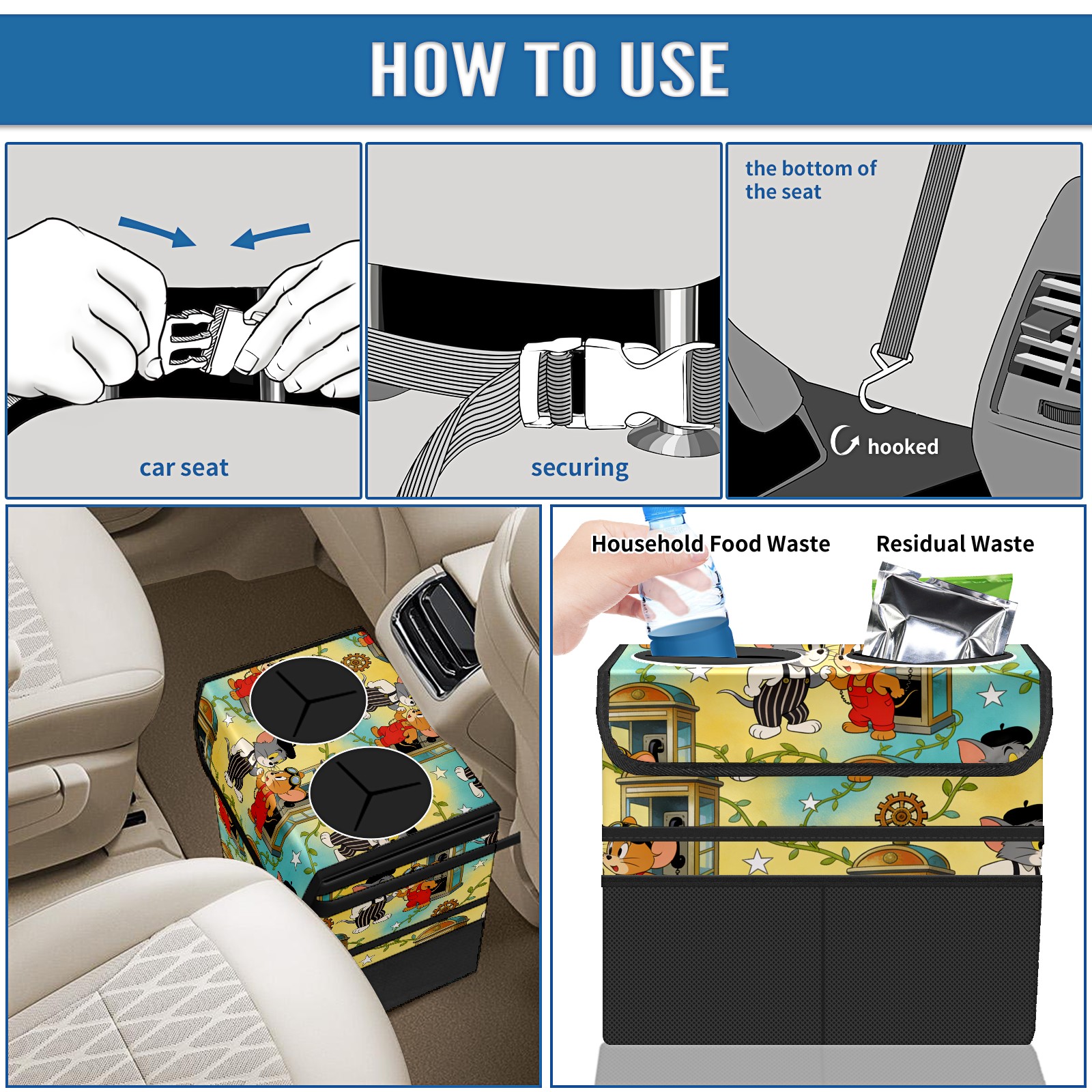 Car Trash Can with Lid, Portable Hanging Automotive Garbage Bin for Vehicles, Leakproof Waste Bag Container for SUV Truck Van Interior Auto Travel Road Trips(创作经典IP图 (67))