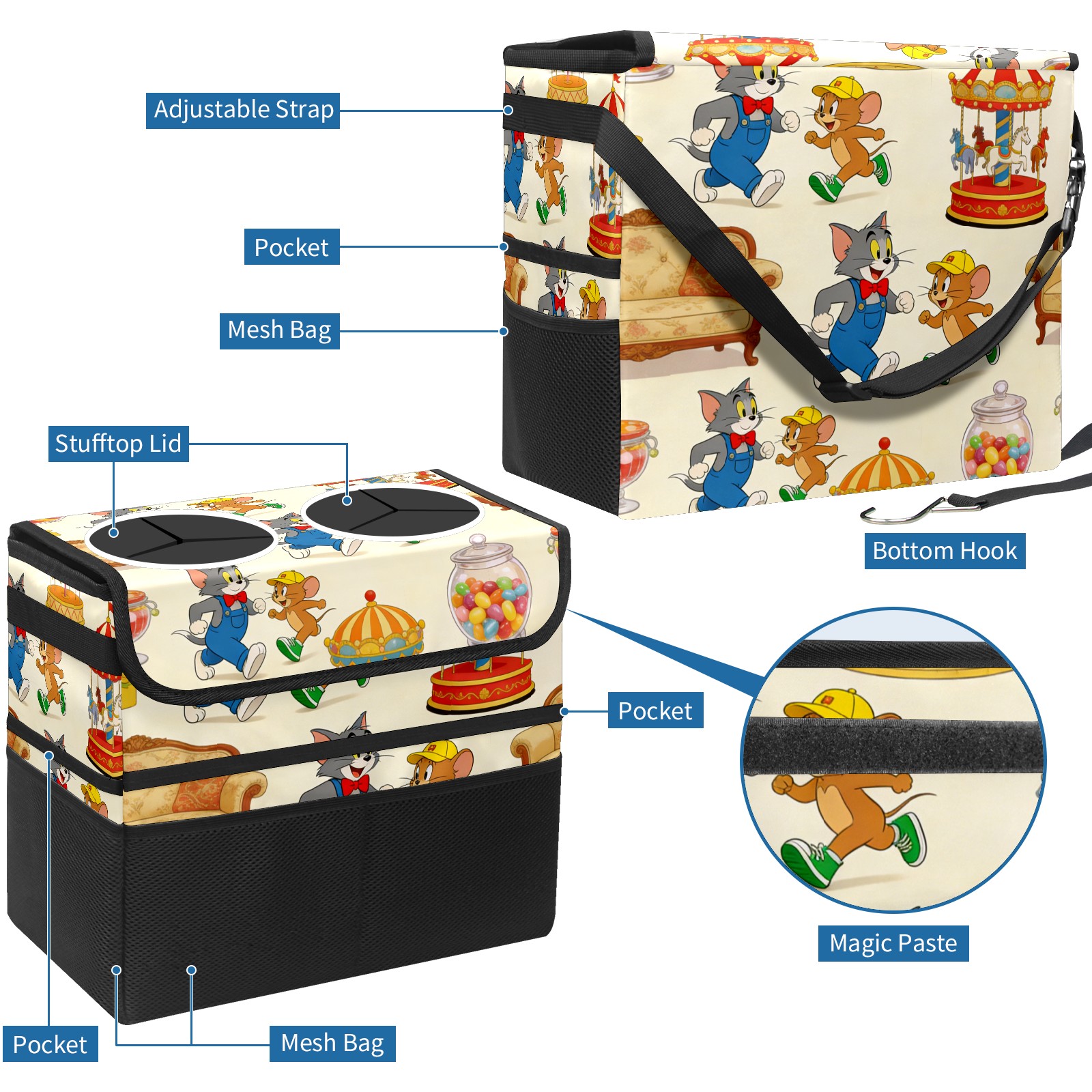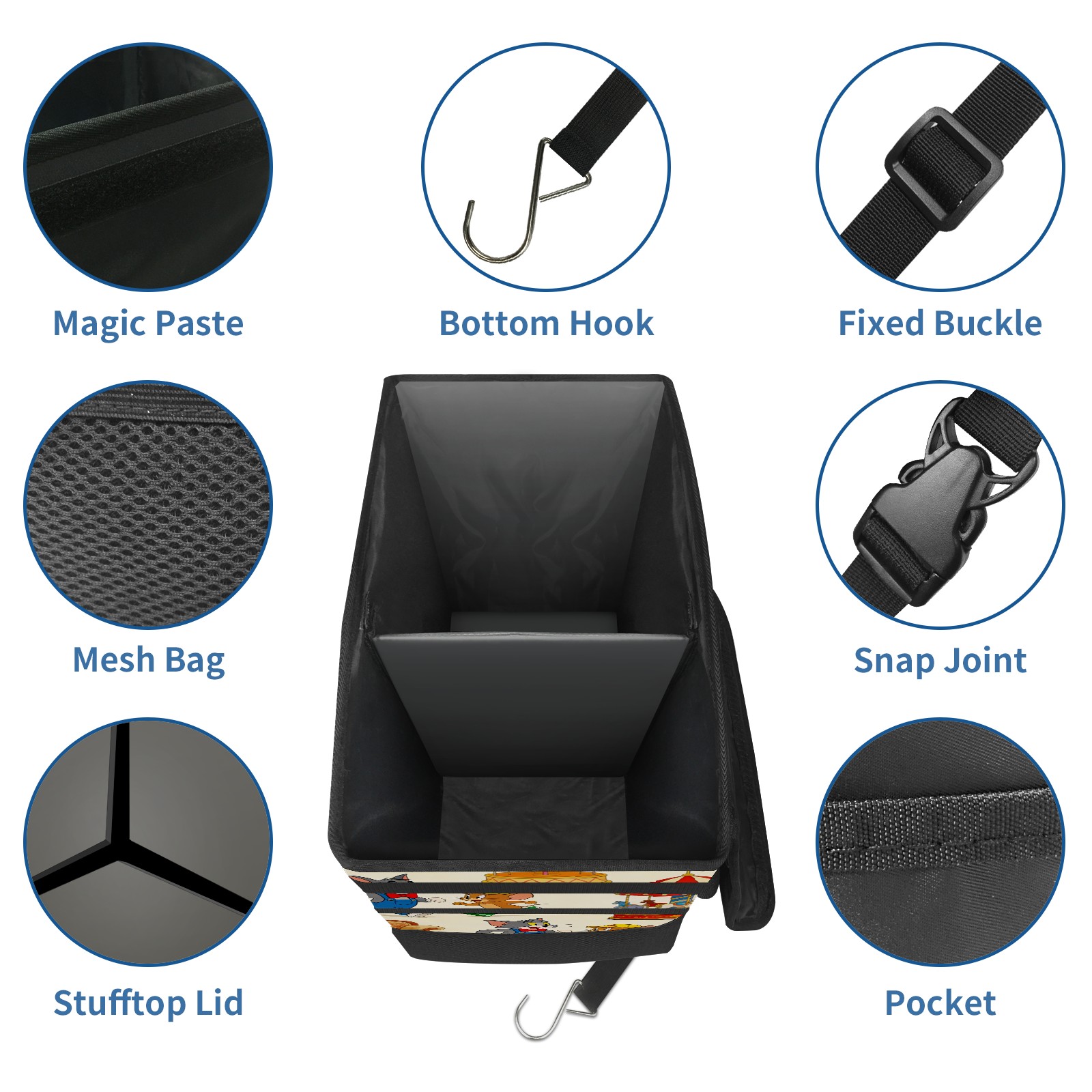 Car Trash Can with Lid, Portable Hanging Automotive Garbage Bin for Vehicles, Leakproof Waste Bag Container for SUV Truck Van Interior Auto Travel Road Trips(创作经典IP图 (64))