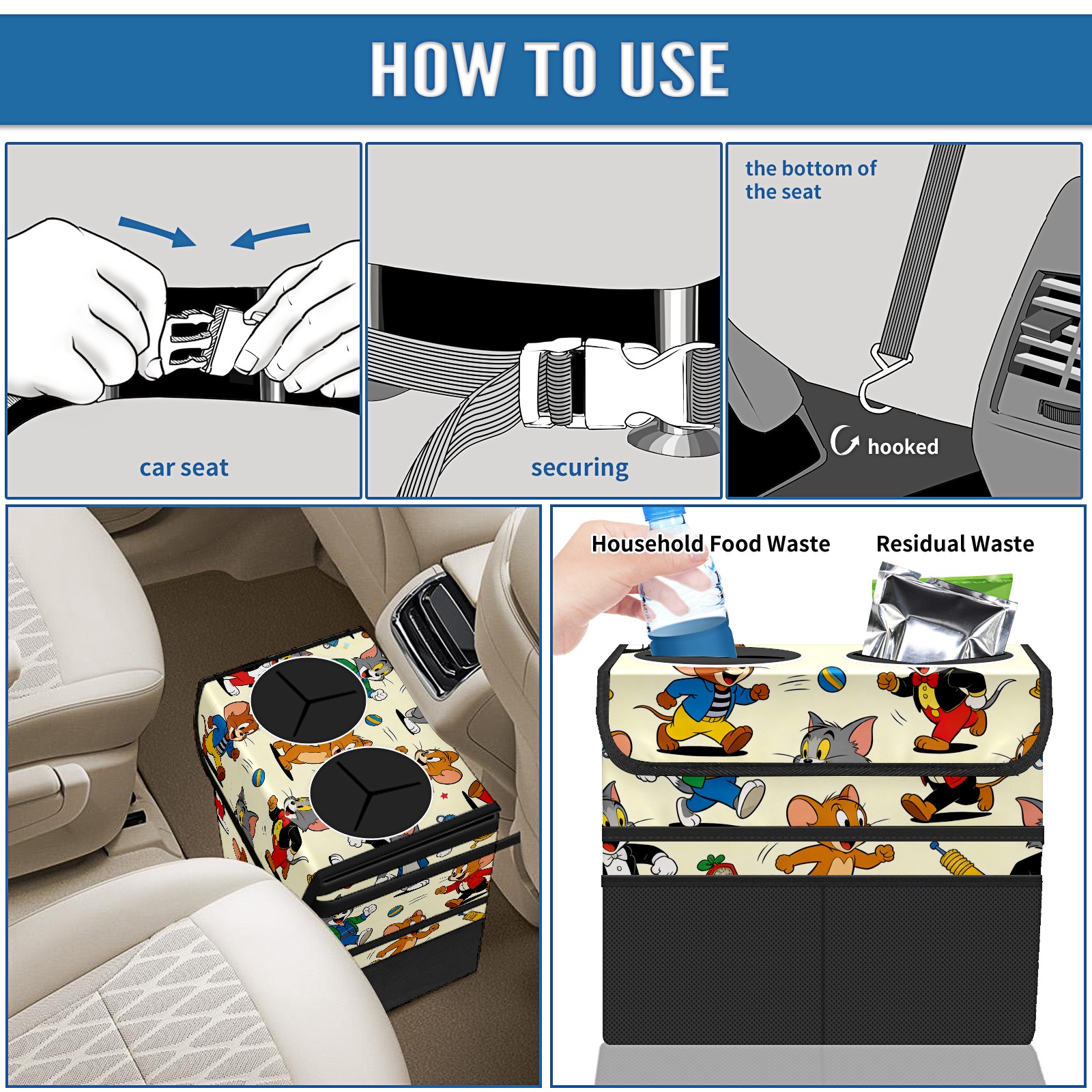 Car Trash Can with Lid, Portable Hanging Automotive Garbage Bin for Vehicles, Leakproof Waste Bag Container for SUV Truck Van Interior Auto Travel Road Trips(创作经典IP图 (63))