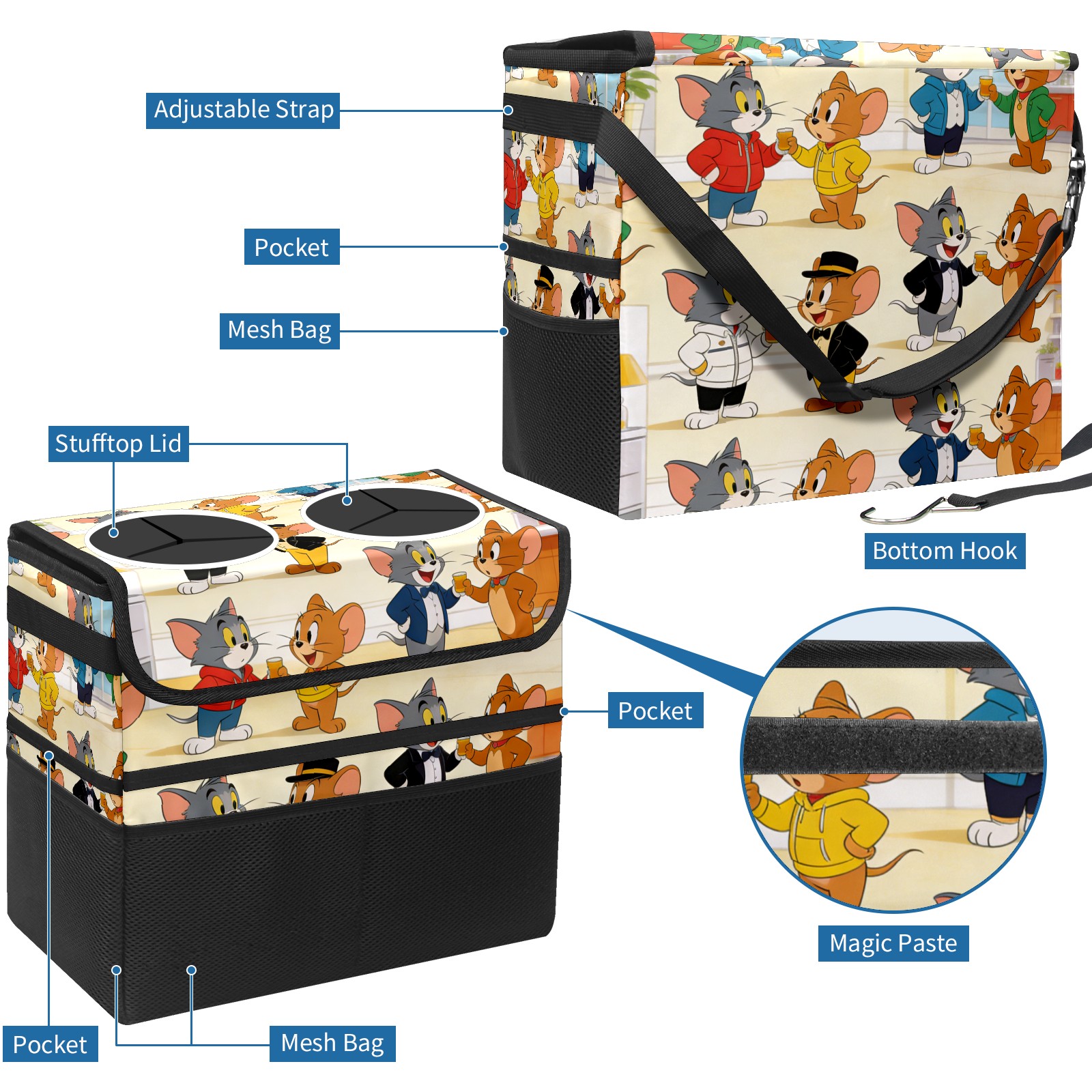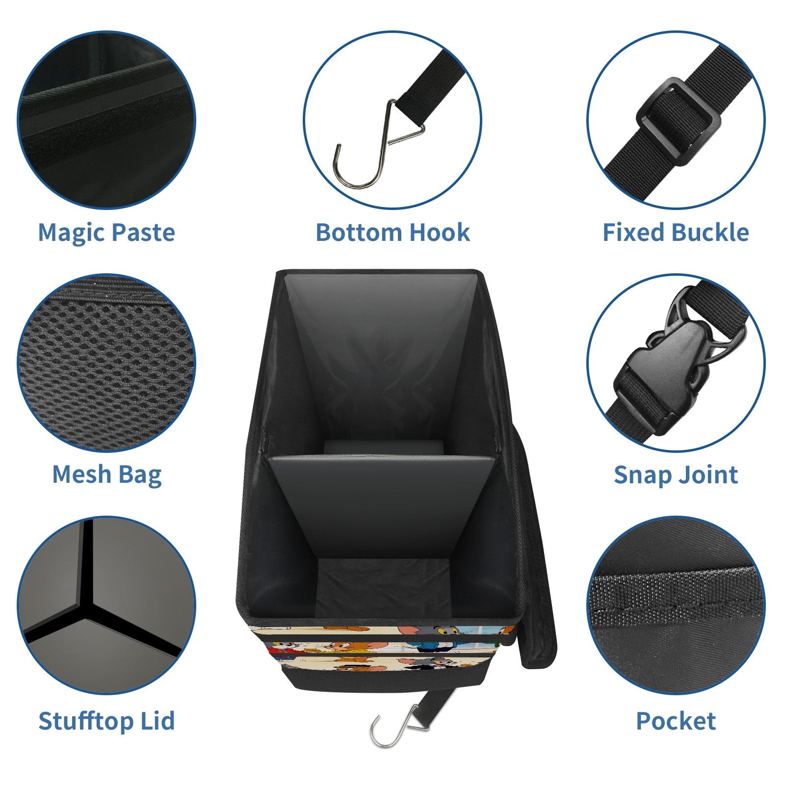 Car Trash Can with Lid, Portable Hanging Automotive Garbage Bin for Vehicles, Leakproof Waste Bag Container for SUV Truck Van Interior Auto Travel Road Trips(创作经典IP图 (68))
