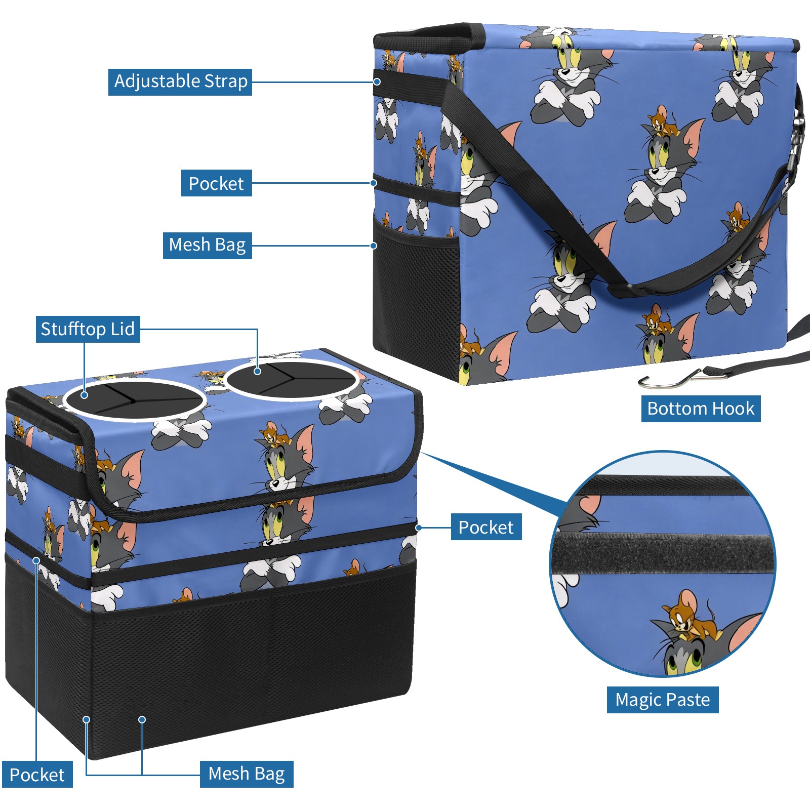 Car Trash Can with Lid, Portable Hanging Automotive Garbage Bin for Vehicles, Leakproof Waste Bag Container for SUV Truck Van Interior Auto Travel Road Trips(创作经典IP图 (49))