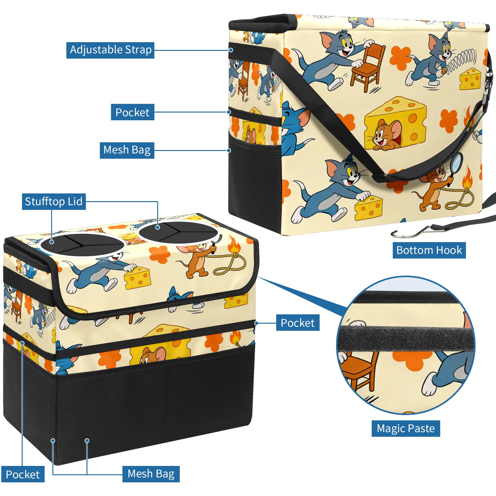 Car Trash Can with Lid, Portable Hanging Automotive Garbage Bin for Vehicles, Leakproof Waste Bag Container for SUV Truck Van Interior Auto Travel Road Trips(创作经典IP图 (51))