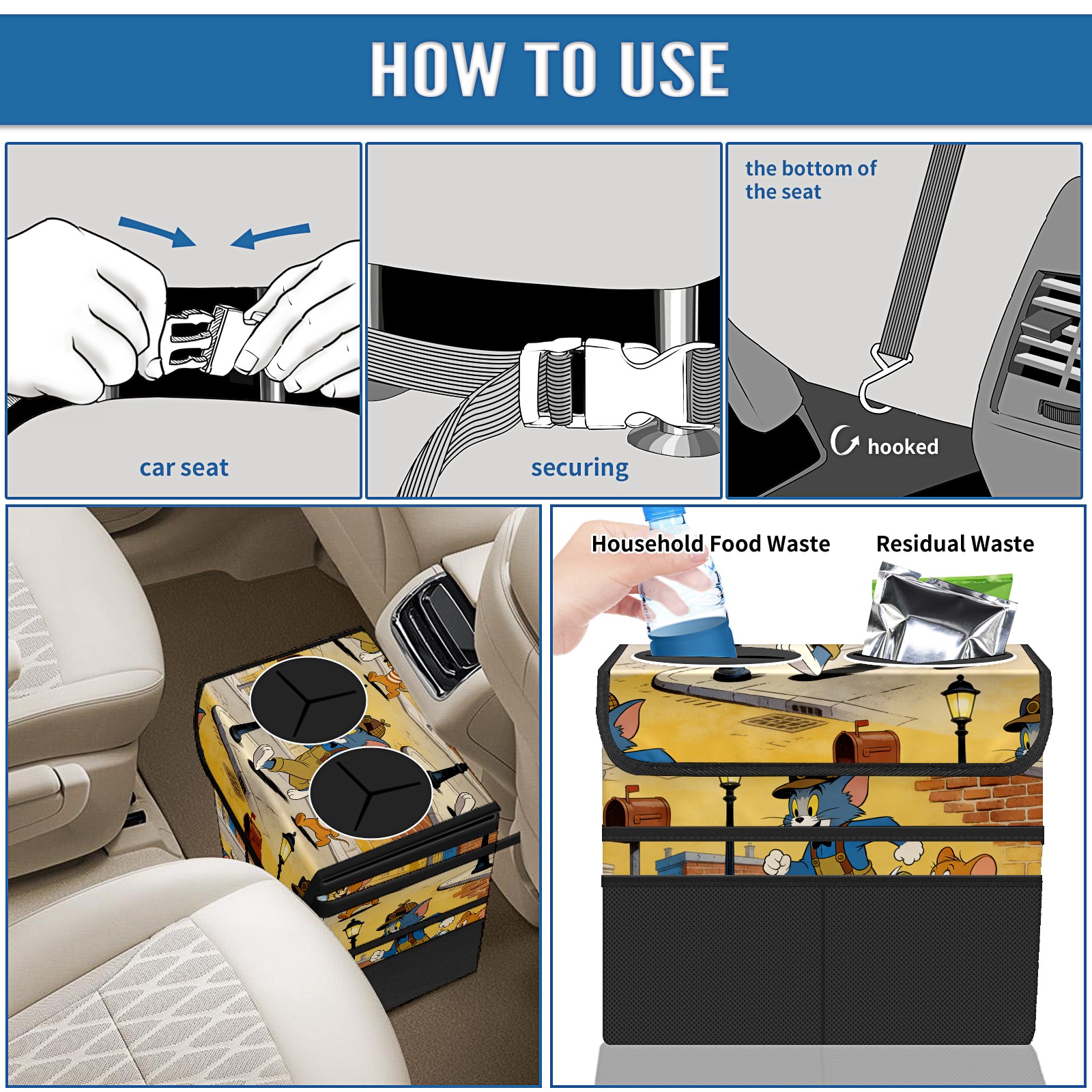 Car Trash Can with Lid, Portable Hanging Automotive Garbage Bin for Vehicles, Leakproof Waste Bag Container for SUV Truck Van Interior Auto Travel Road Trips(创作经典IP图 (52))