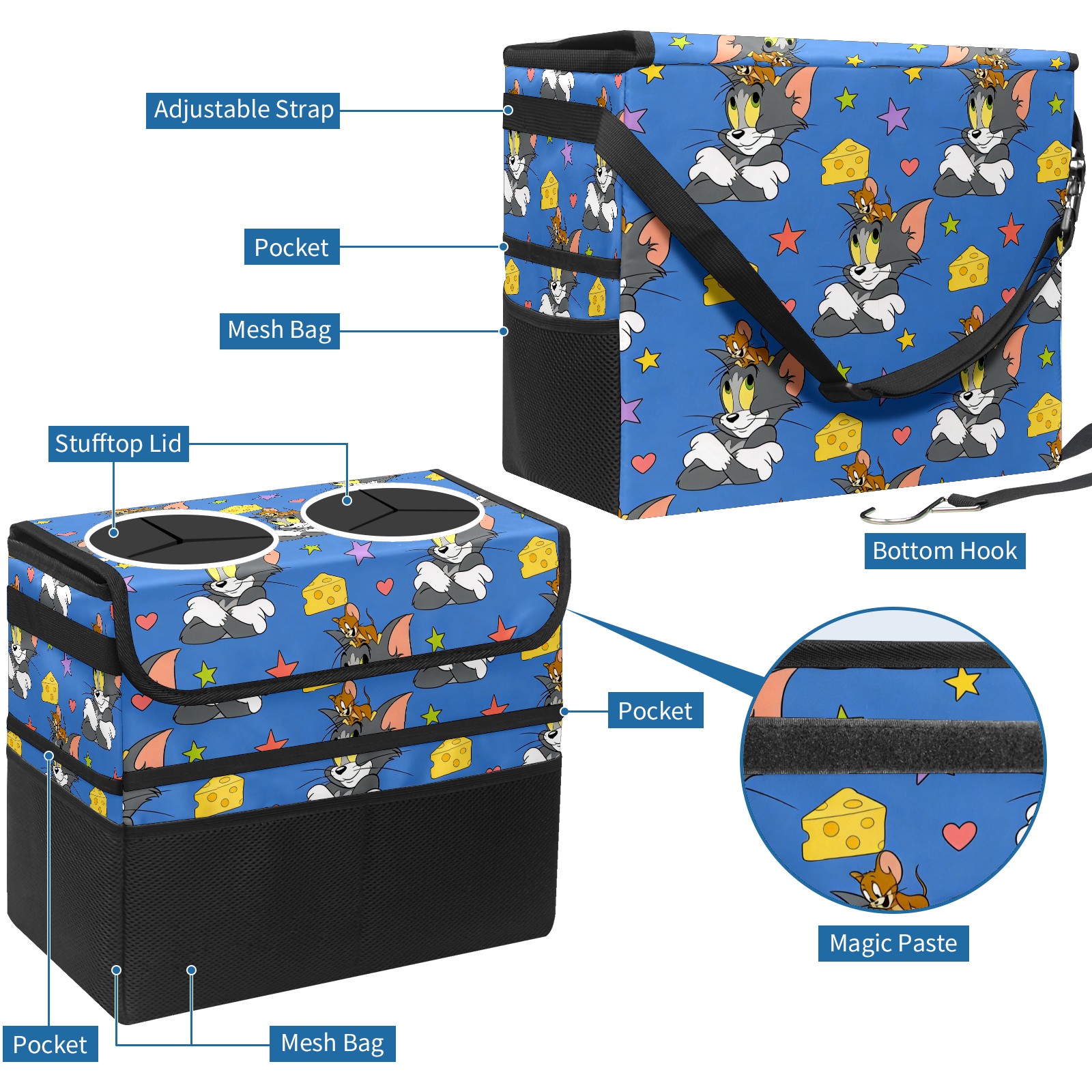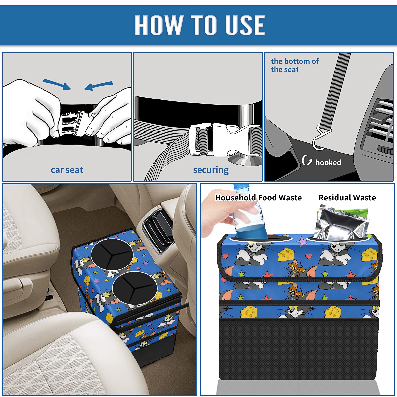 Car Trash Can with Lid, Portable Hanging Automotive Garbage Bin for Vehicles, Leakproof Waste Bag Container for SUV Truck Van Interior Auto Travel Road Trips(创作经典IP图 (40))