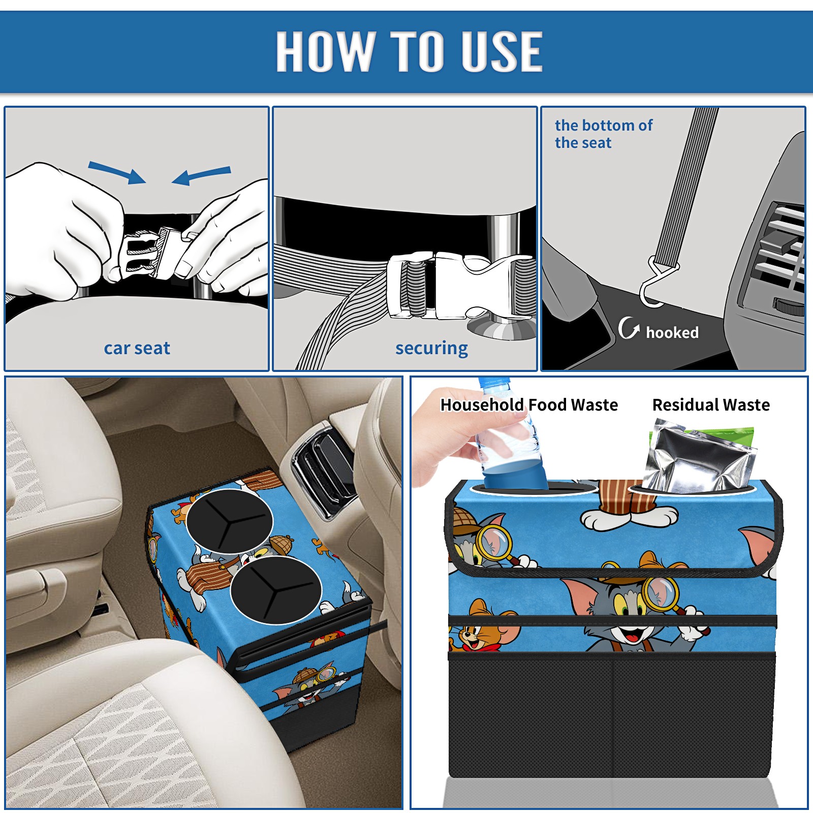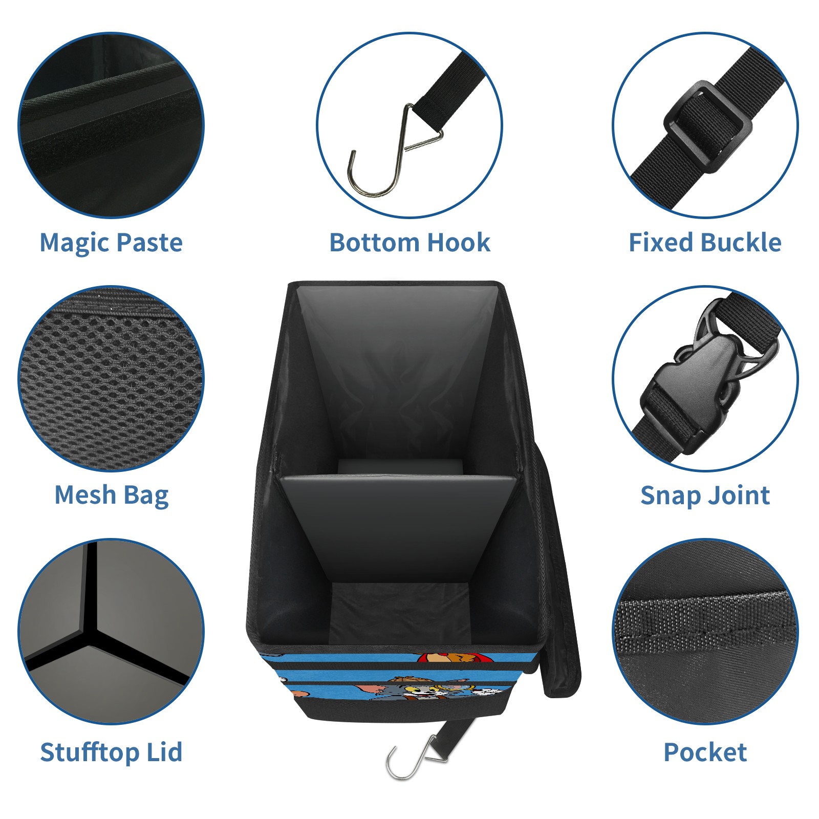 Car Trash Can with Lid, Portable Hanging Automotive Garbage Bin for Vehicles, Leakproof Waste Bag Container for SUV Truck Van Interior Auto Travel Road Trips(创作经典IP图 (46))