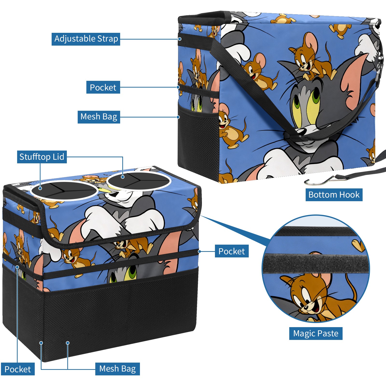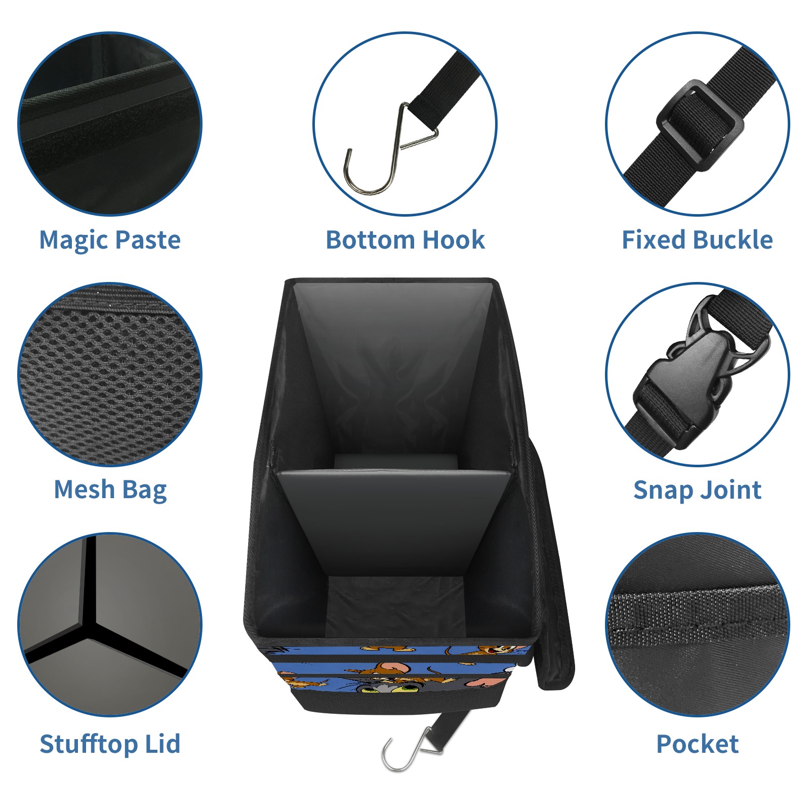 Car Trash Can with Lid, Portable Hanging Automotive Garbage Bin for Vehicles, Leakproof Waste Bag Container for SUV Truck Van Interior Auto Travel Road Trips(创作经典IP图 (56))