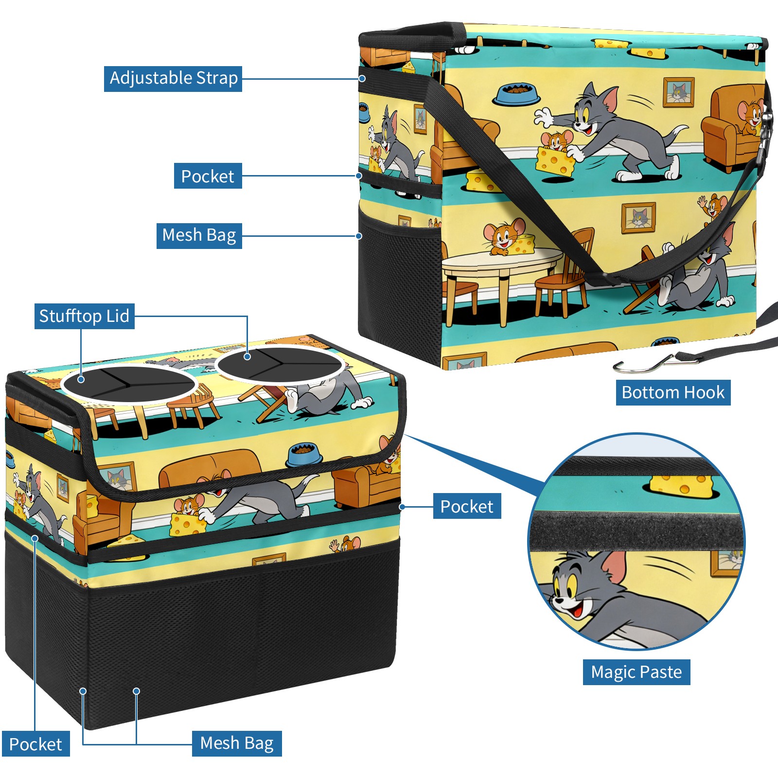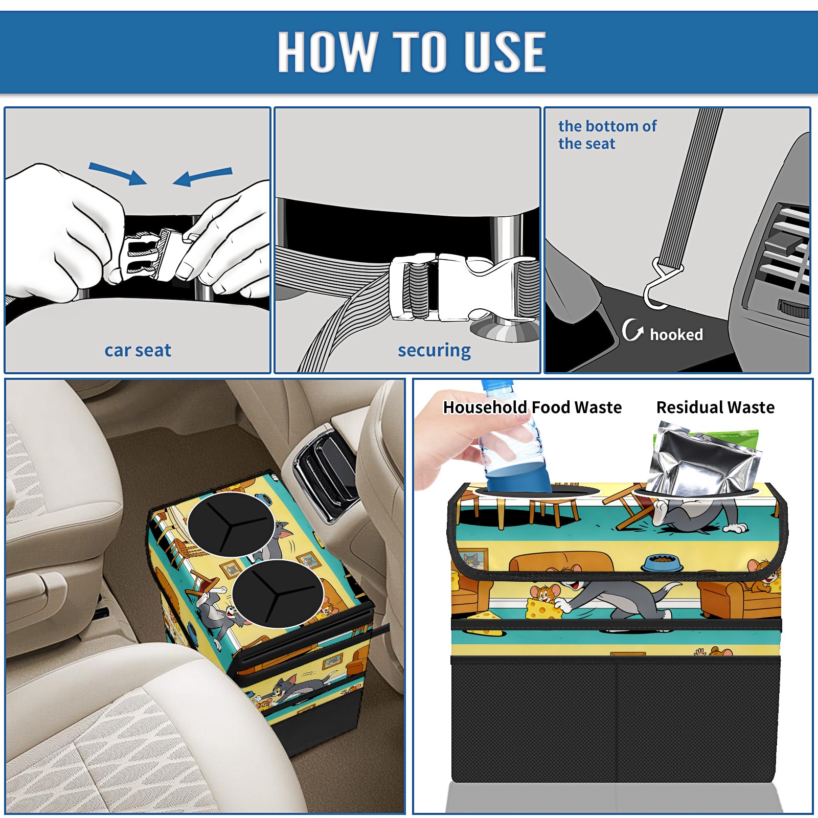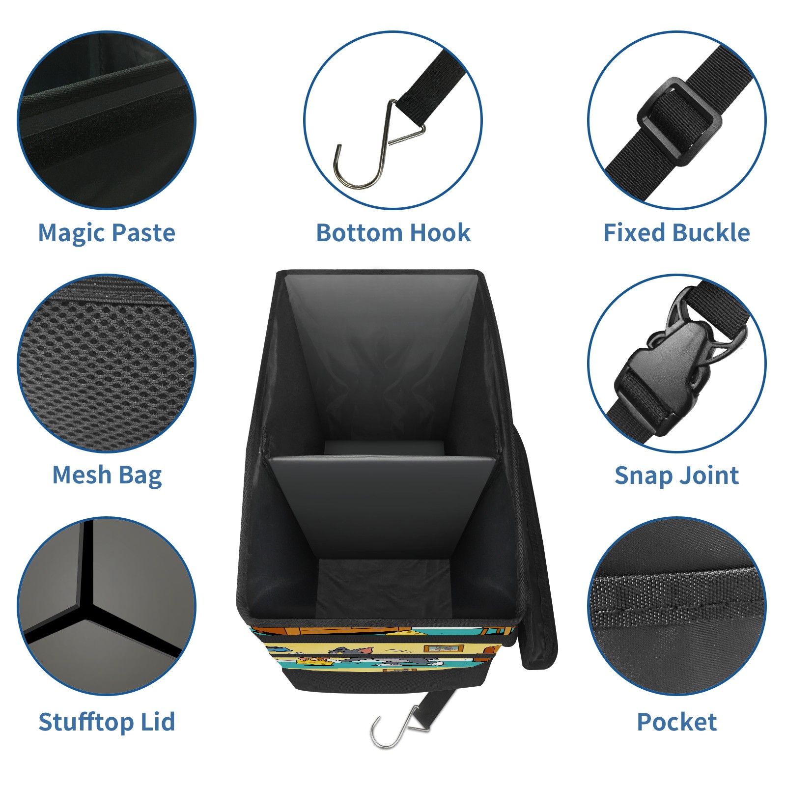 Car Trash Can with Lid, Portable Hanging Automotive Garbage Bin for Vehicles, Leakproof Waste Bag Container for SUV Truck Van Interior Auto Travel Road Trips(创作经典IP图 (25))