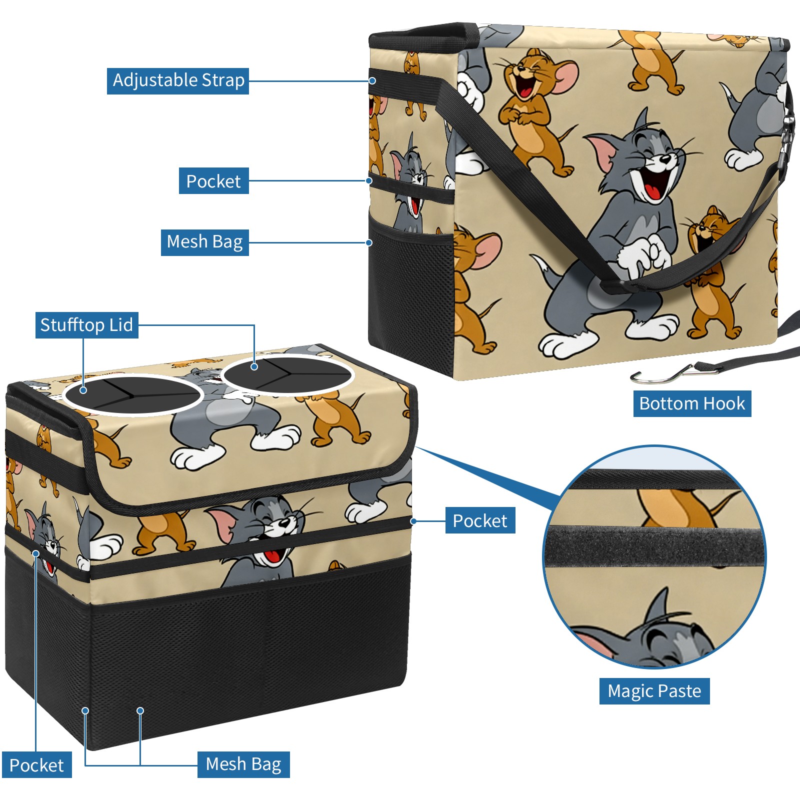 Car Trash Can with Lid, Portable Hanging Automotive Garbage Bin for Vehicles, Leakproof Waste Bag Container for SUV Truck Van Interior Auto Travel Road Trips(创作经典IP图 (18))
