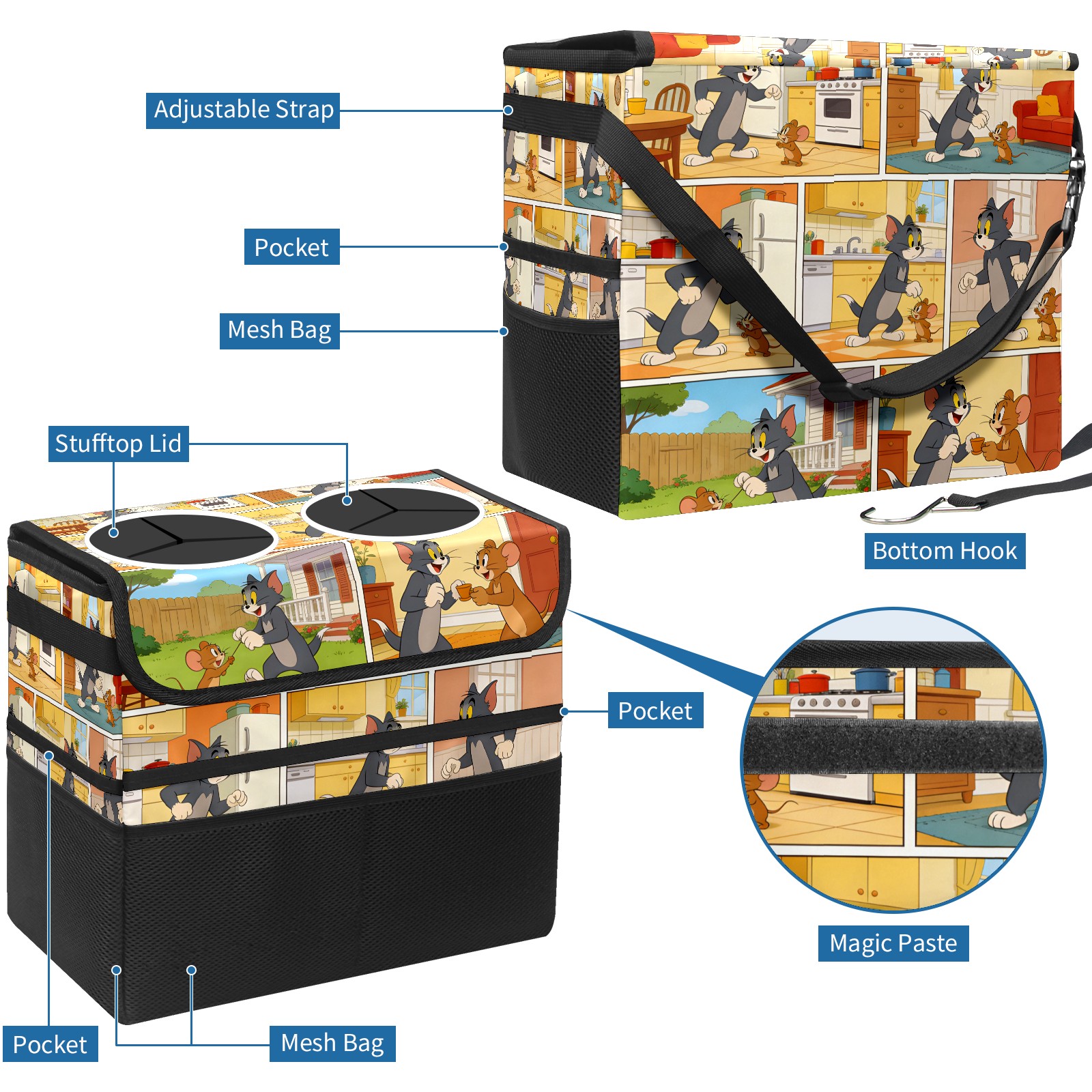 Car Trash Can with Lid, Portable Hanging Automotive Garbage Bin for Vehicles, Leakproof Waste Bag Container for SUV Truck Van Interior Auto Travel Road Trips(创作经典IP图 (28))