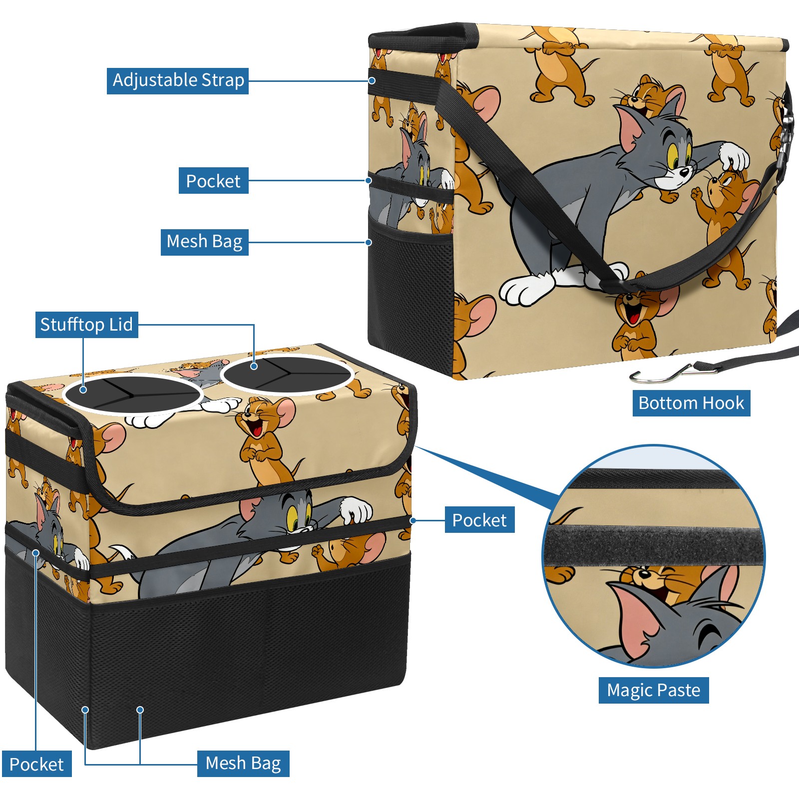 Car Trash Can with Lid, Portable Hanging Automotive Garbage Bin for Vehicles, Leakproof Waste Bag Container for SUV Truck Van Interior Auto Travel Road Trips(创作经典IP图 (6))