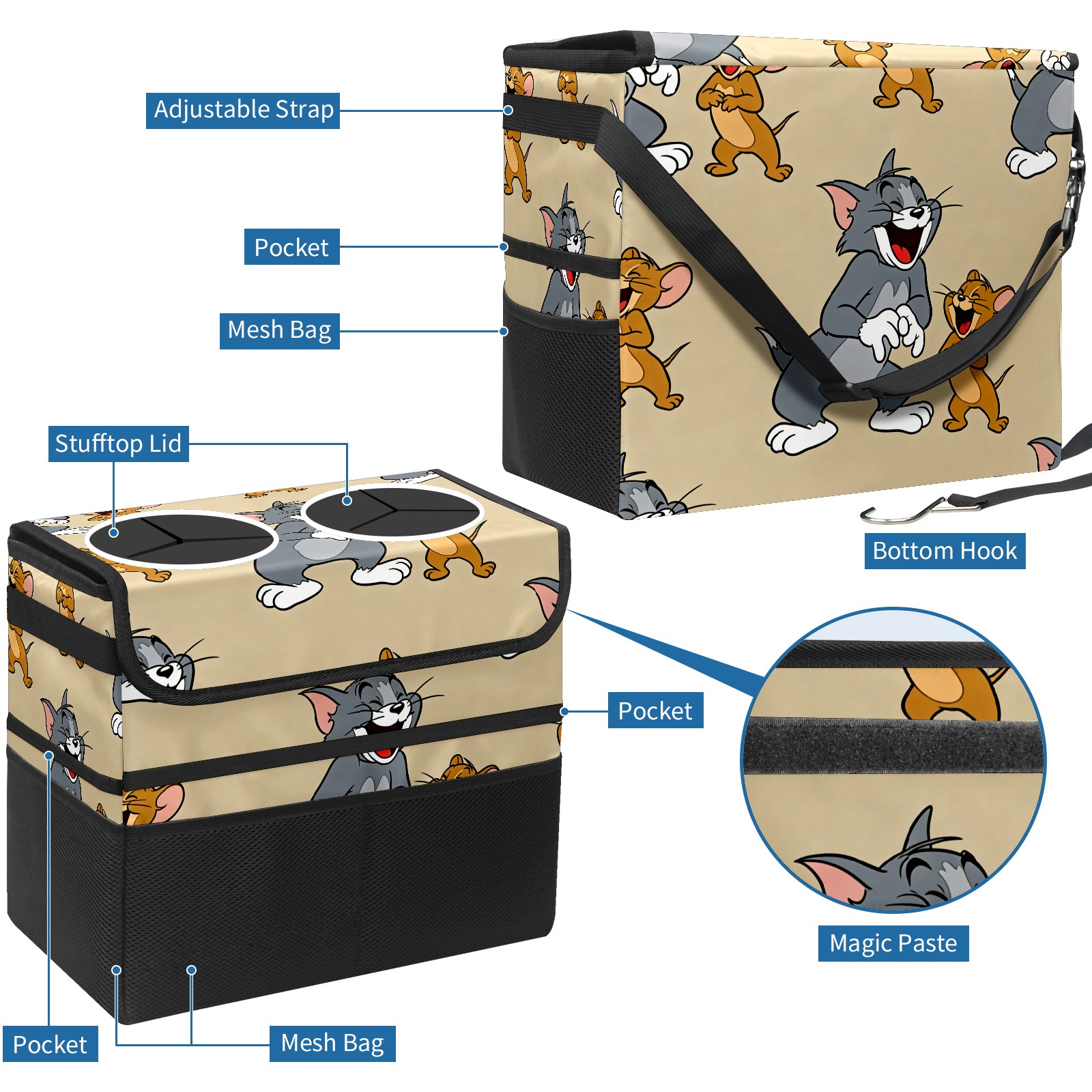 Car Trash Can with Lid, Portable Hanging Automotive Garbage Bin for Vehicles, Leakproof Waste Bag Container for SUV Truck Van Interior Auto Travel Road Trips(创作经典IP图 (7))