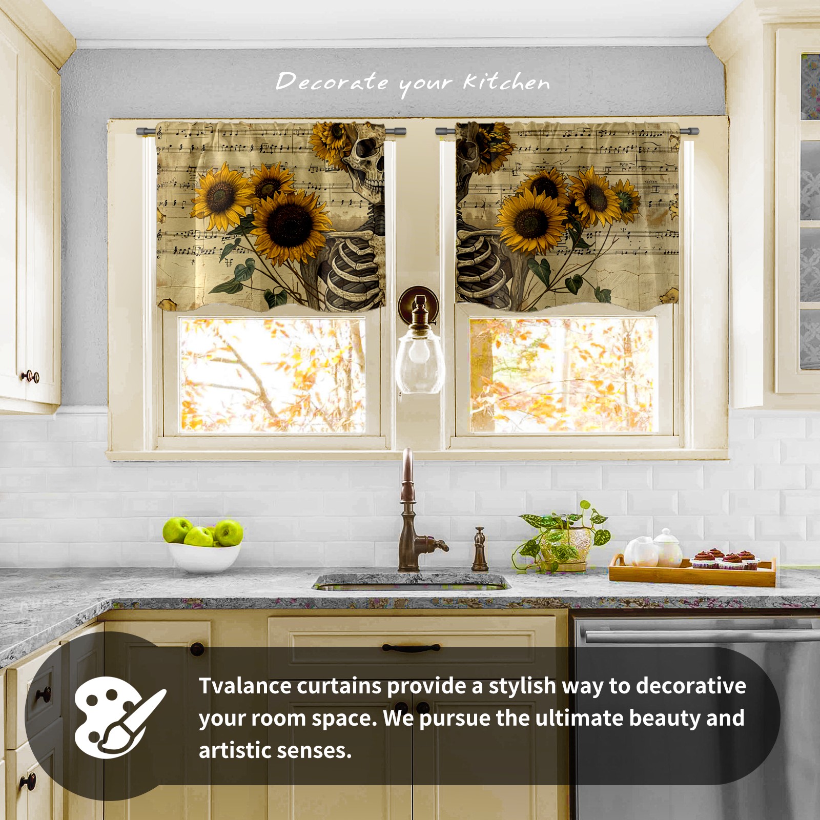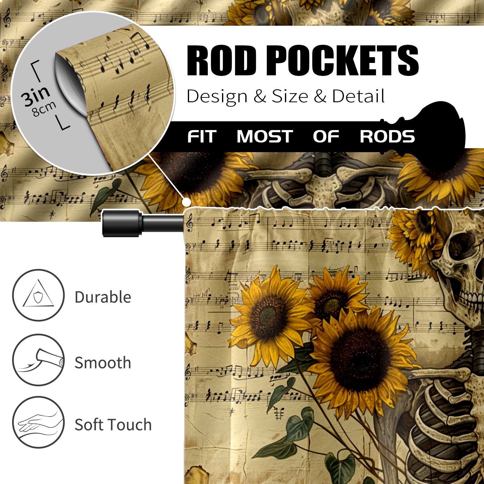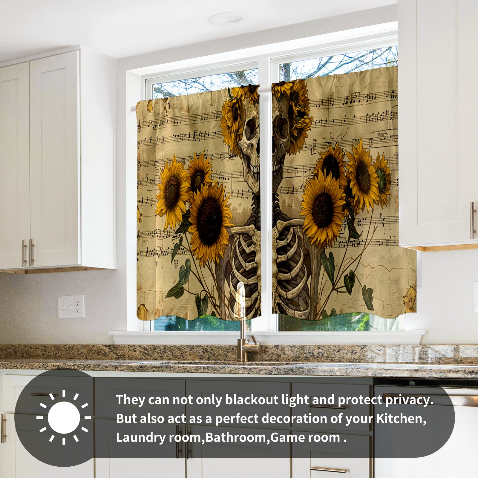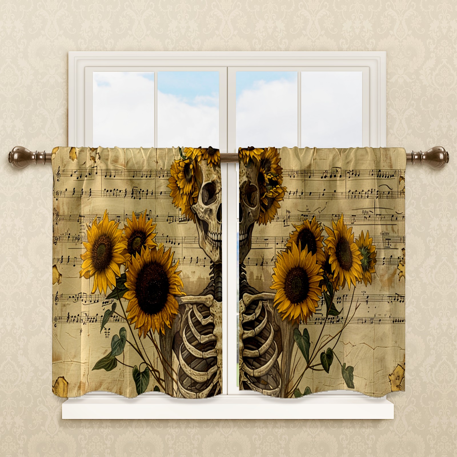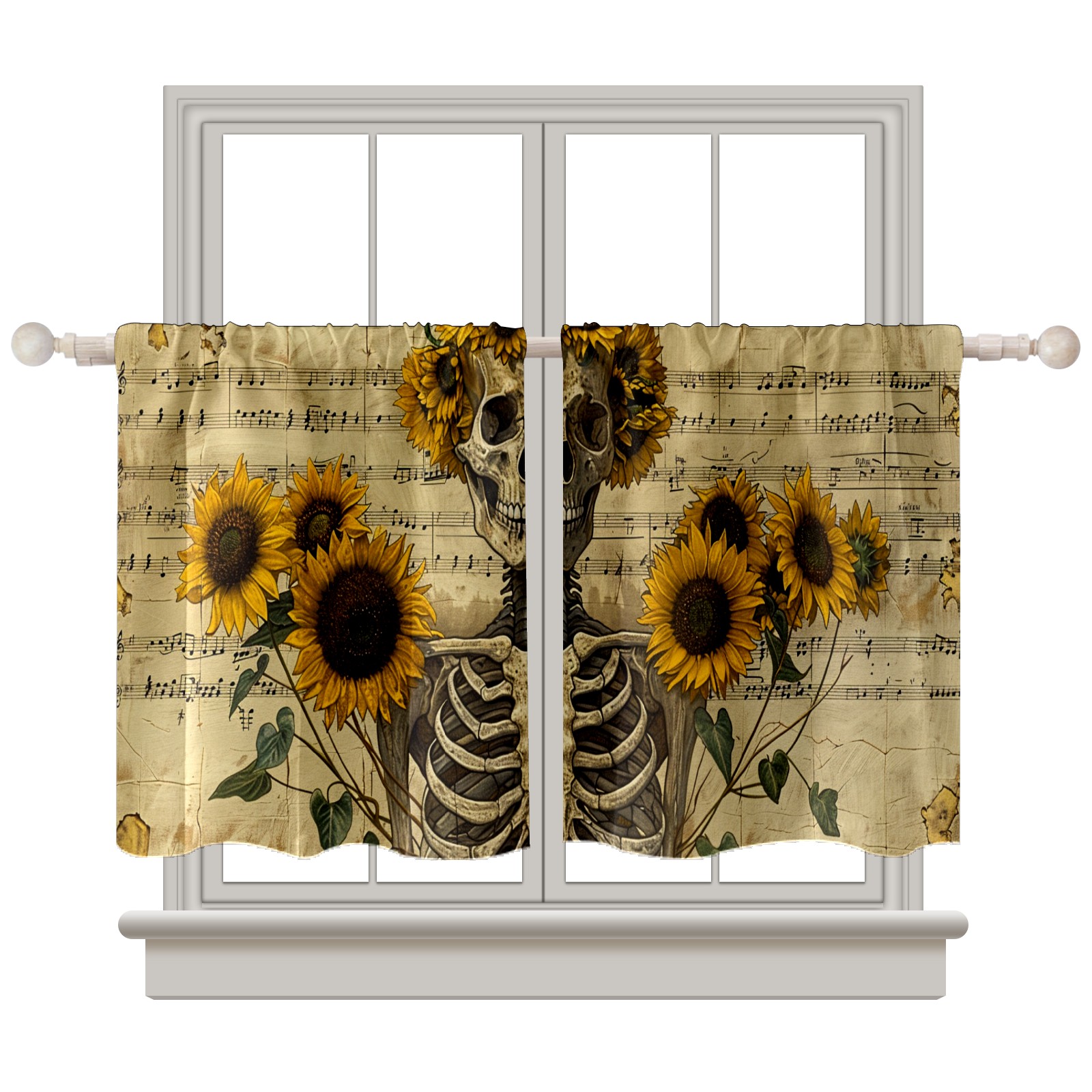 Шторы-панно для дома, декоративные драпировки для гостиной и спальни, легкие и прочные, Skull Sunflower