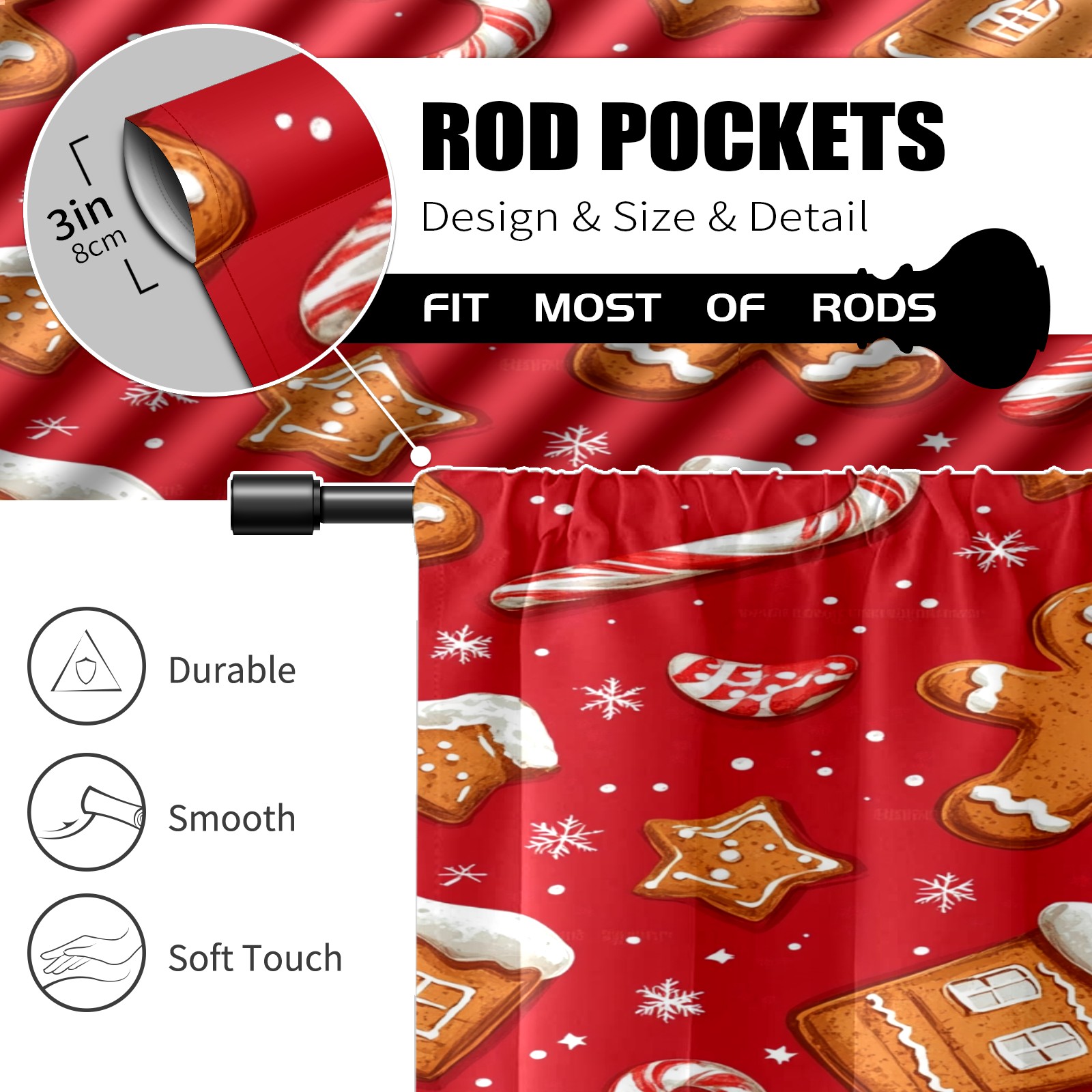Шторы-панно для дома, декоративные драпировки для гостиной и спальни, легкие и прочные, Cookies And Candy Cane