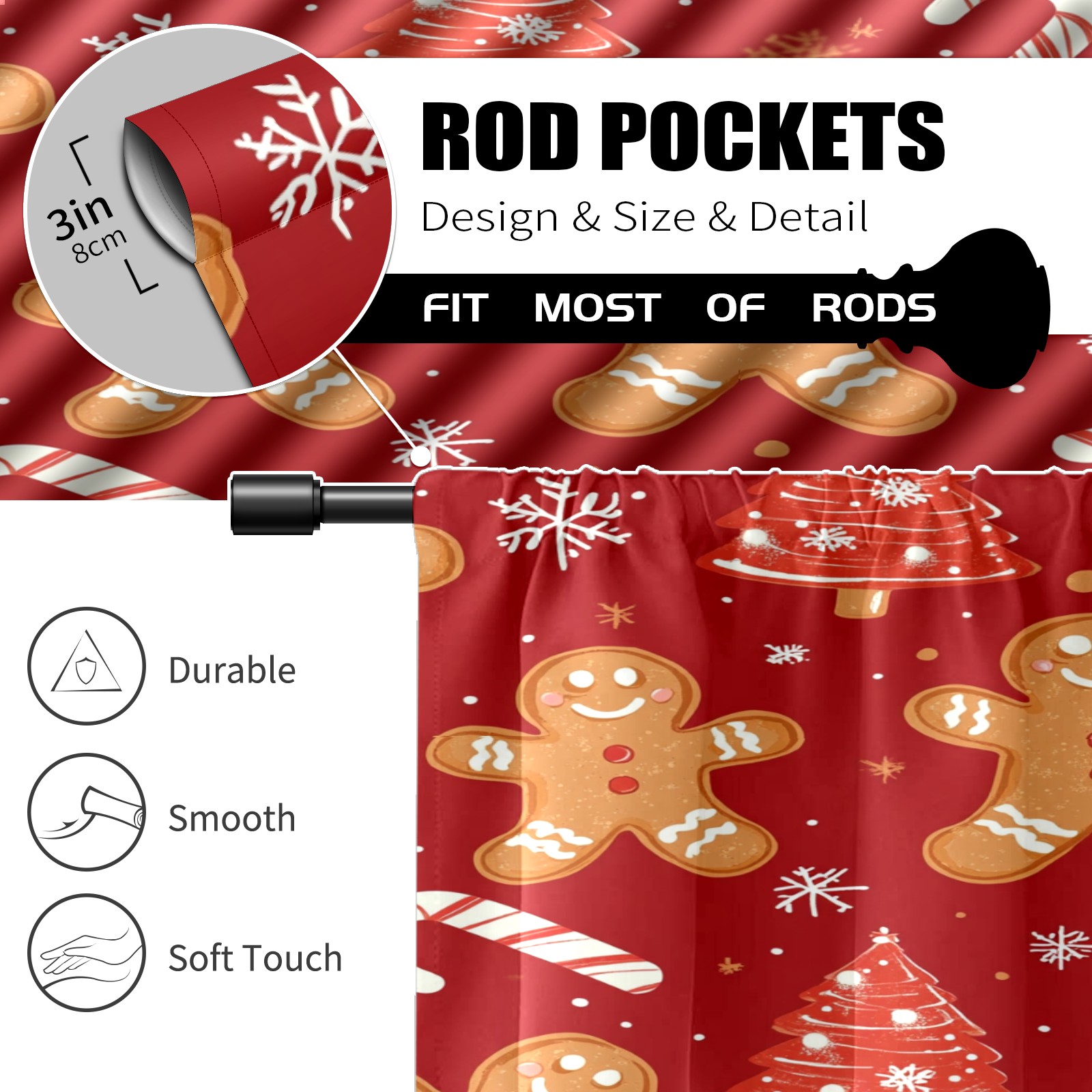 Шторы-панно для дома, декоративные драпировки для гостиной и спальни, легкие и прочные, Christmas Tree And Candy Cane