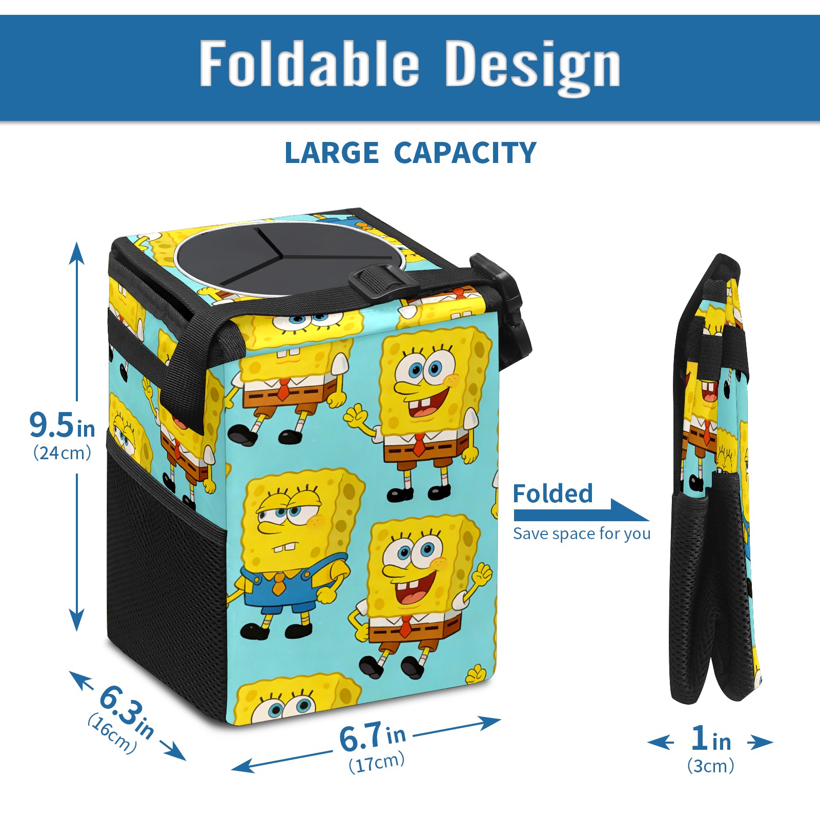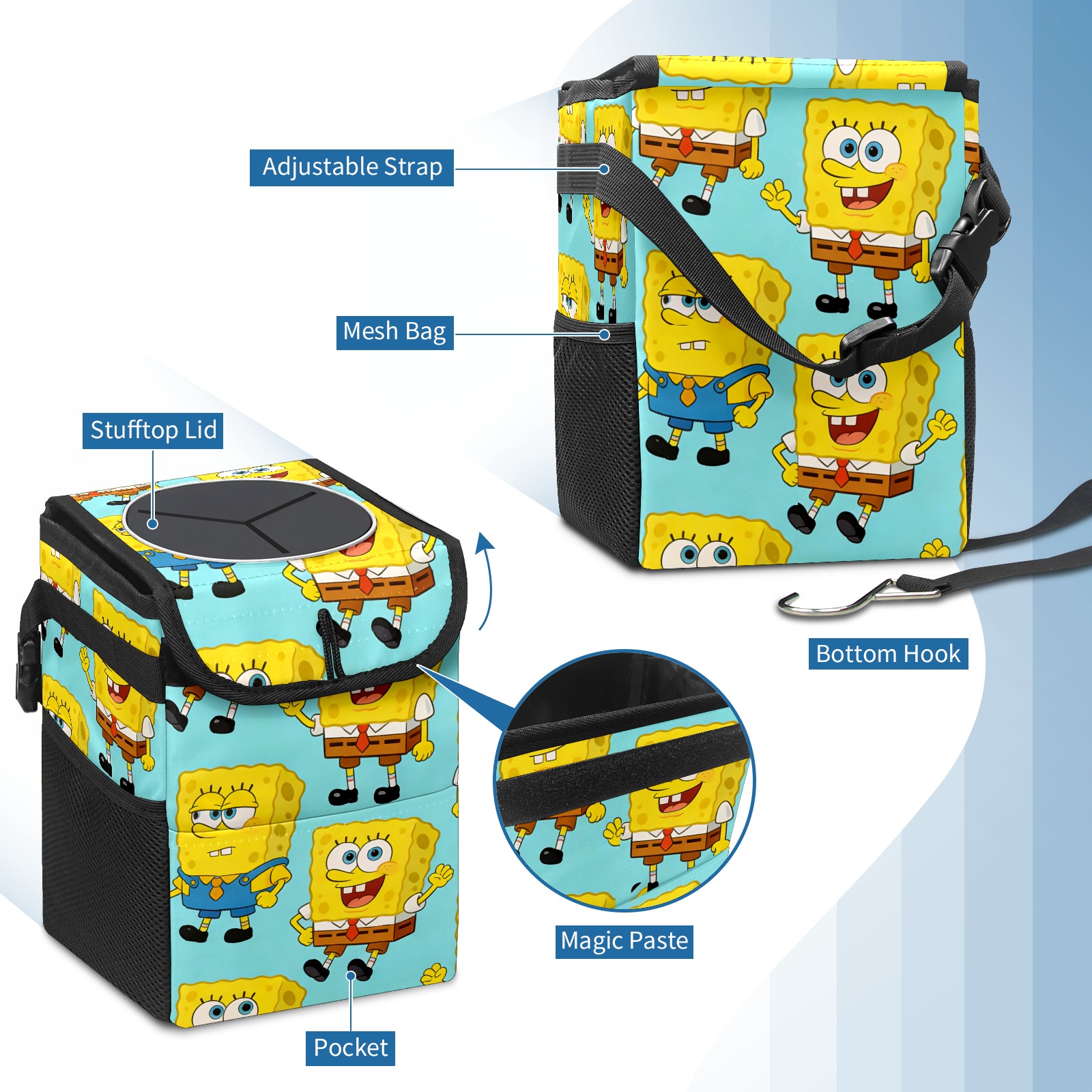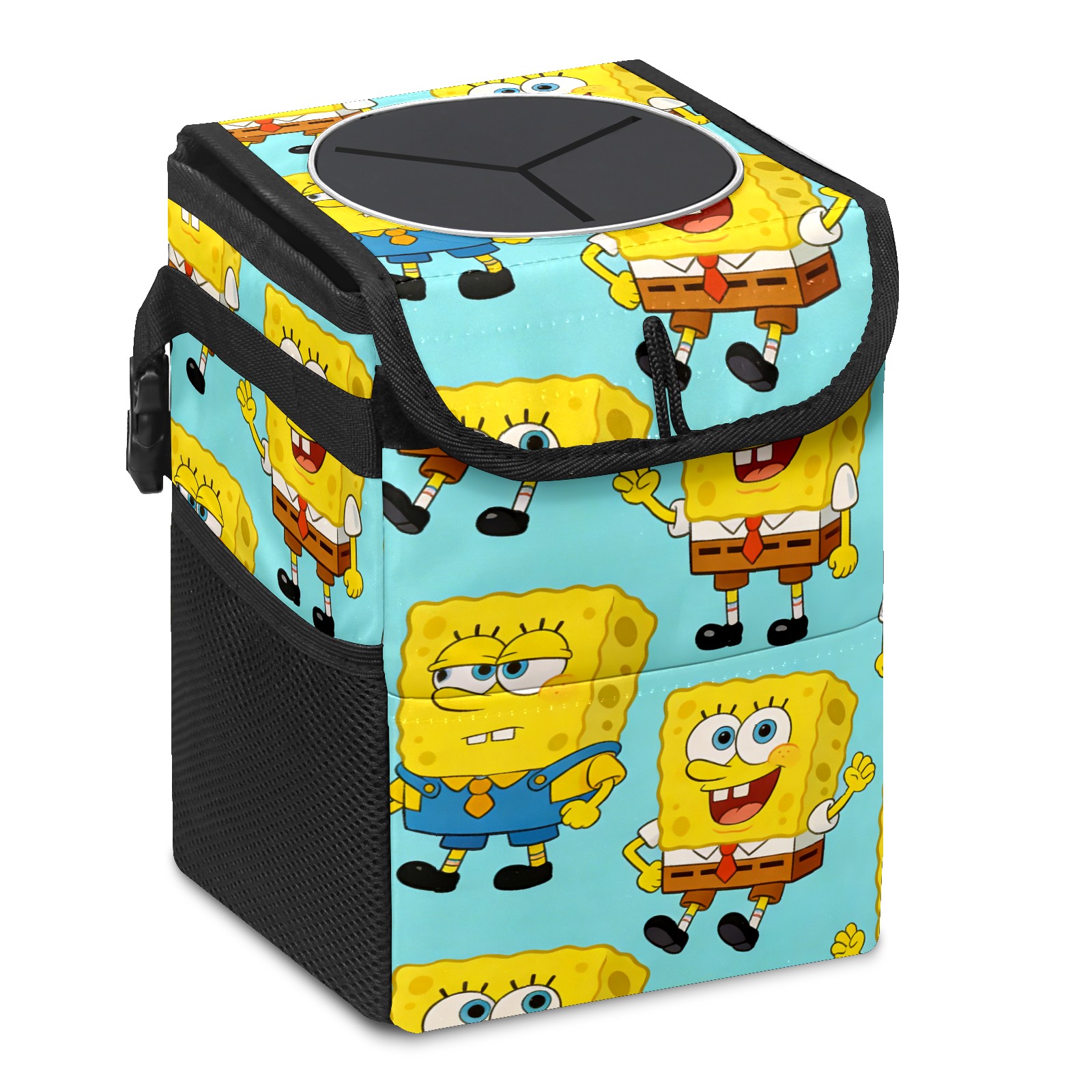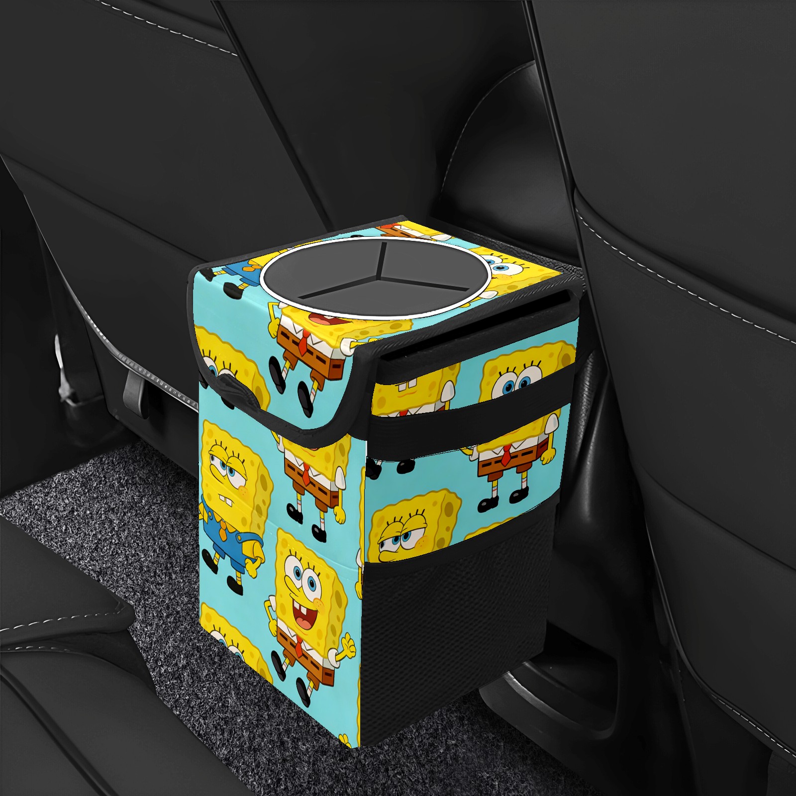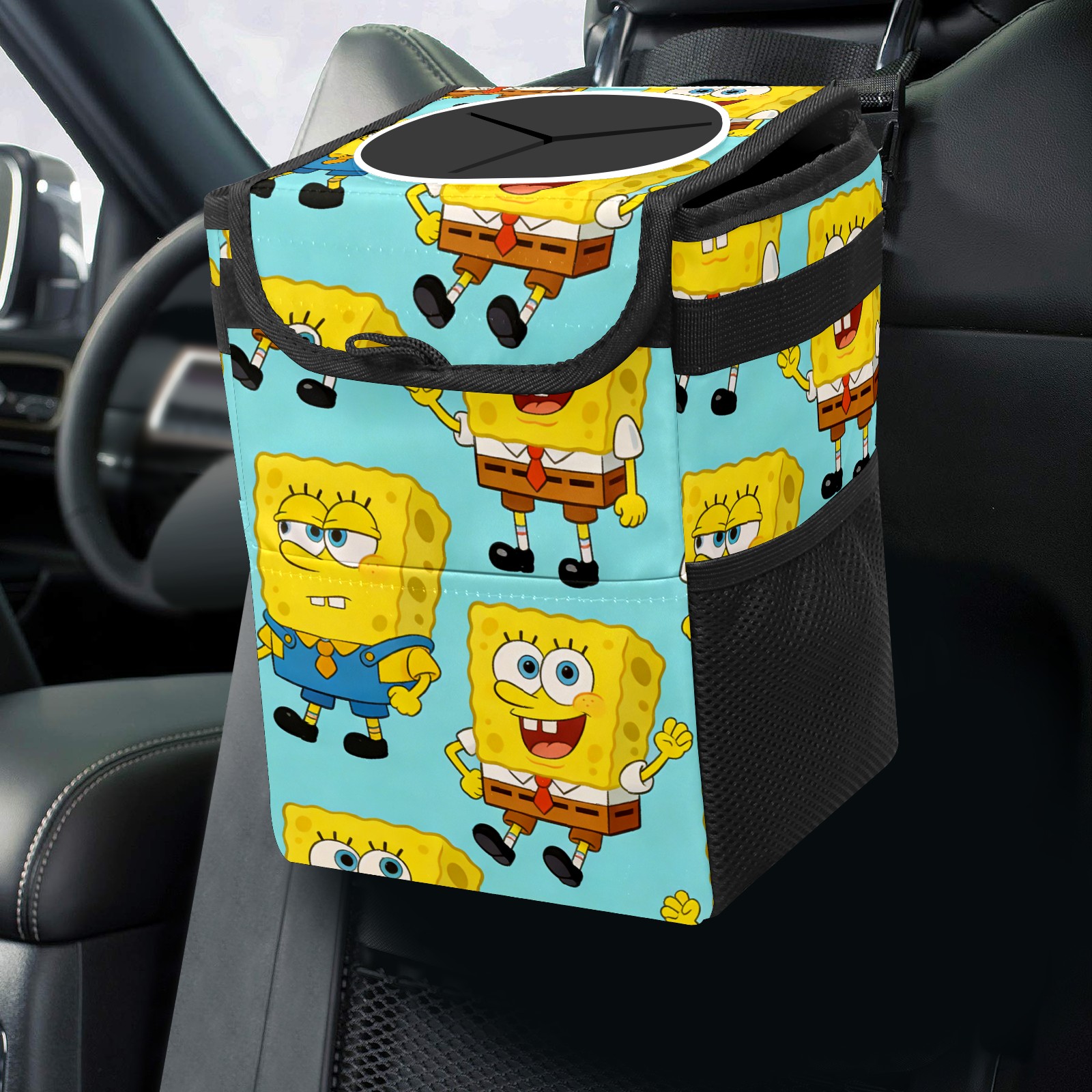Car Trash Can with Lid, Small Portable Hanging Automotive Garbage Bin for Vehicles, Leakproof Waste Bag Container for SUV Truck Van Interior Auto Travel Road Trips(创作经典IP图 (51))