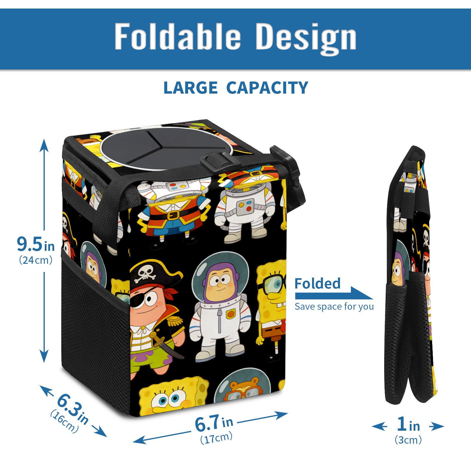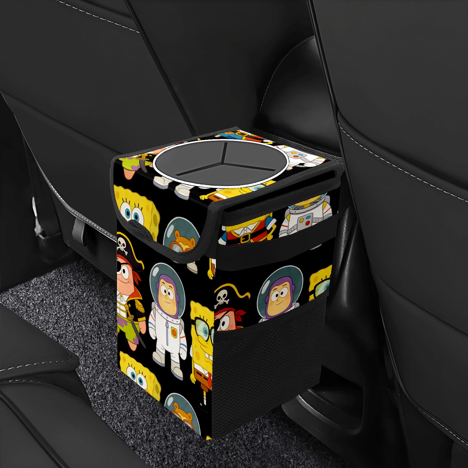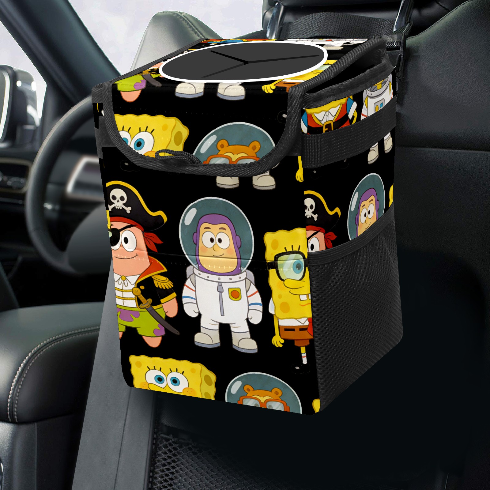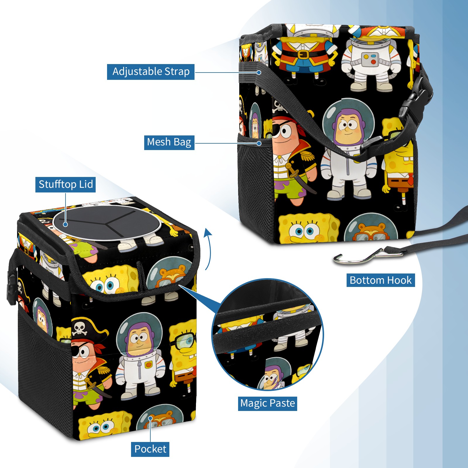 Car Trash Can with Lid, Small Portable Hanging Automotive Garbage Bin for Vehicles, Leakproof Waste Bag Container for SUV Truck Van Interior Auto Travel Road Trips(创作经典IP图 (59))