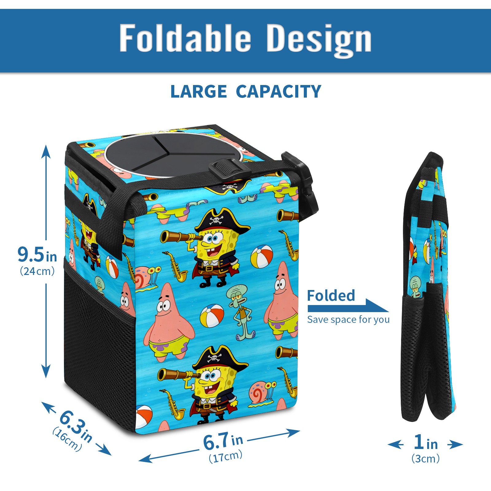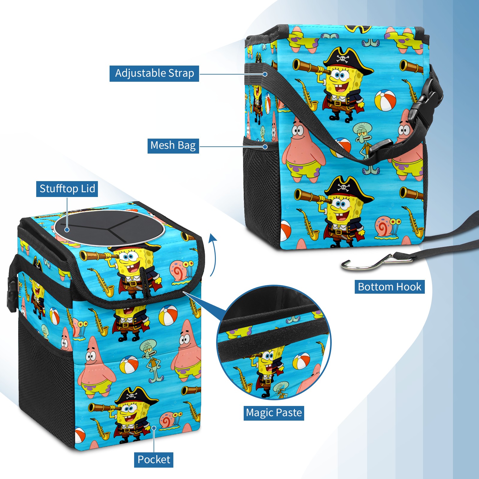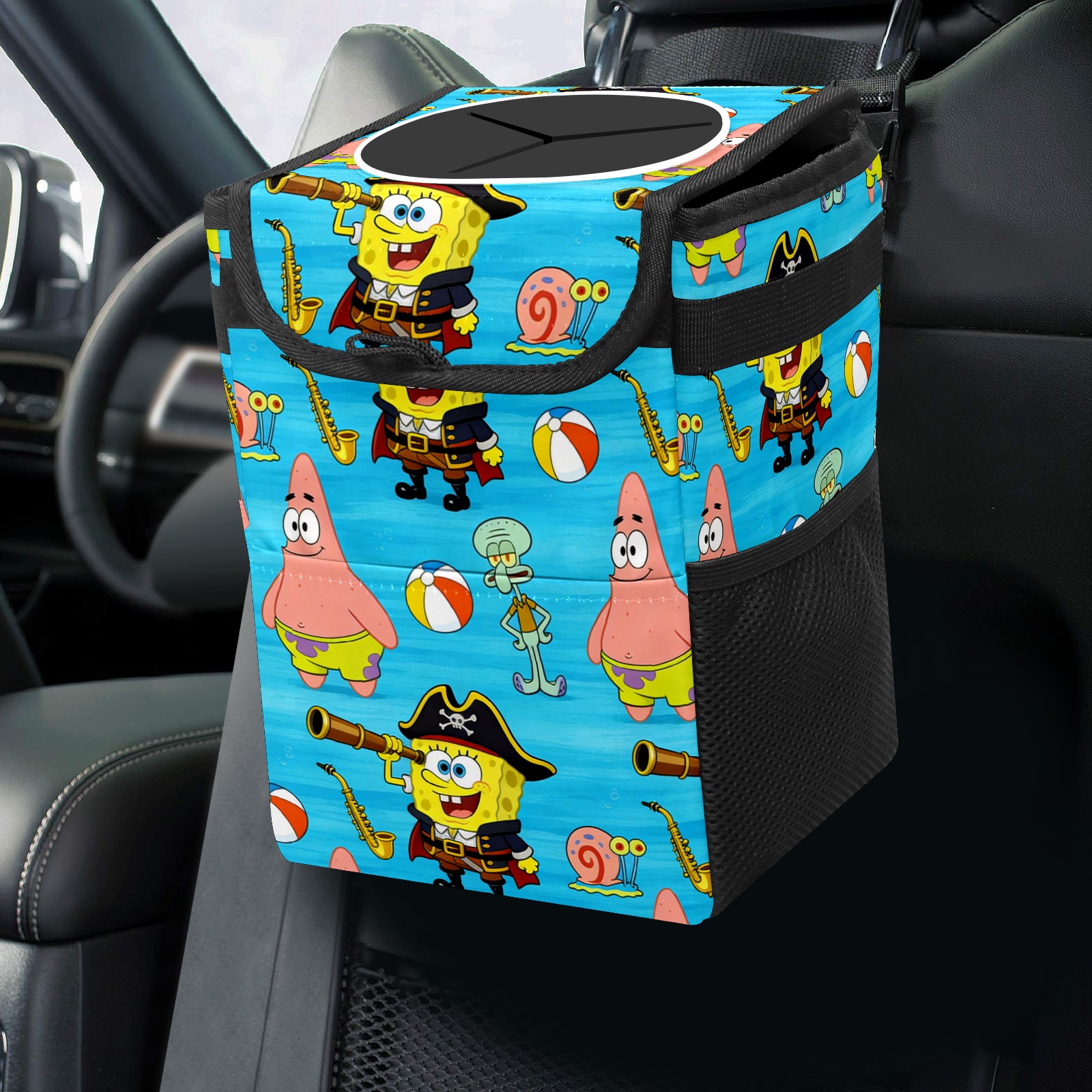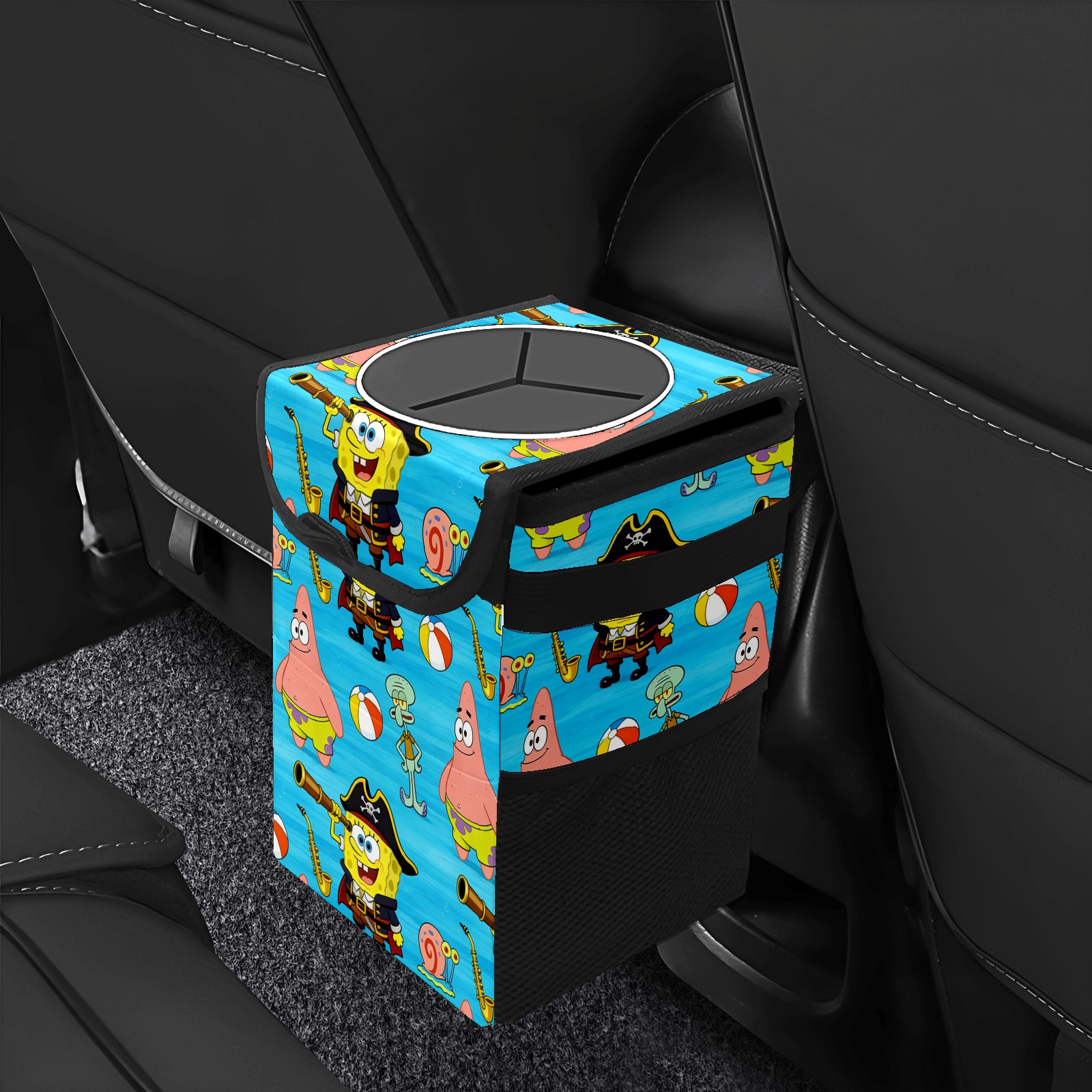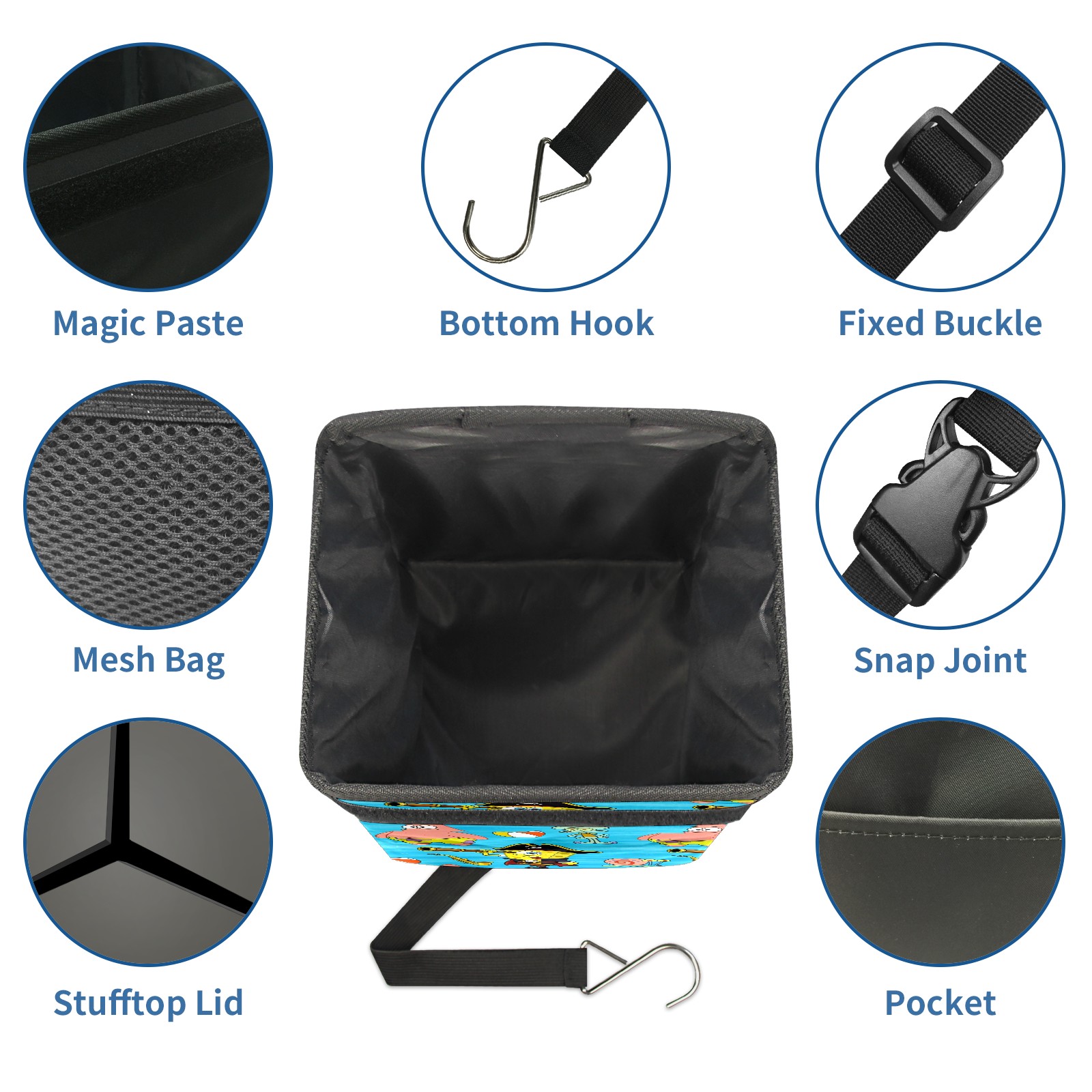 Car Trash Can with Lid, Small Portable Hanging Automotive Garbage Bin for Vehicles, Leakproof Waste Bag Container for SUV Truck Van Interior Auto Travel Road Trips(创作经典IP图 (37))