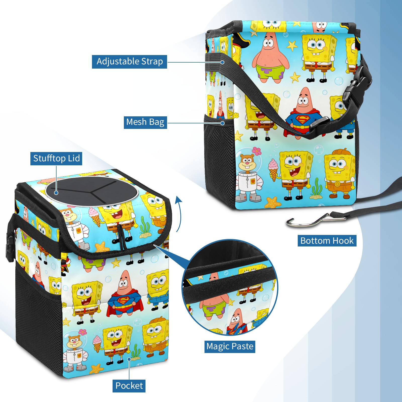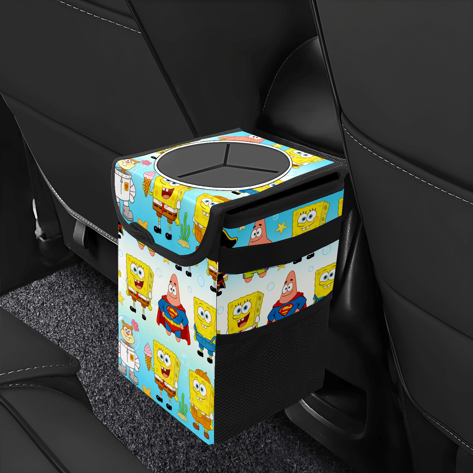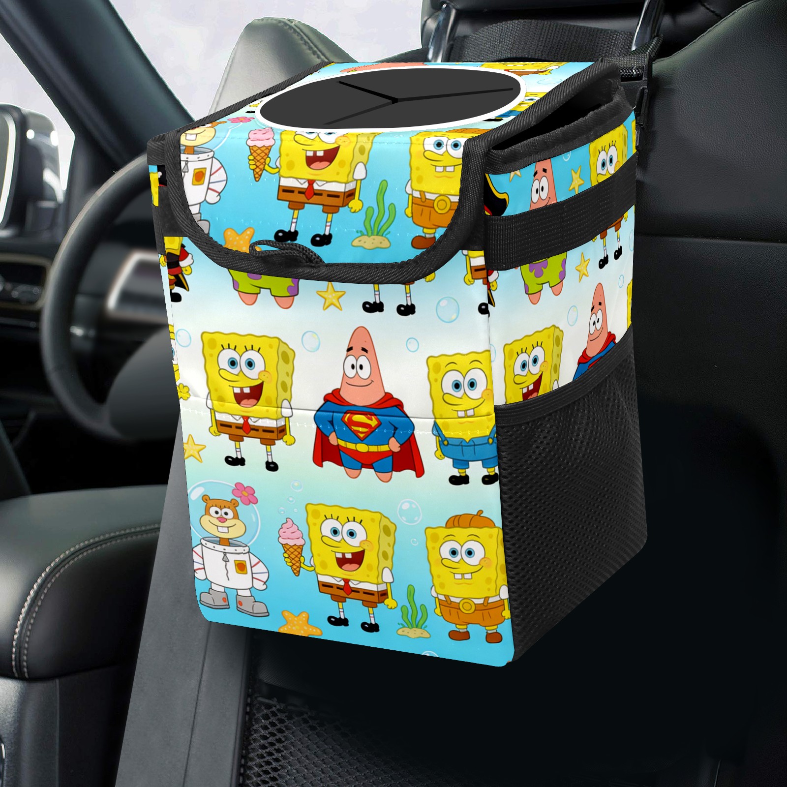 Car Trash Can with Lid, Small Portable Hanging Automotive Garbage Bin for Vehicles, Leakproof Waste Bag Container for SUV Truck Van Interior Auto Travel Road Trips(创作经典IP图 (33))