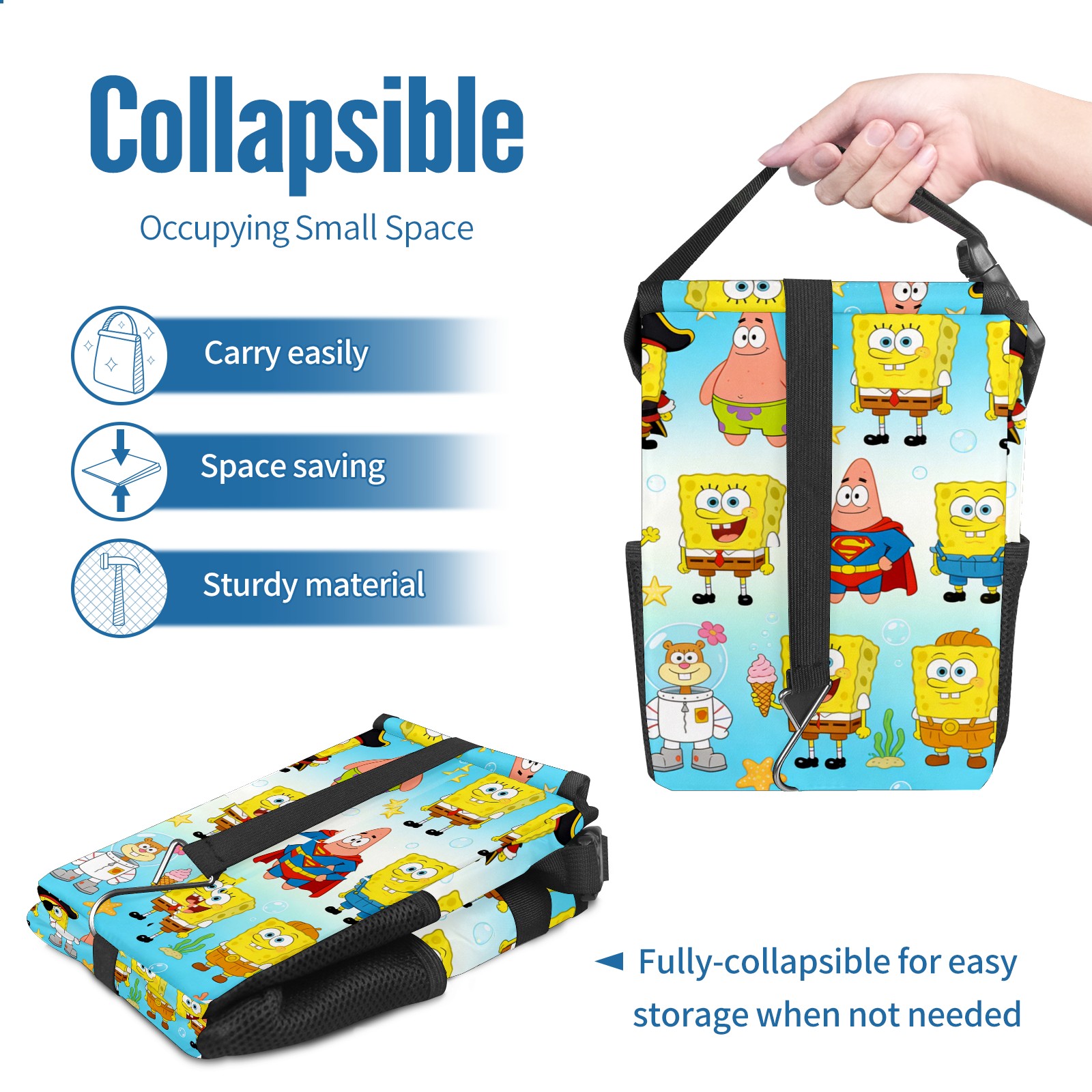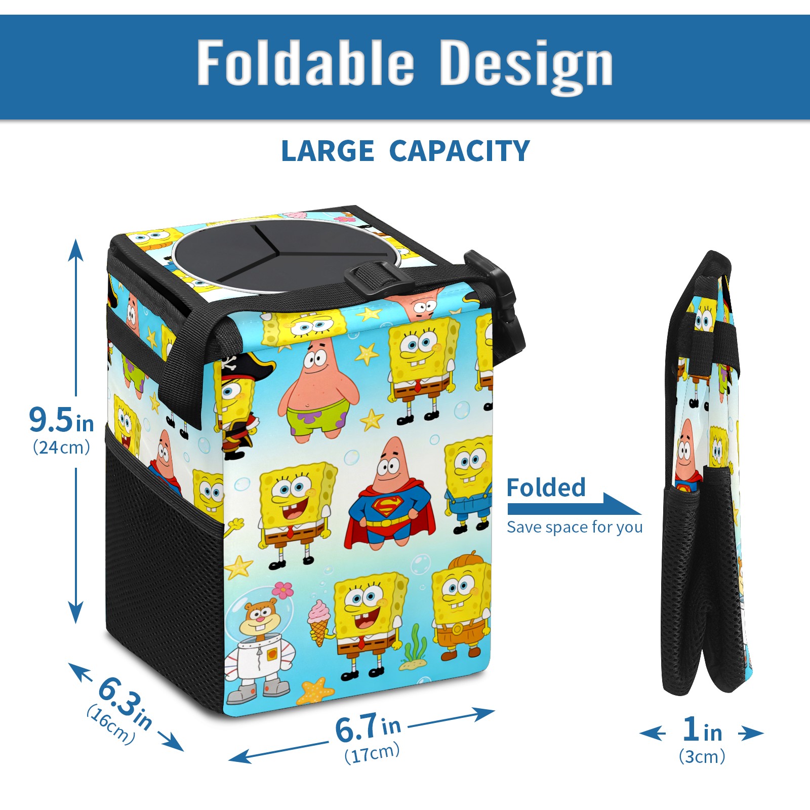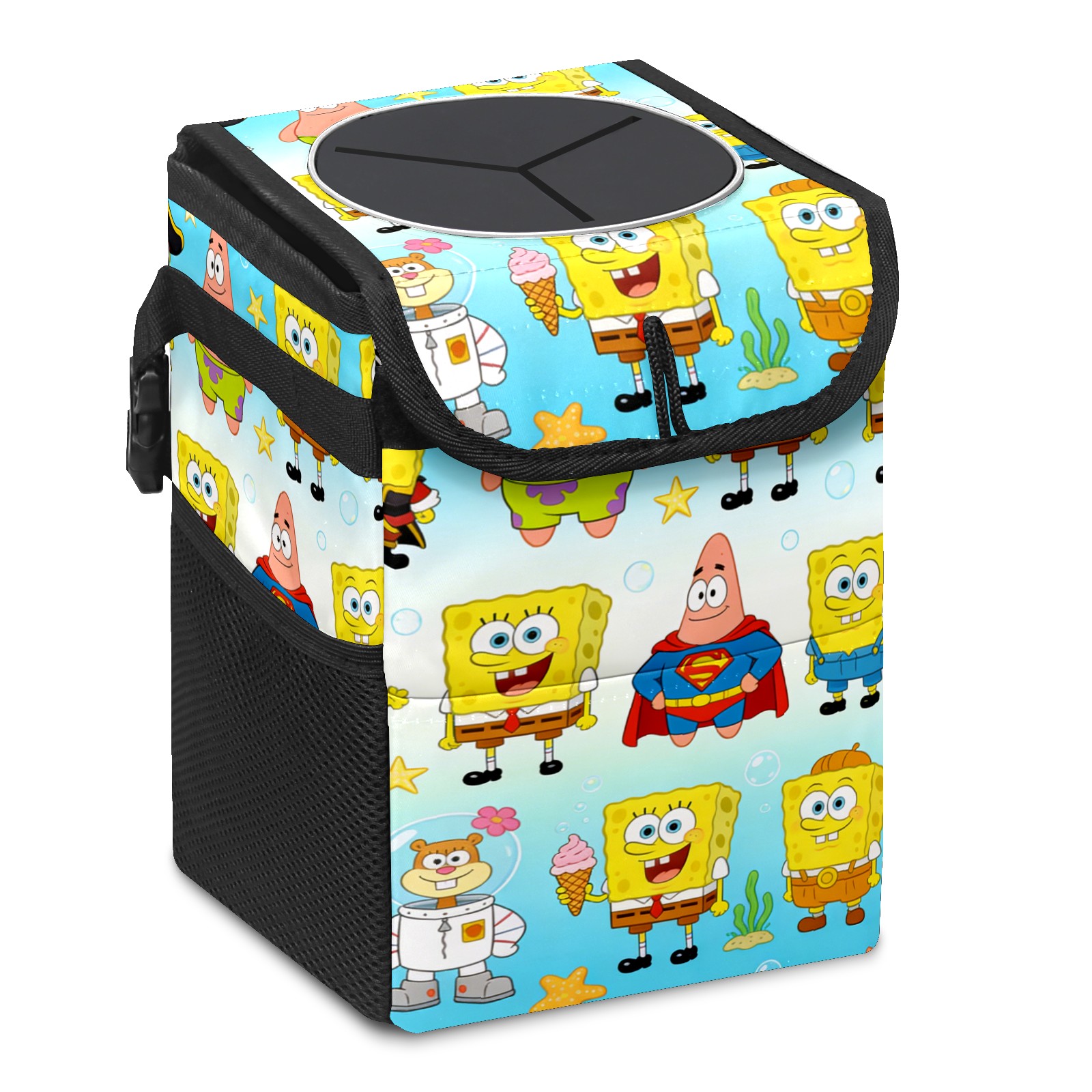 Car Trash Can with Lid, Small Portable Hanging Automotive Garbage Bin for Vehicles, Leakproof Waste Bag Container for SUV Truck Van Interior Auto Travel Road Trips(创作经典IP图 (33))