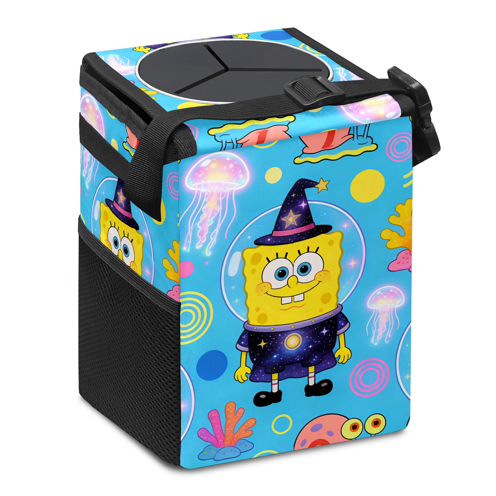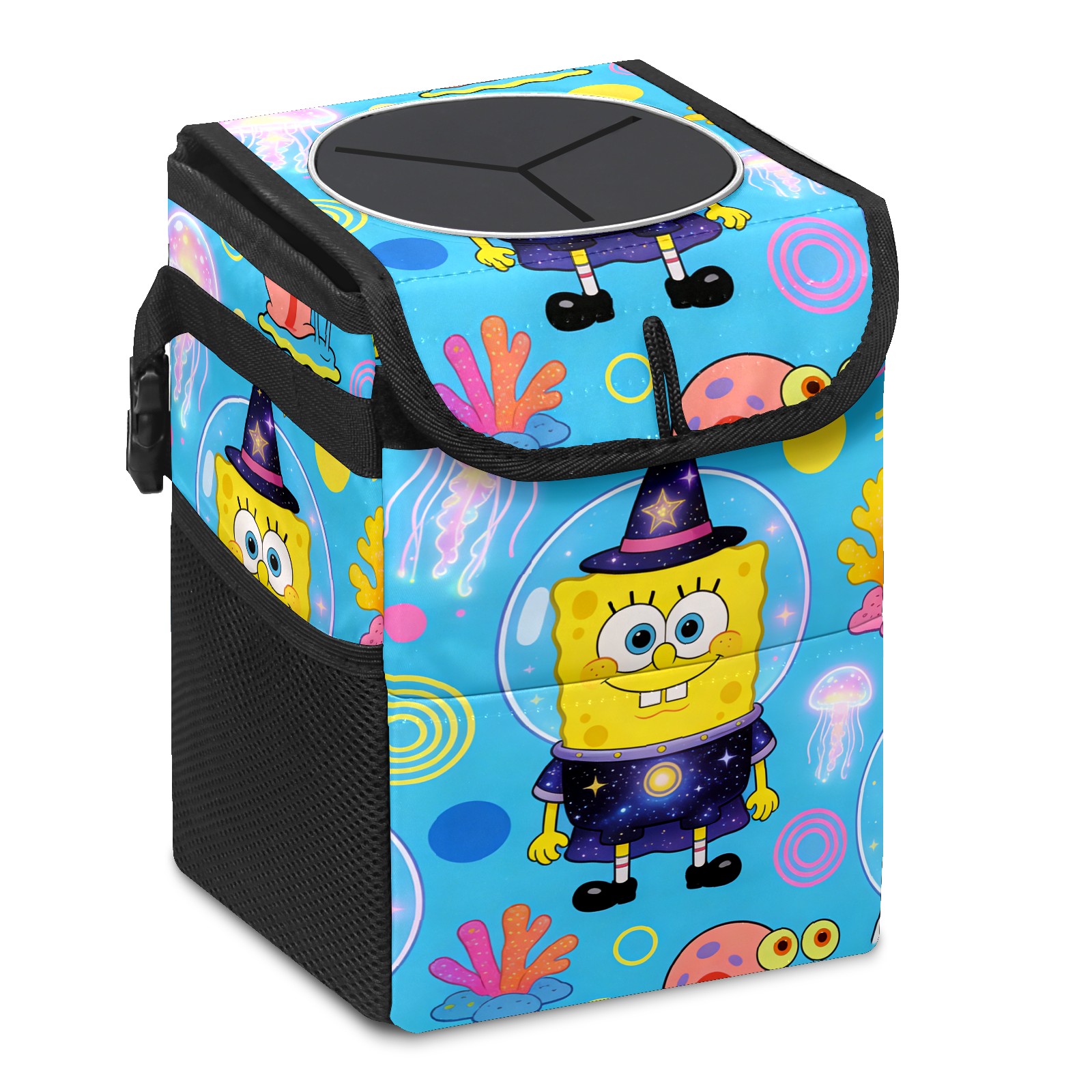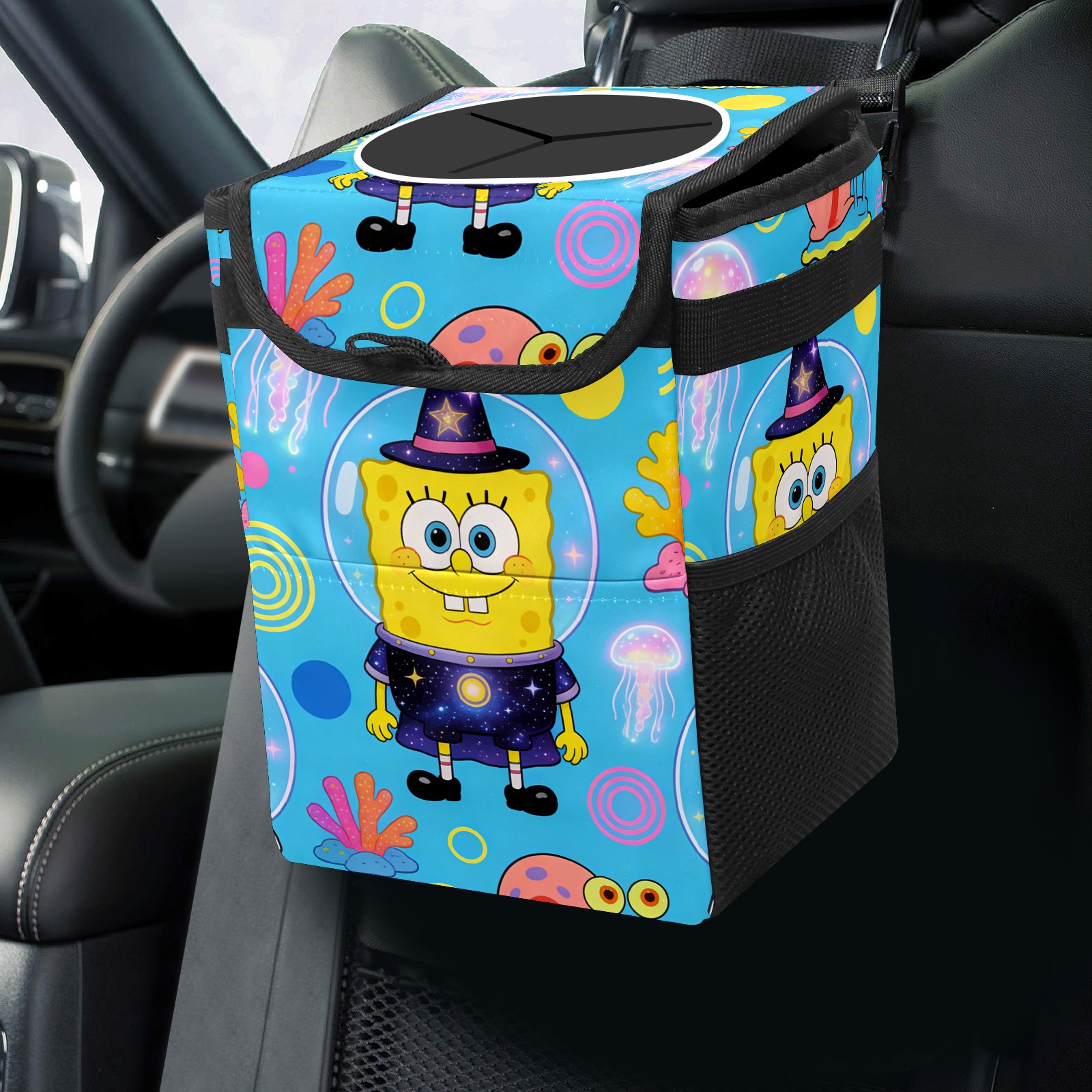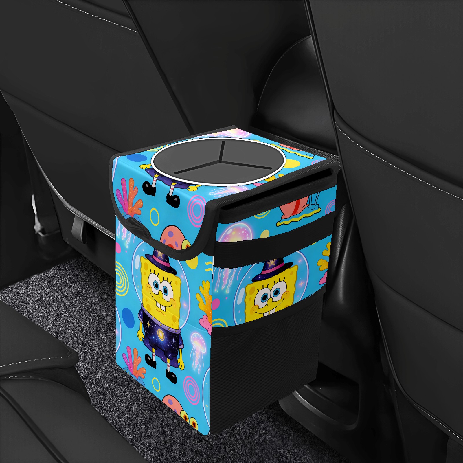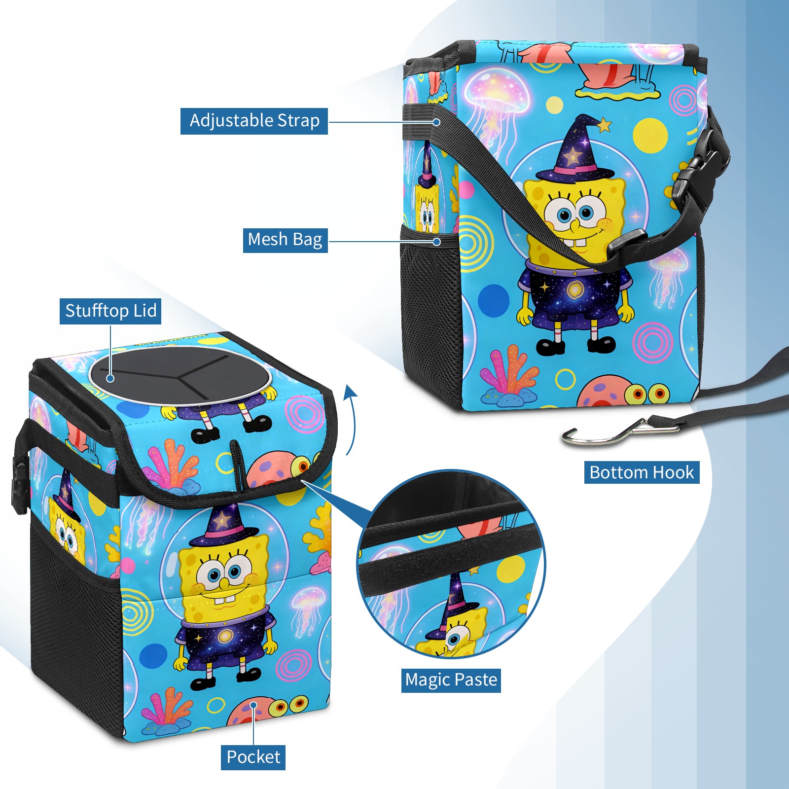 Car Trash Can with Lid, Small Portable Hanging Automotive Garbage Bin for Vehicles, Leakproof Waste Bag Container for SUV Truck Van Interior Auto Travel Road Trips(创作经典IP图 (39))