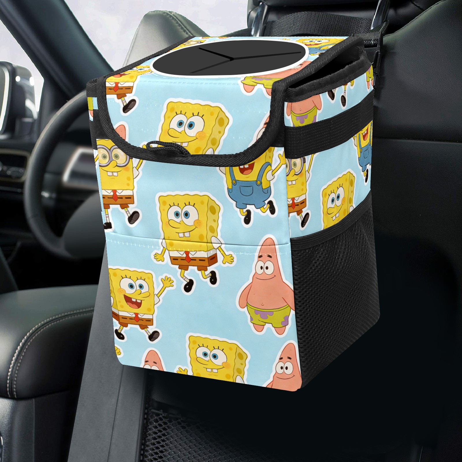 Car Trash Can with Lid, Small Portable Hanging Automotive Garbage Bin for Vehicles, Leakproof Waste Bag Container for SUV Truck Van Interior Auto Travel Road Trips(创作经典IP图 (24))