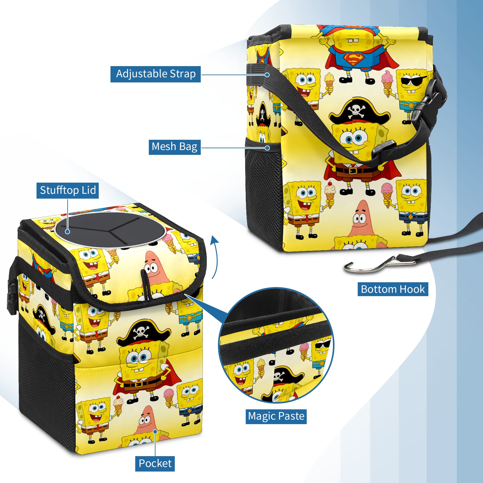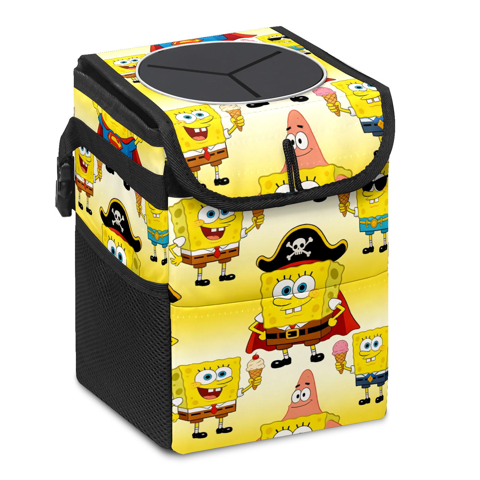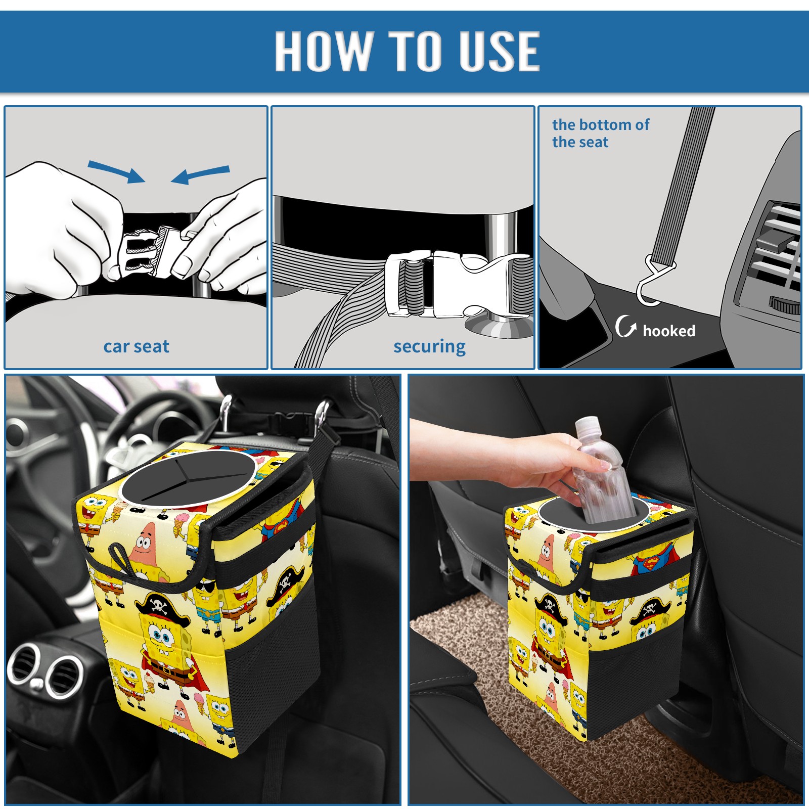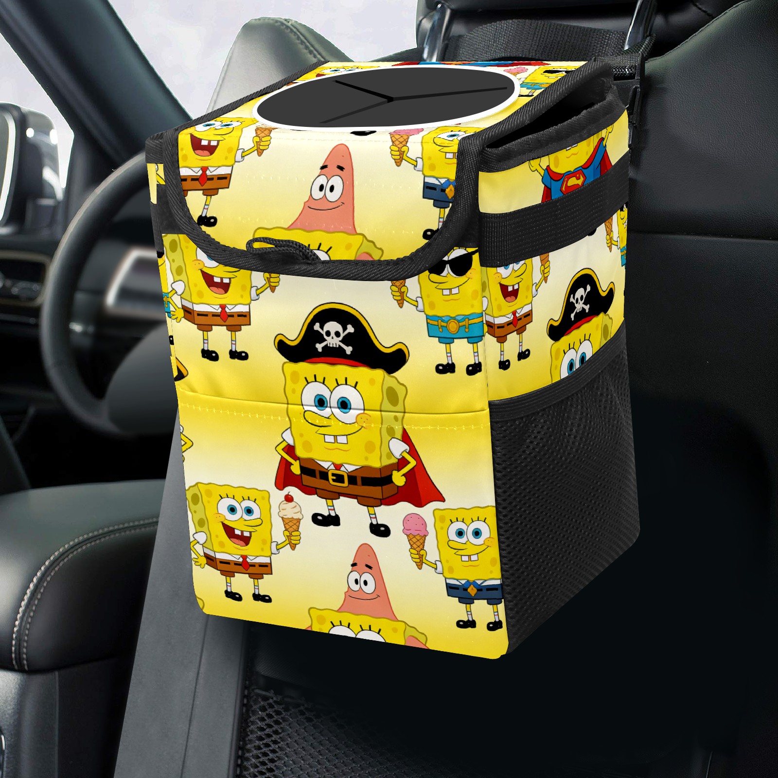 Car Trash Can with Lid, Small Portable Hanging Automotive Garbage Bin for Vehicles, Leakproof Waste Bag Container for SUV Truck Van Interior Auto Travel Road Trips(创作经典IP图 (29))
