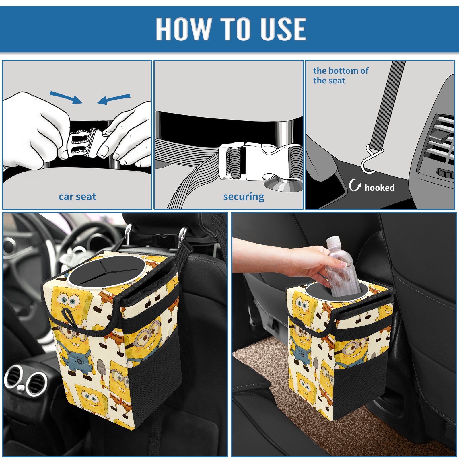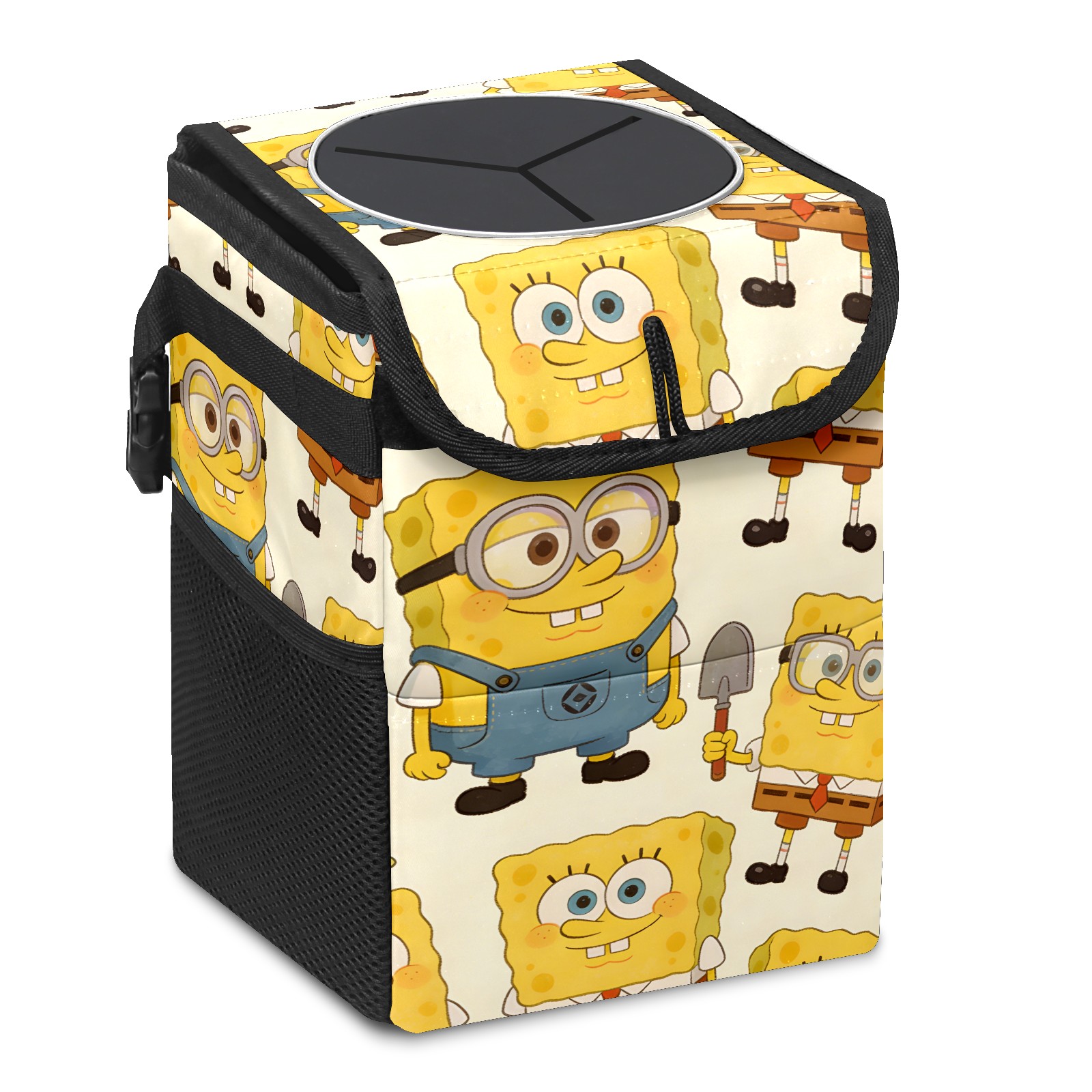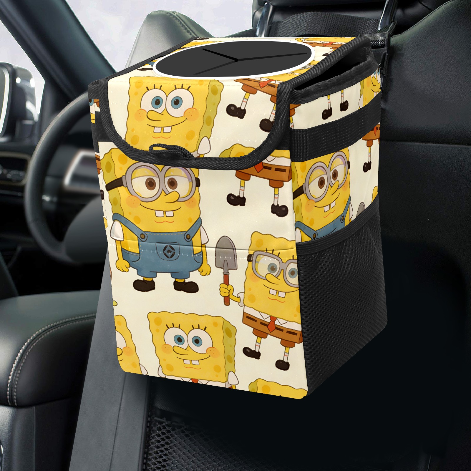 Car Trash Can with Lid, Small Portable Hanging Automotive Garbage Bin for Vehicles, Leakproof Waste Bag Container for SUV Truck Van Interior Auto Travel Road Trips(创作经典IP图 (16))
