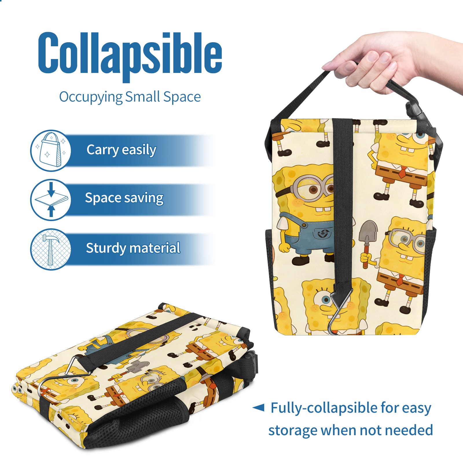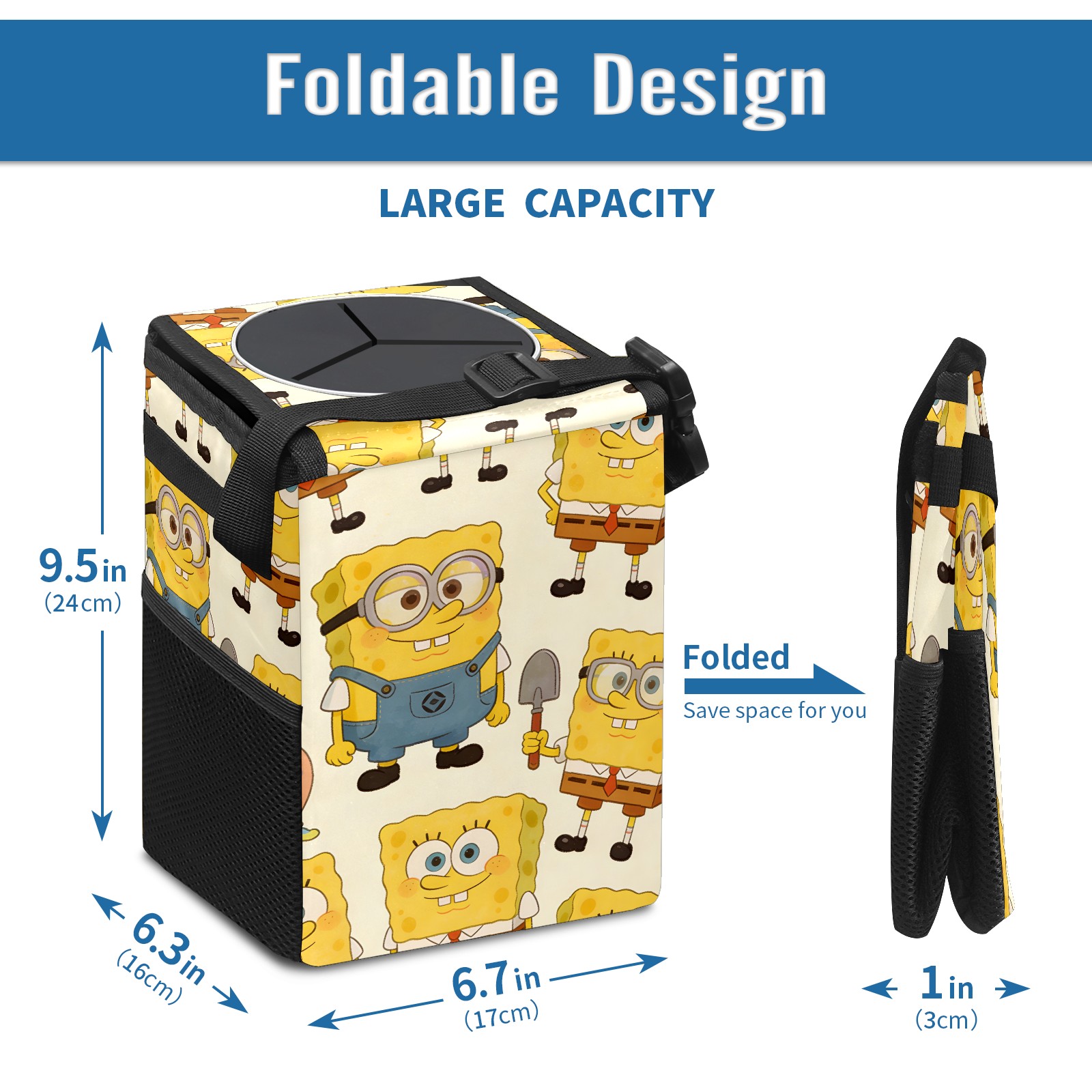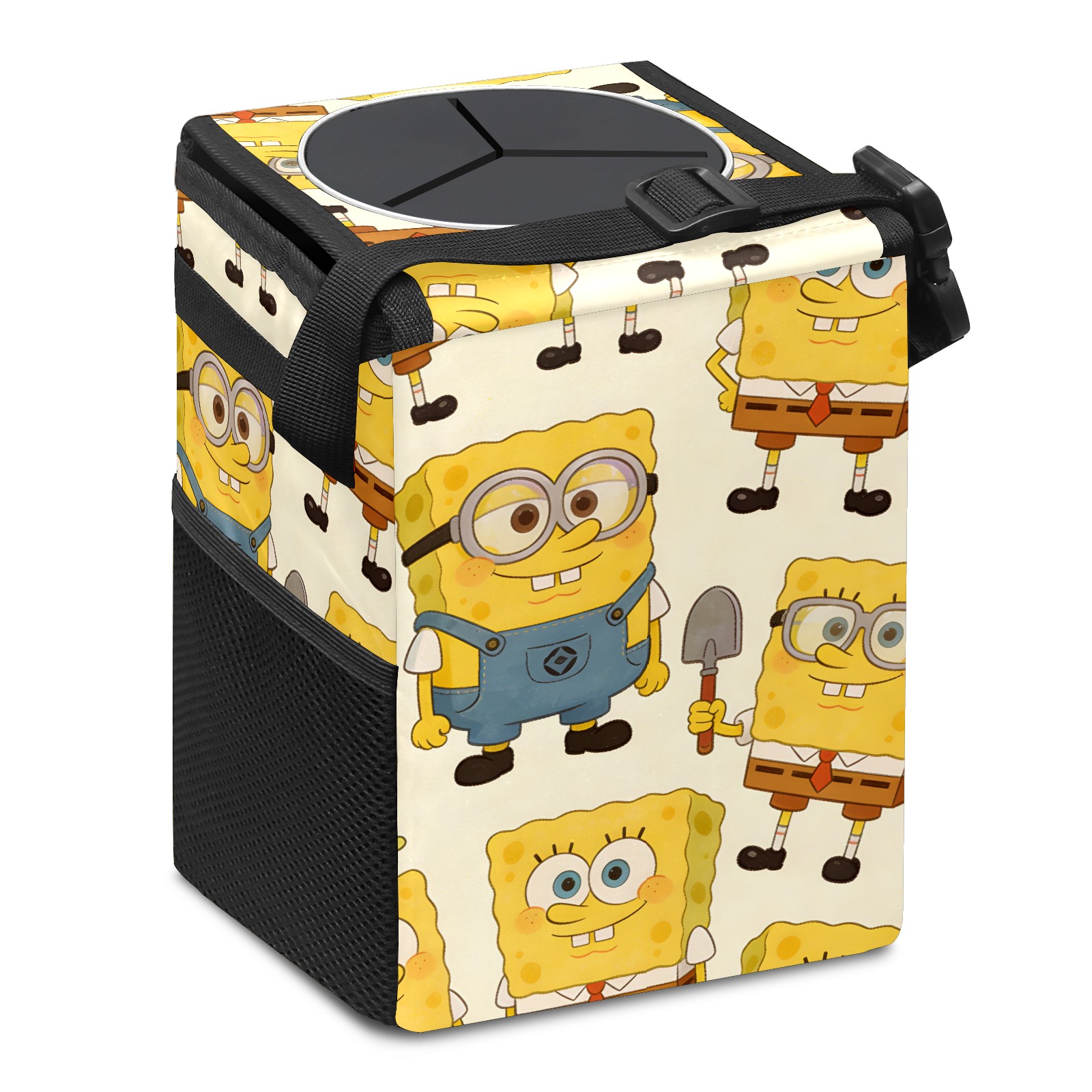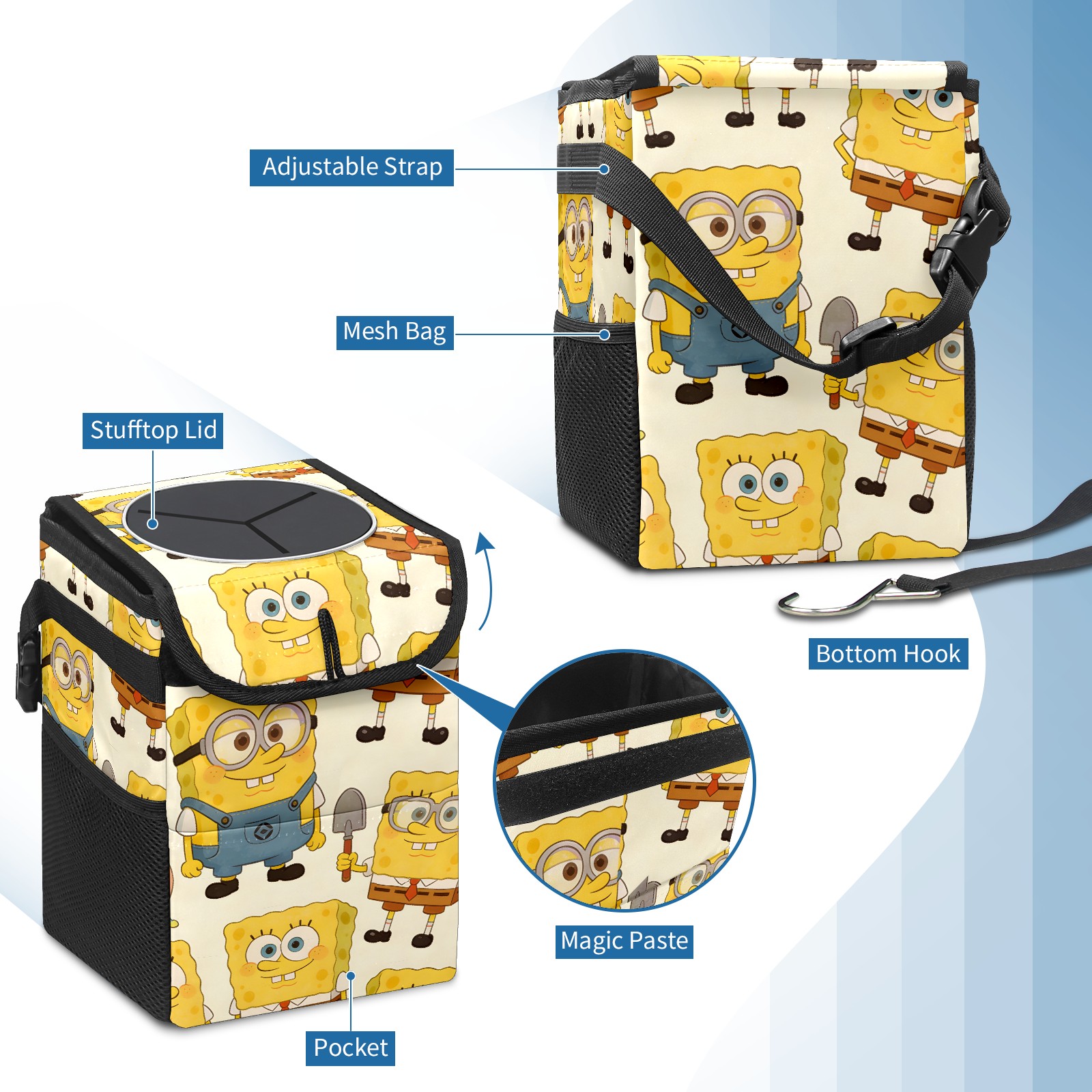 Car Trash Can with Lid, Small Portable Hanging Automotive Garbage Bin for Vehicles, Leakproof Waste Bag Container for SUV Truck Van Interior Auto Travel Road Trips(创作经典IP图 (16))