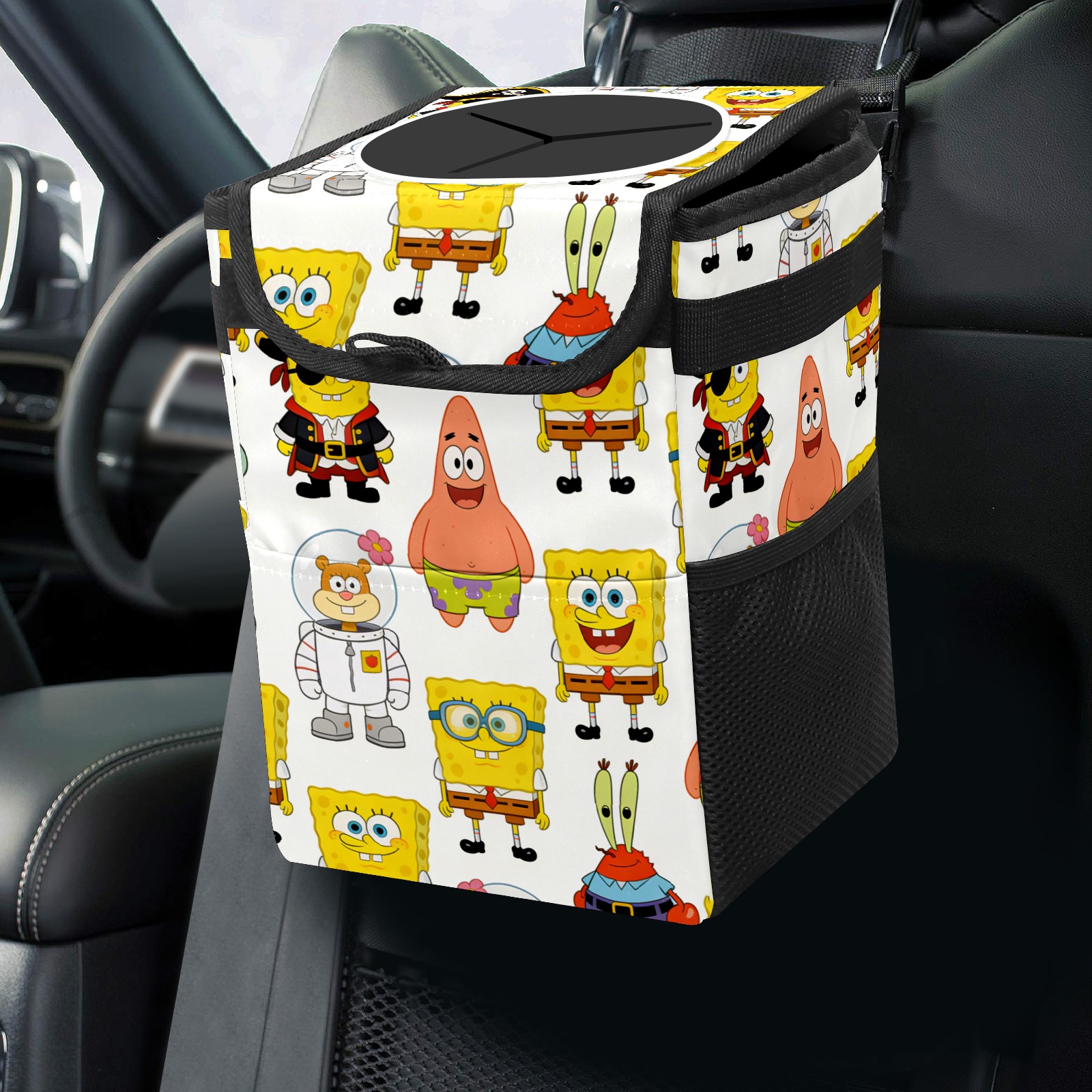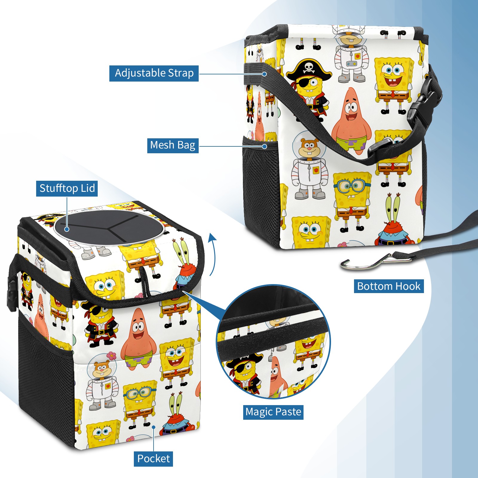 Car Trash Can with Lid, Small Portable Hanging Automotive Garbage Bin for Vehicles, Leakproof Waste Bag Container for SUV Truck Van Interior Auto Travel Road Trips(创作经典IP图 (12))