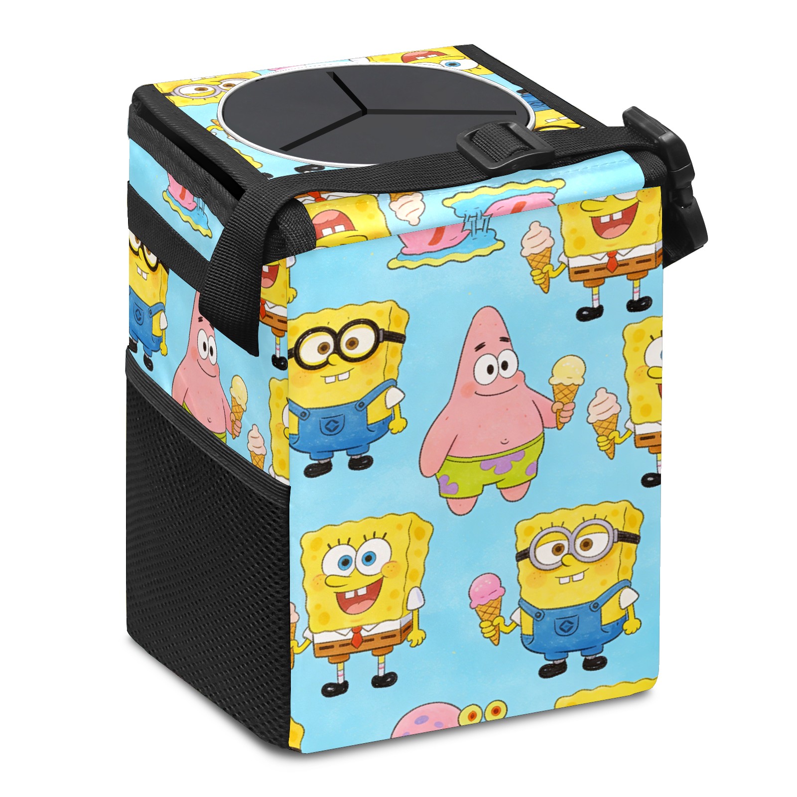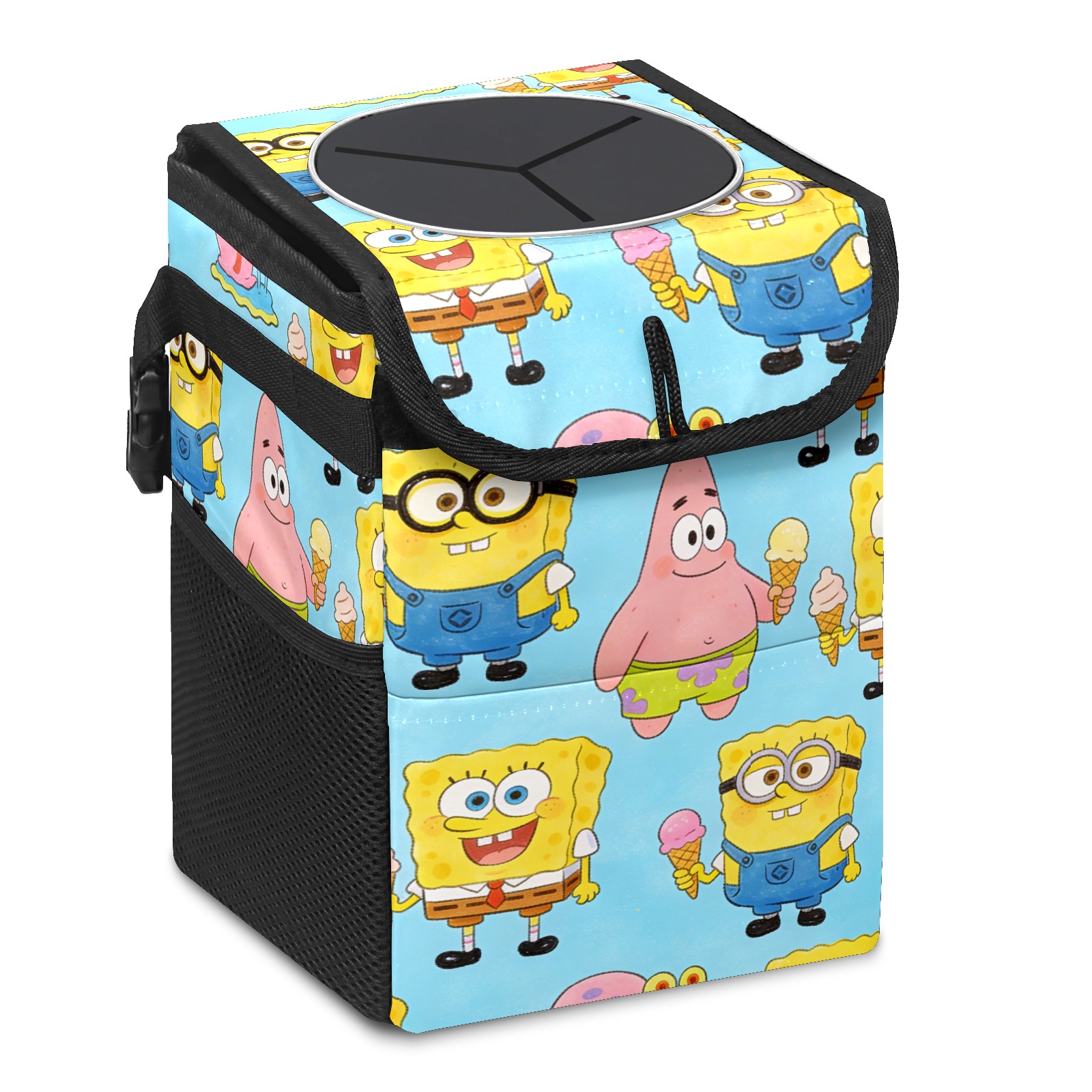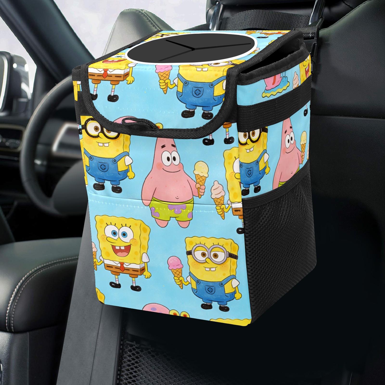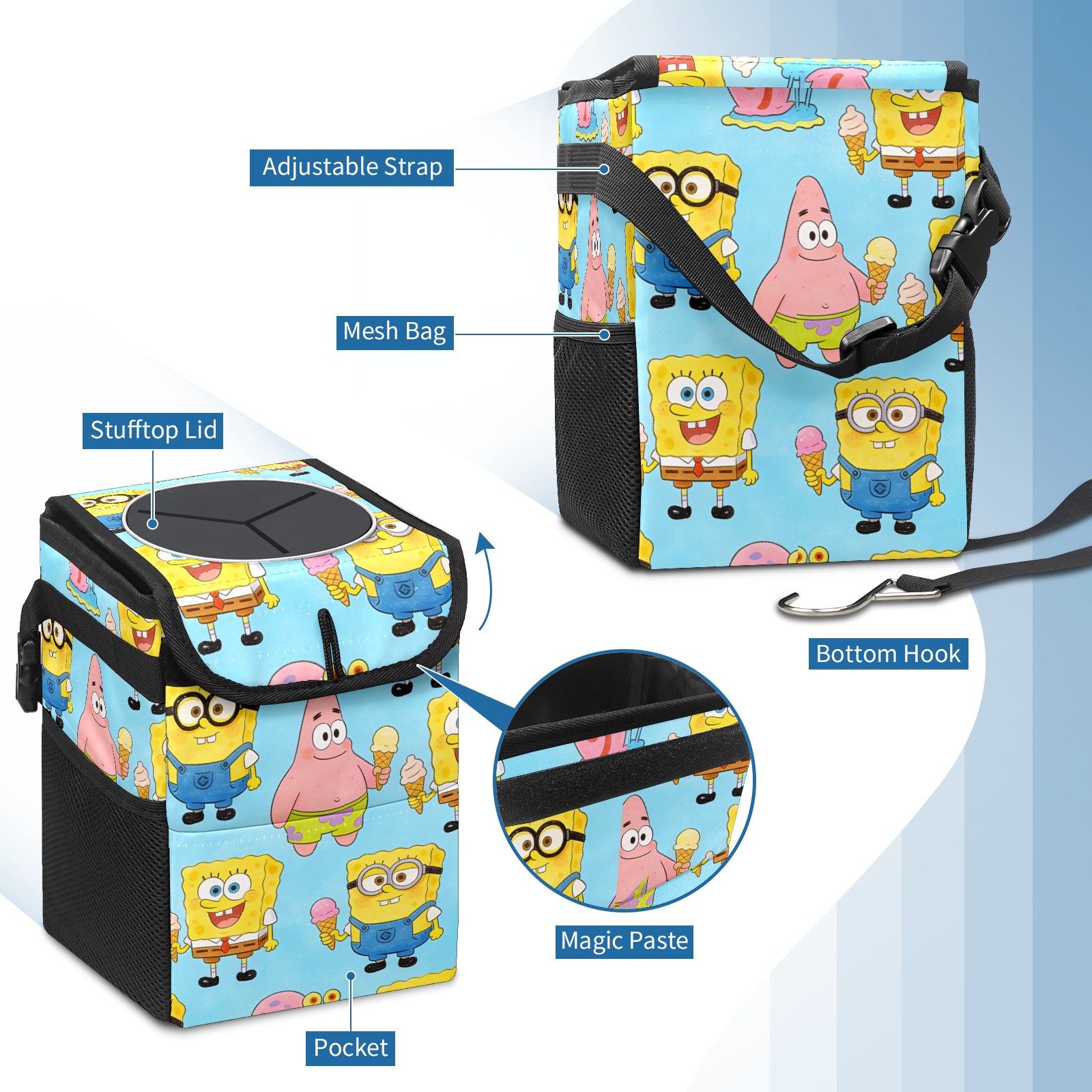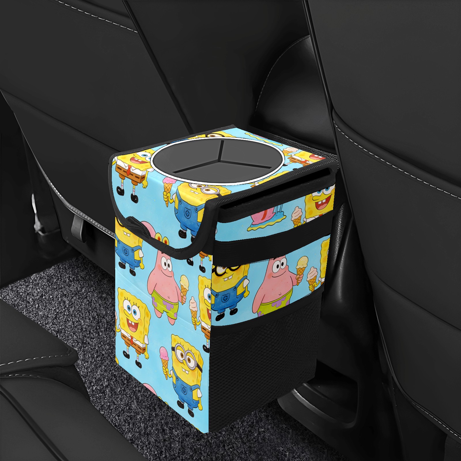 Car Trash Can with Lid, Small Portable Hanging Automotive Garbage Bin for Vehicles, Leakproof Waste Bag Container for SUV Truck Van Interior Auto Travel Road Trips(创作经典IP图 (9))