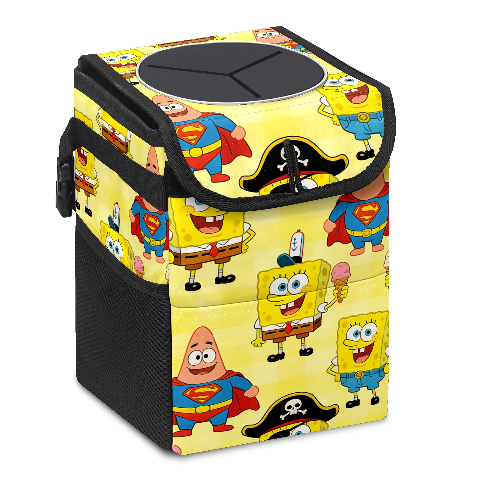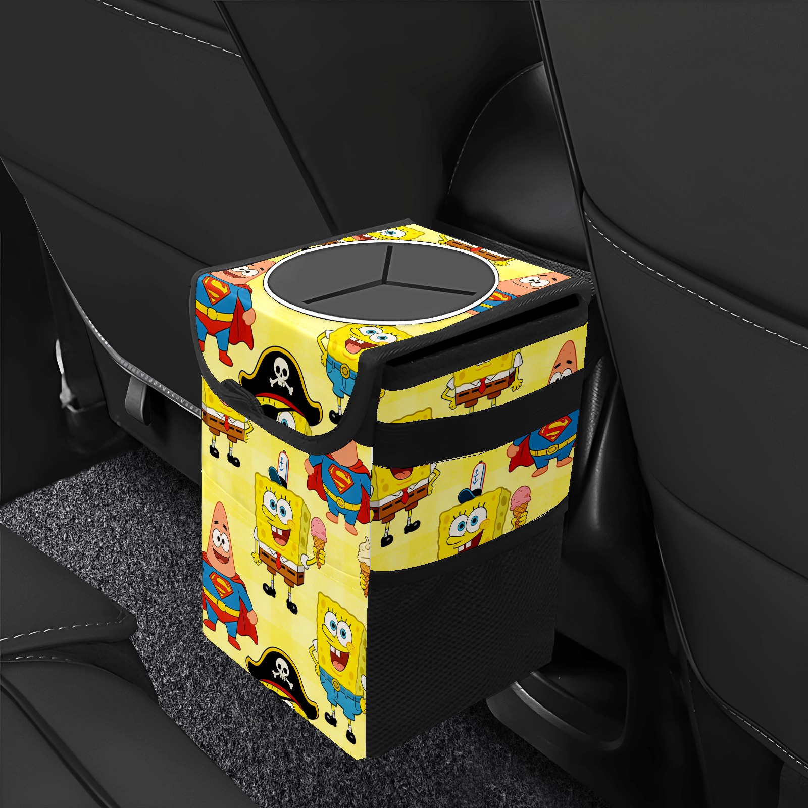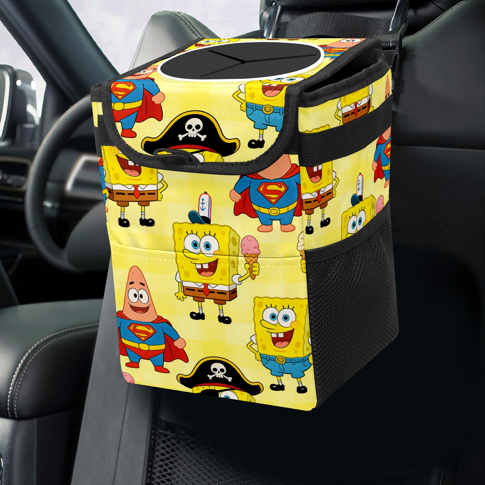 Car Trash Can with Lid, Small Portable Hanging Automotive Garbage Bin for Vehicles, Leakproof Waste Bag Container for SUV Truck Van Interior Auto Travel Road Trips(创作经典IP图 (8))