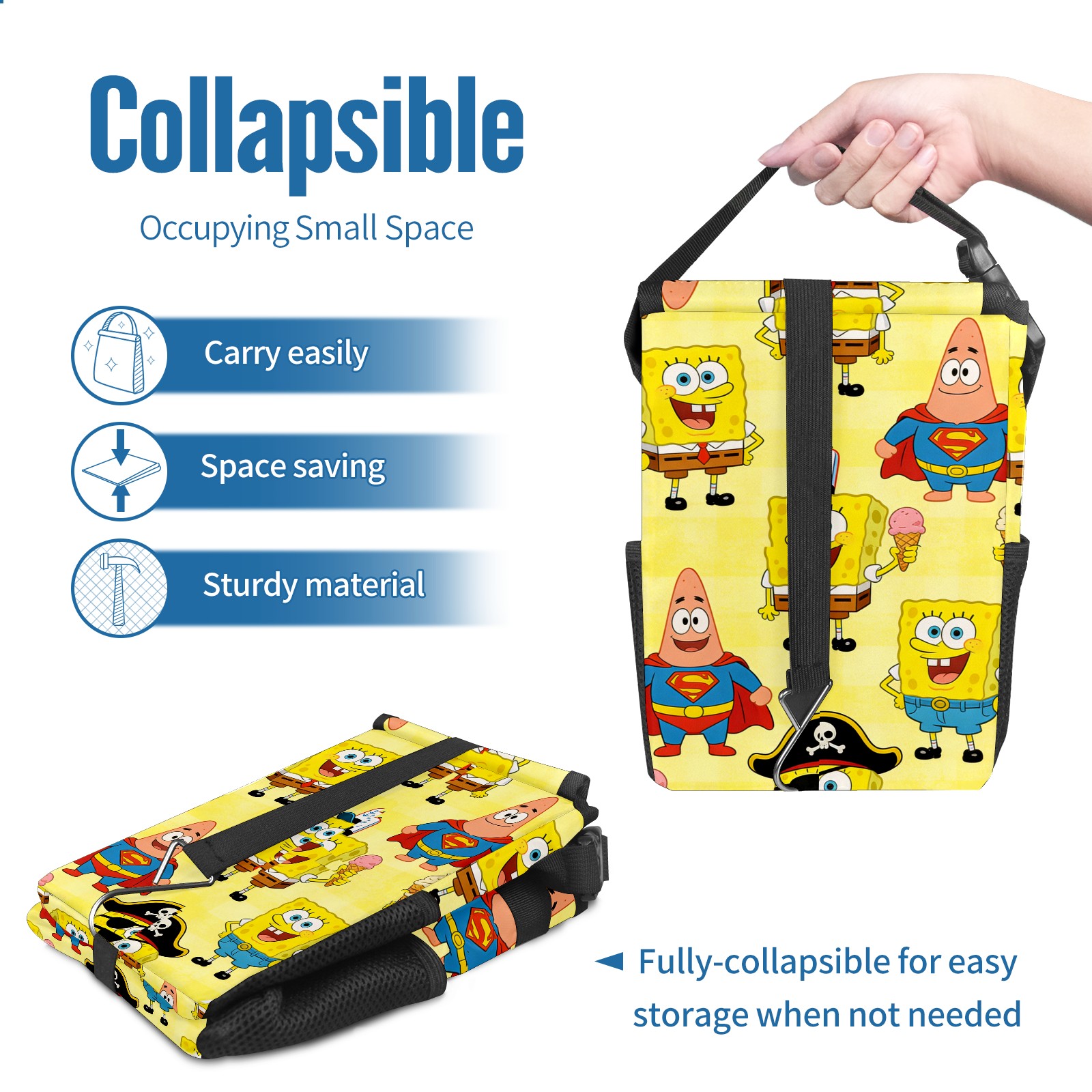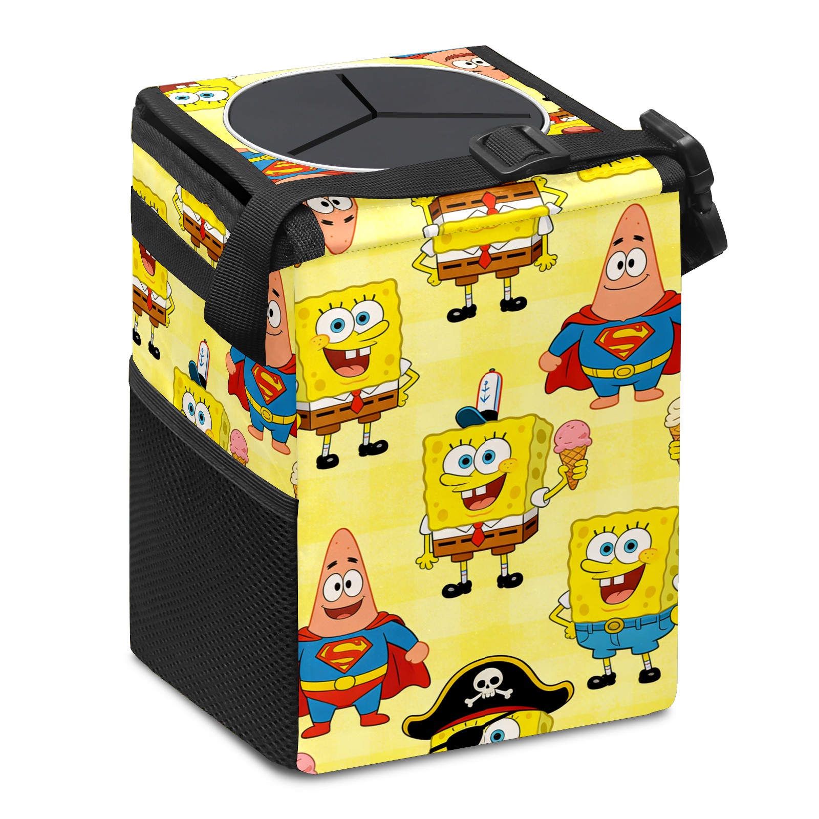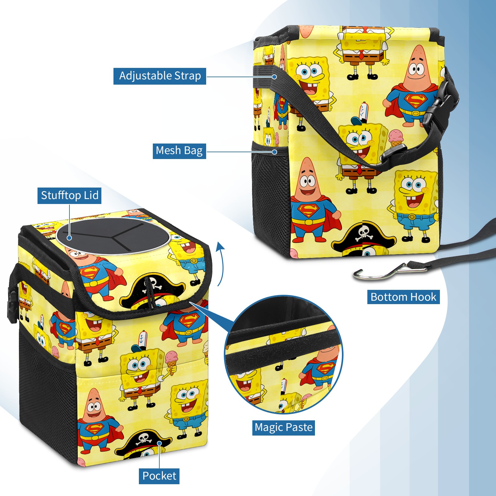 Car Trash Can with Lid, Small Portable Hanging Automotive Garbage Bin for Vehicles, Leakproof Waste Bag Container for SUV Truck Van Interior Auto Travel Road Trips(创作经典IP图 (8))