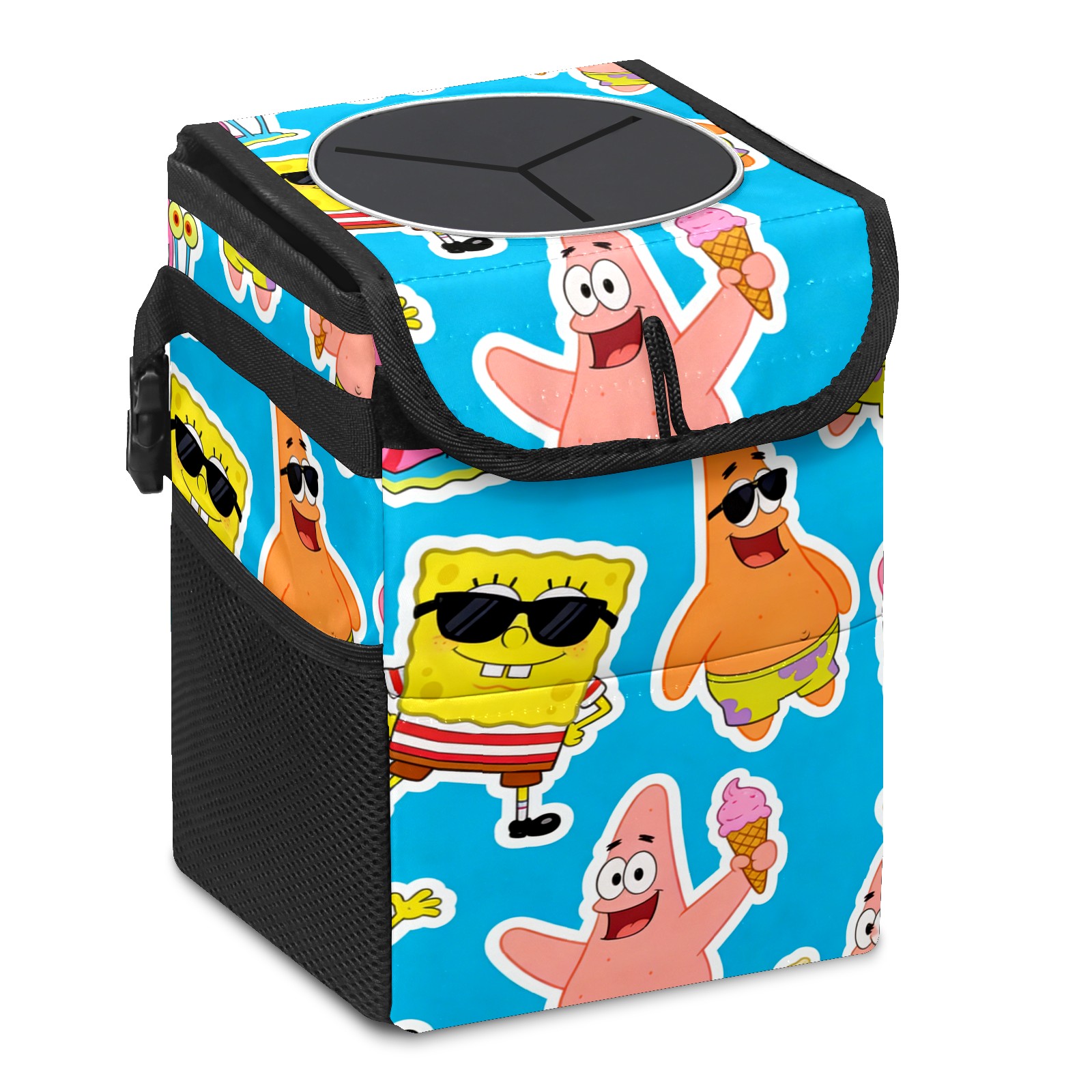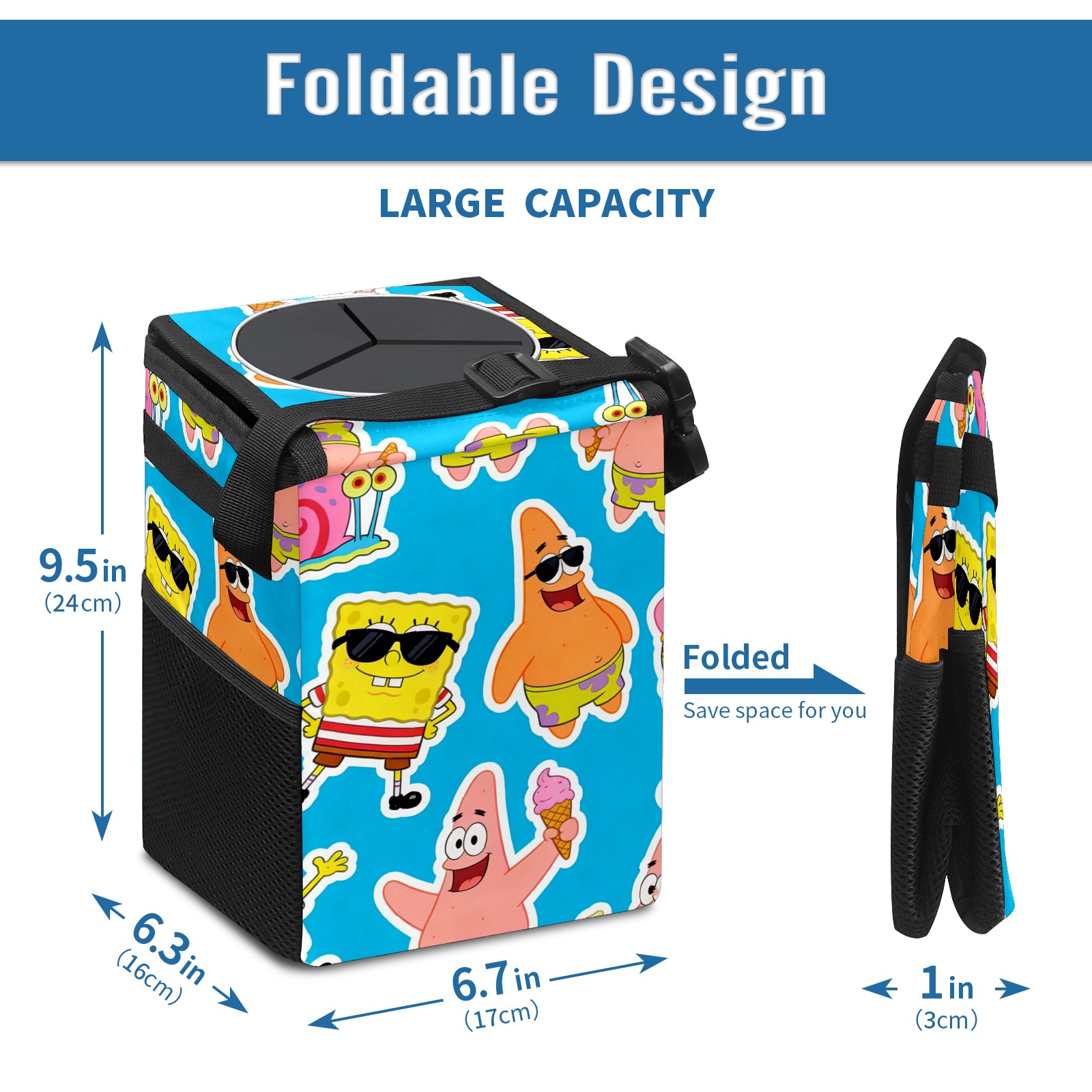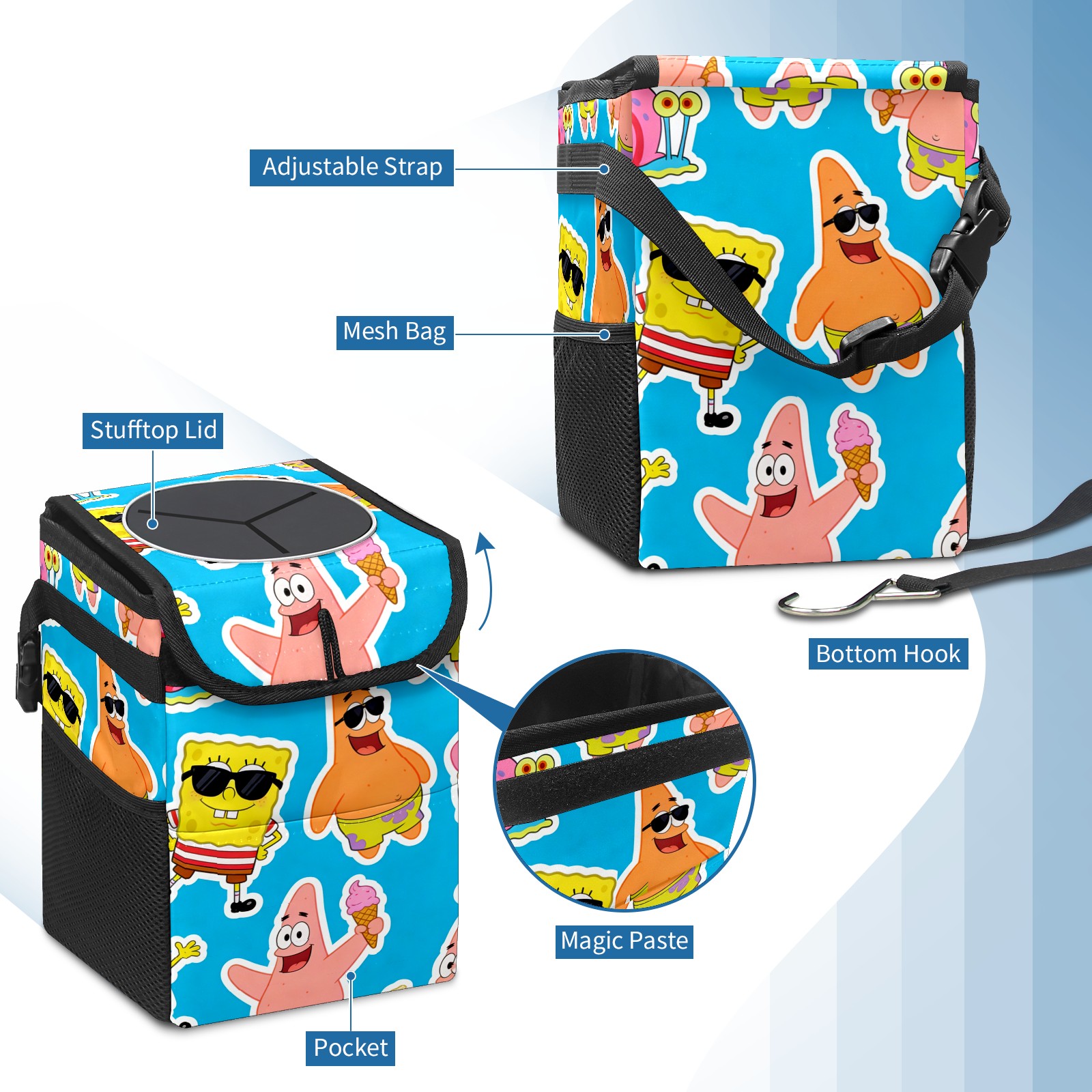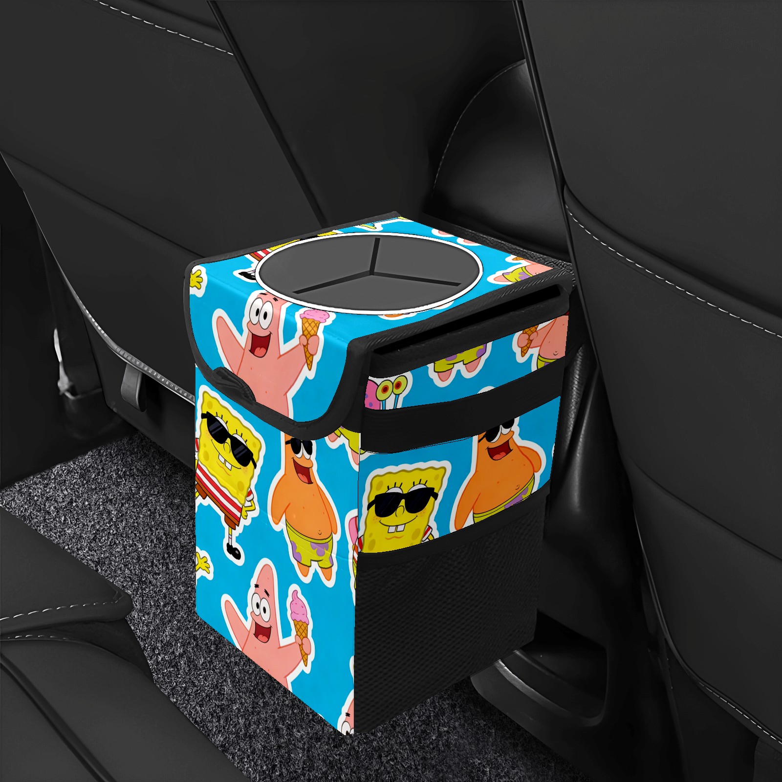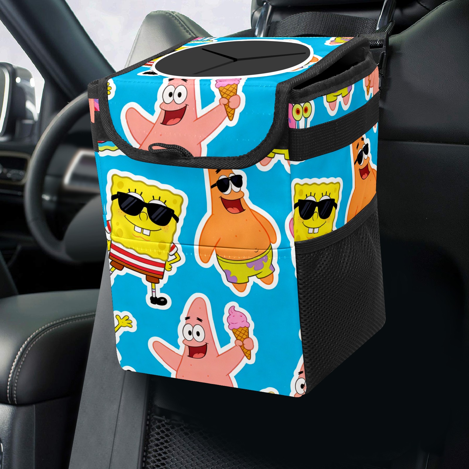 Car Trash Can with Lid, Small Portable Hanging Automotive Garbage Bin for Vehicles, Leakproof Waste Bag Container for SUV Truck Van Interior Auto Travel Road Trips(创作经典IP图 (1))
