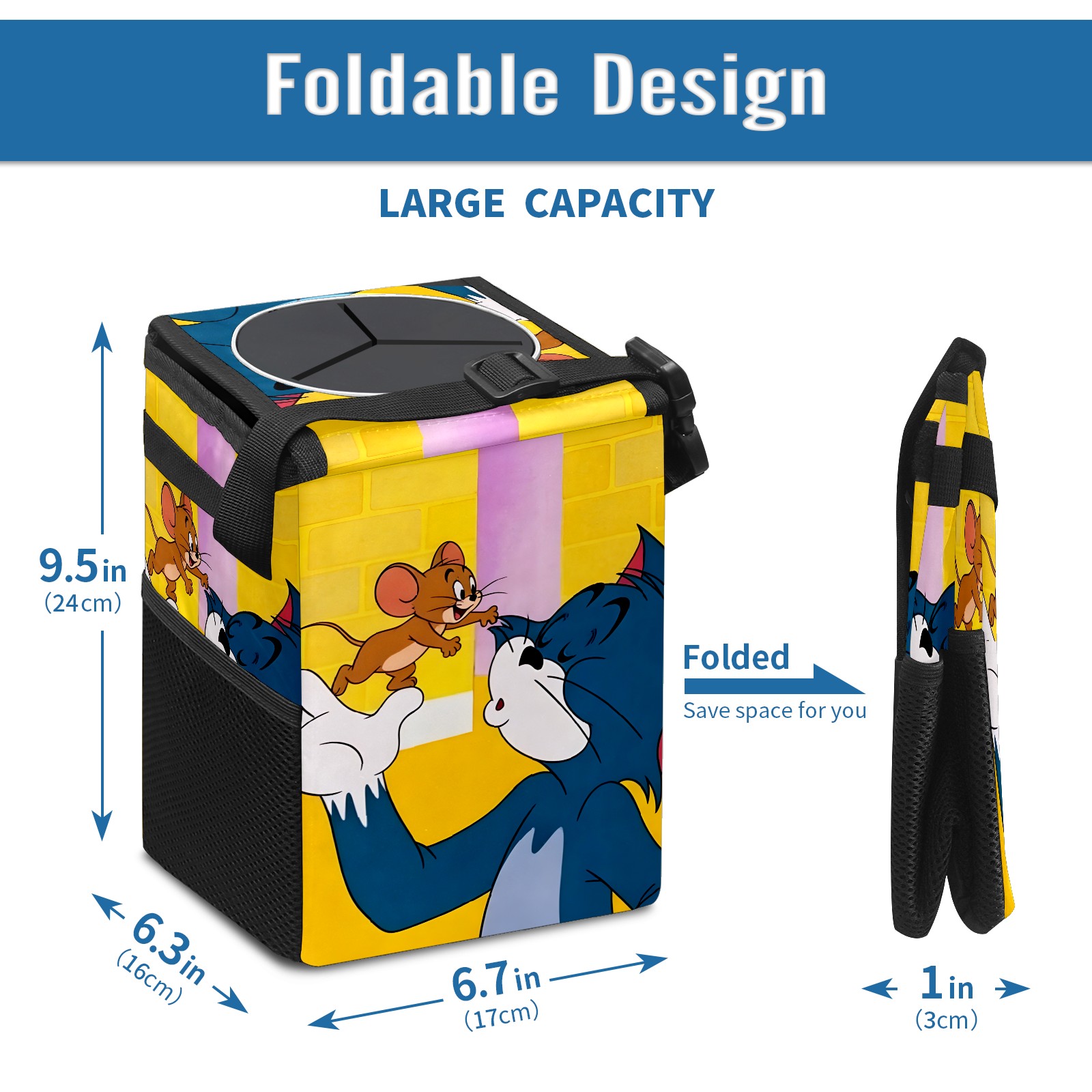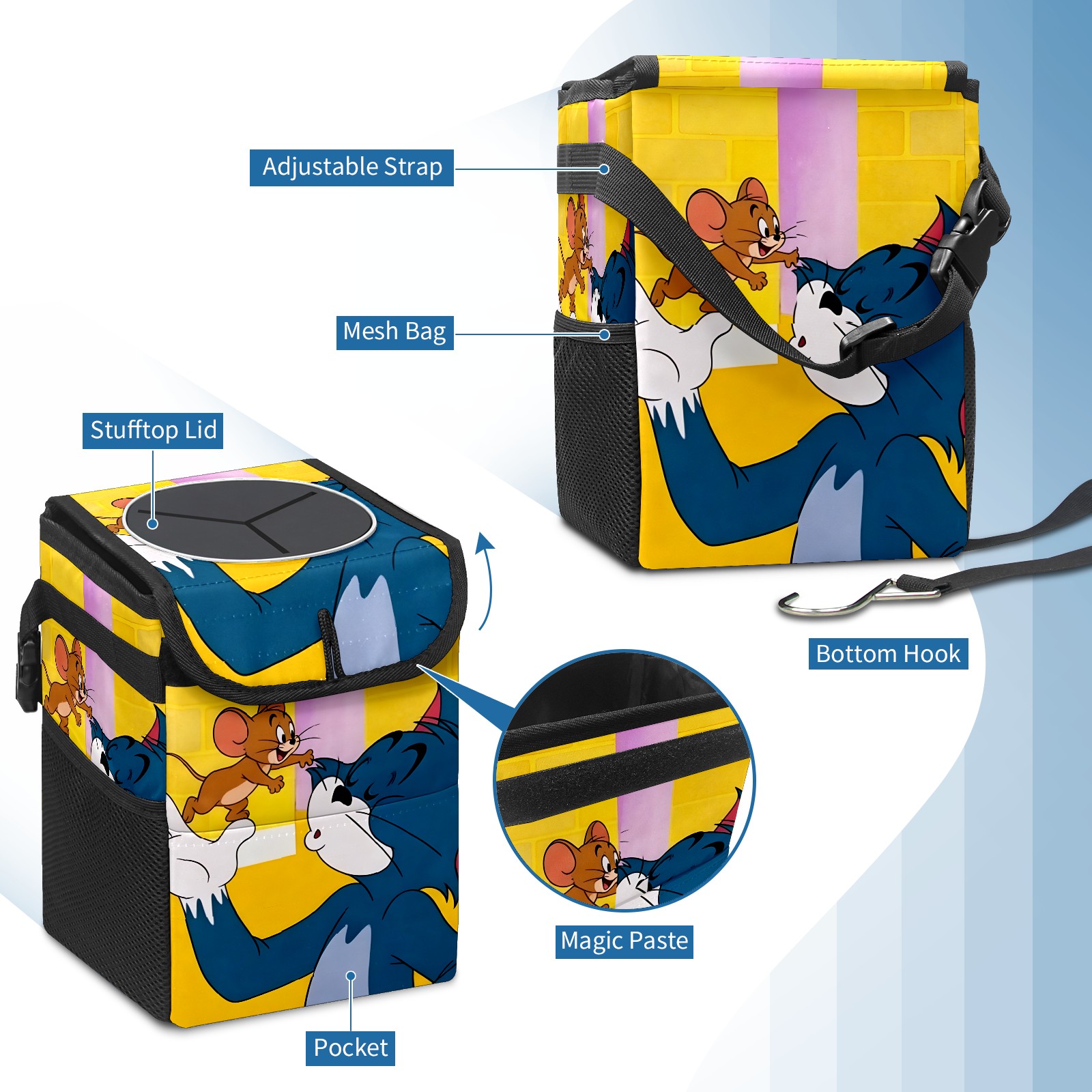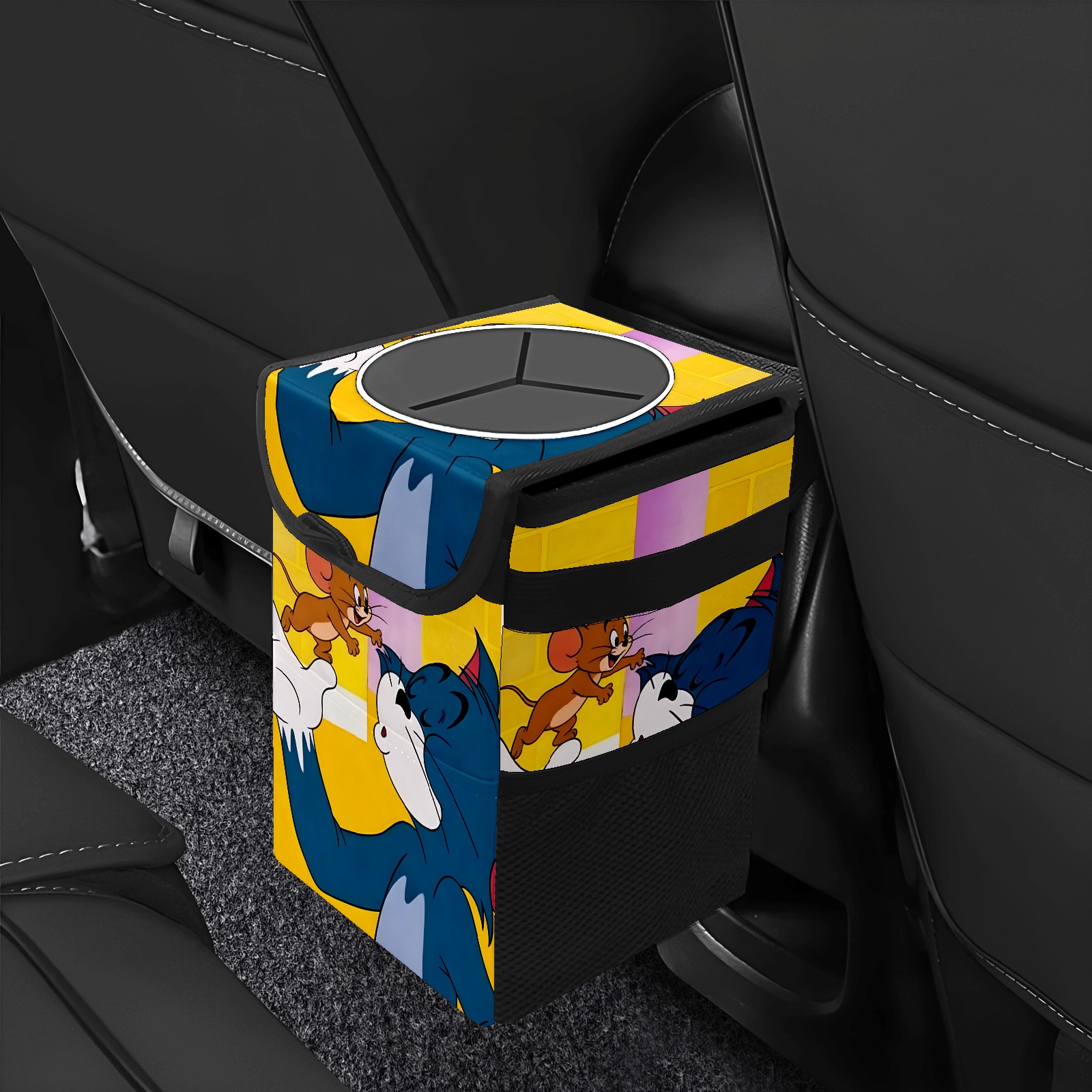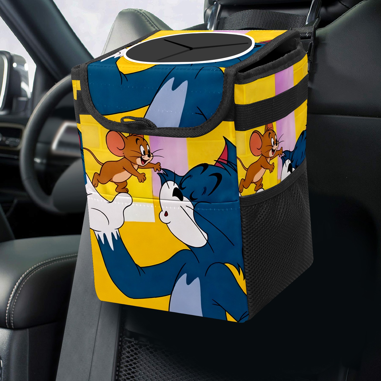 Car Trash Can with Lid, Small Portable Hanging Automotive Garbage Bin for Vehicles, Leakproof Waste Bag Container for SUV Truck Van Interior Auto Travel Road Trips(创作经典IP图1111)