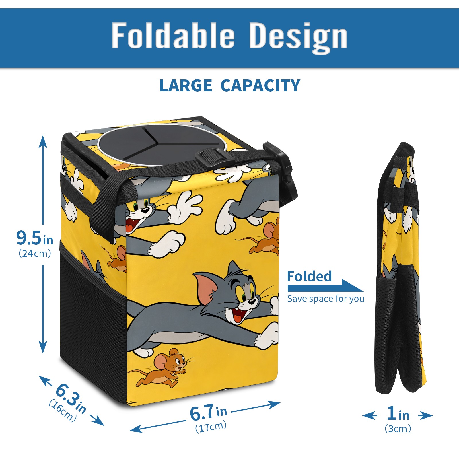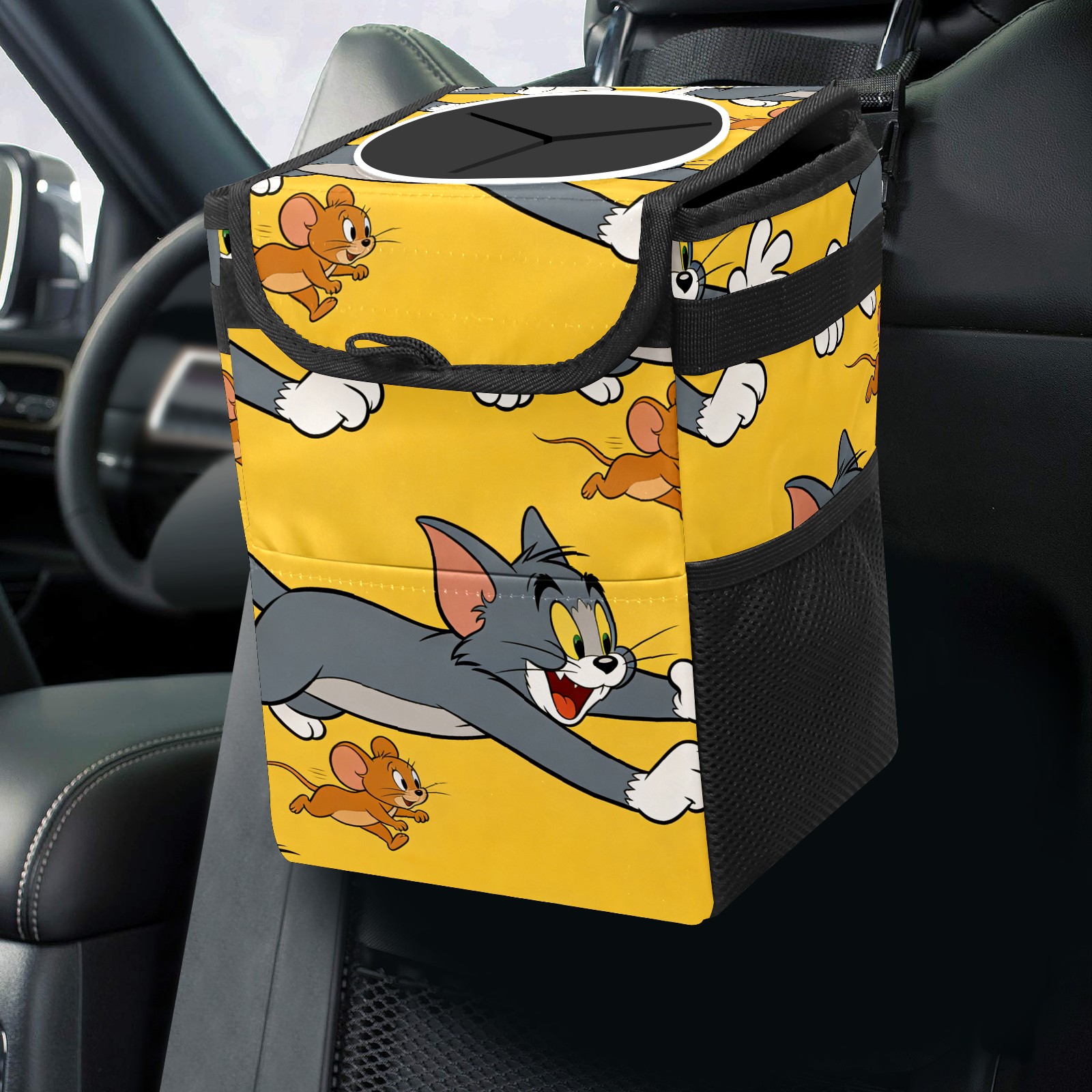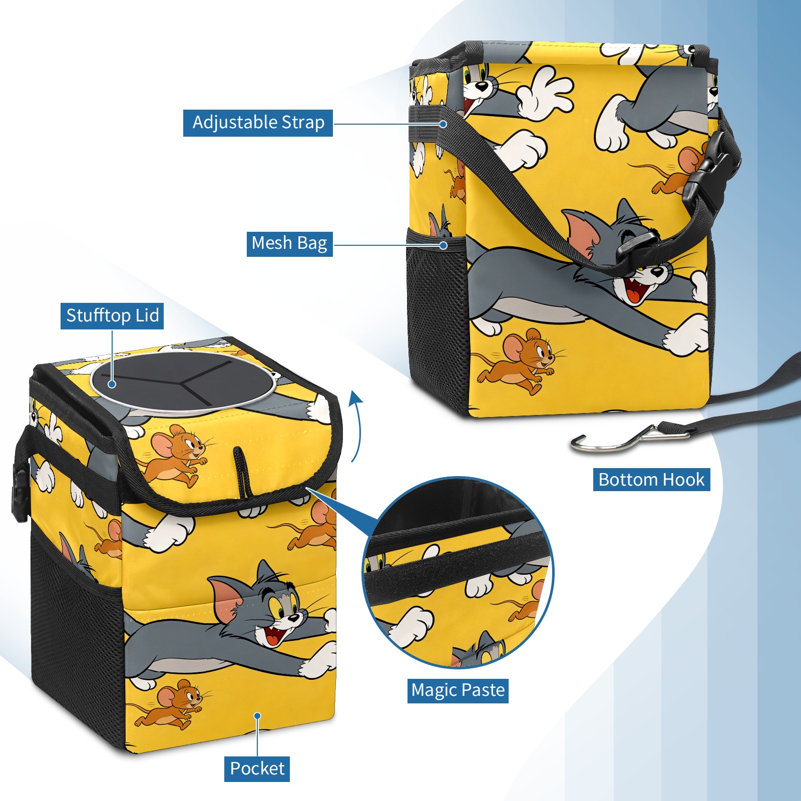 Car Trash Can with Lid, Small Portable Hanging Automotive Garbage Bin for Vehicles, Leakproof Waste Bag Container for SUV Truck Van Interior Auto Travel Road Trips(创作经典IP图 (195))