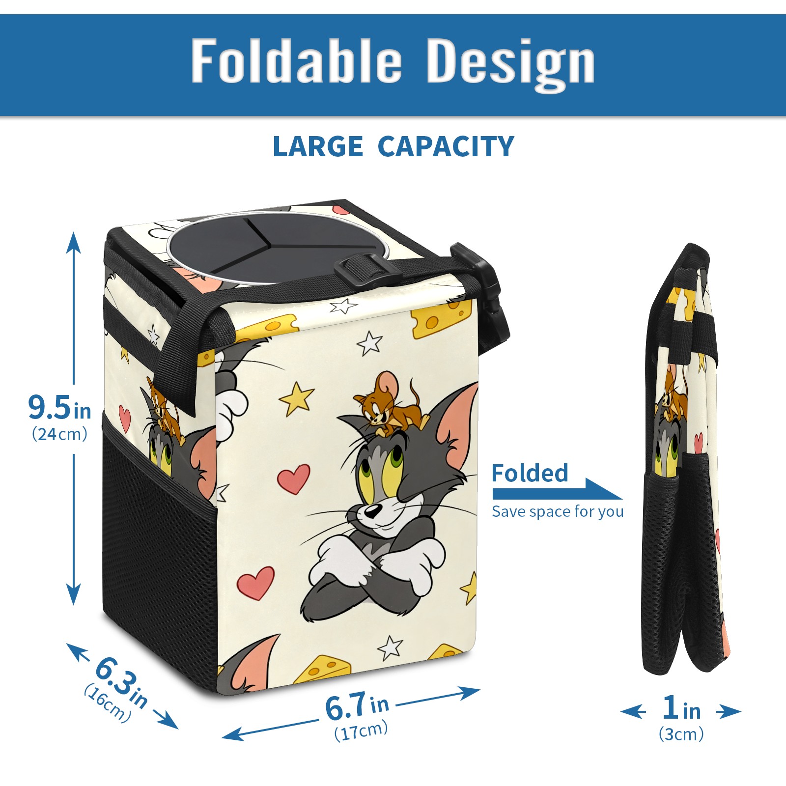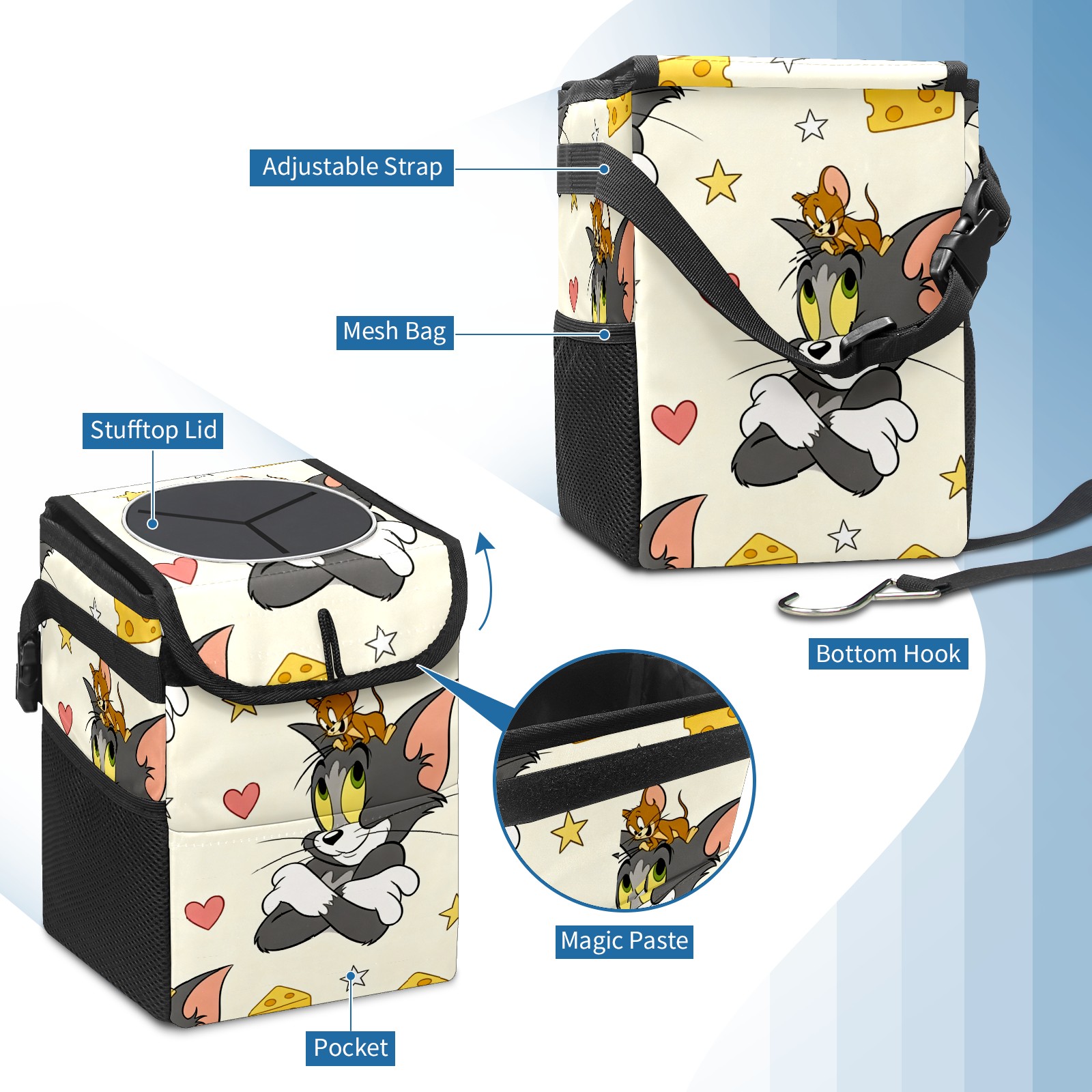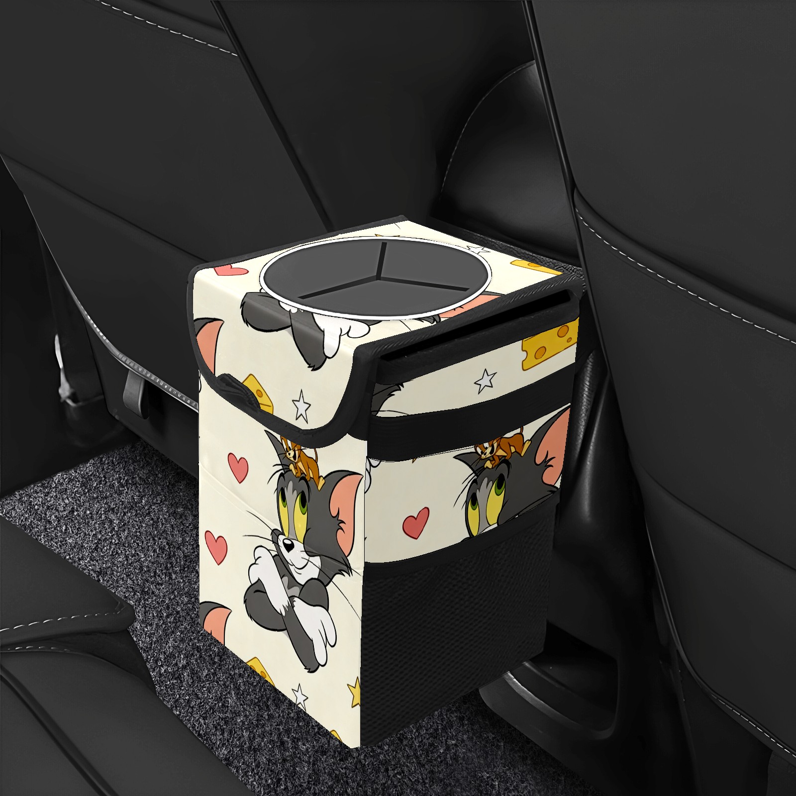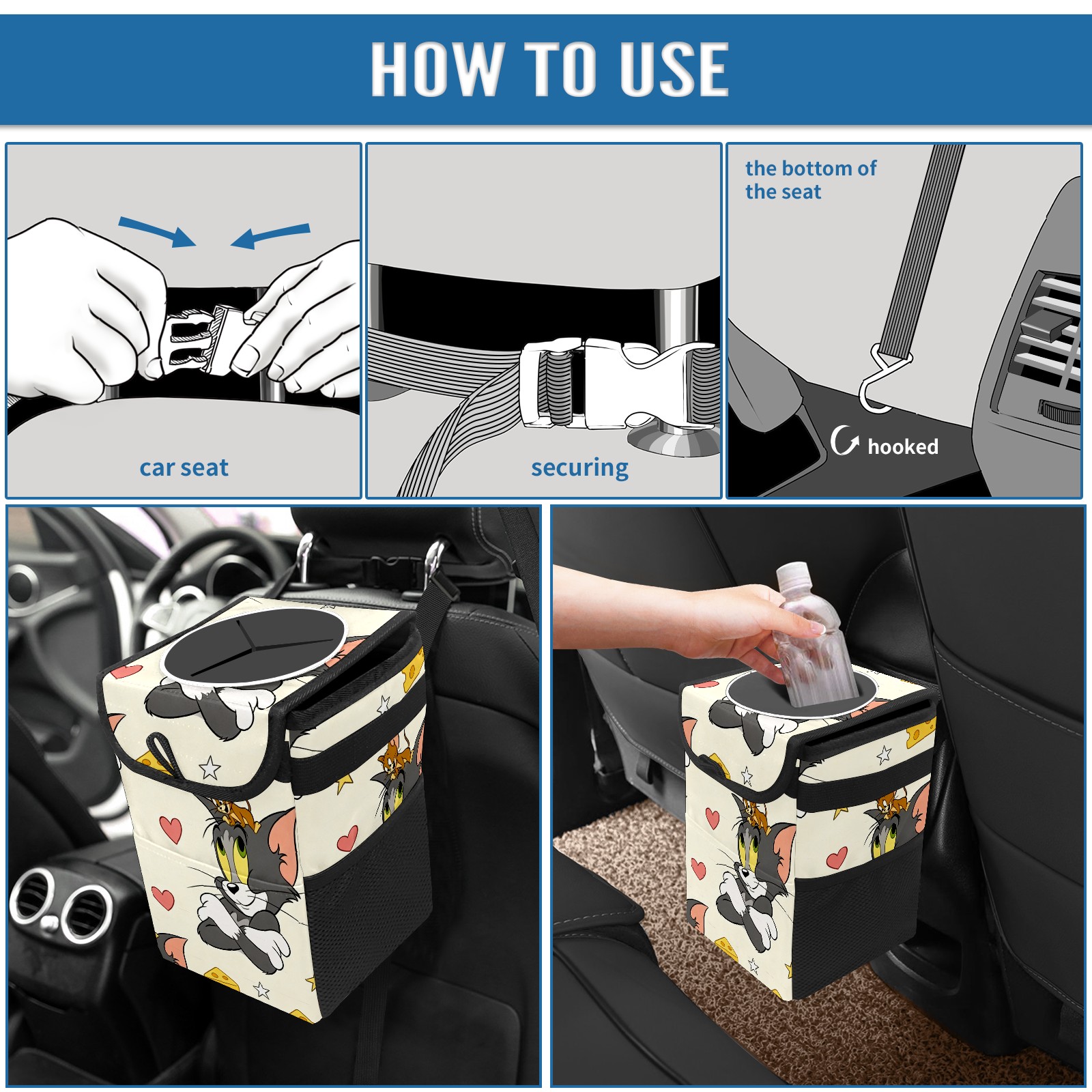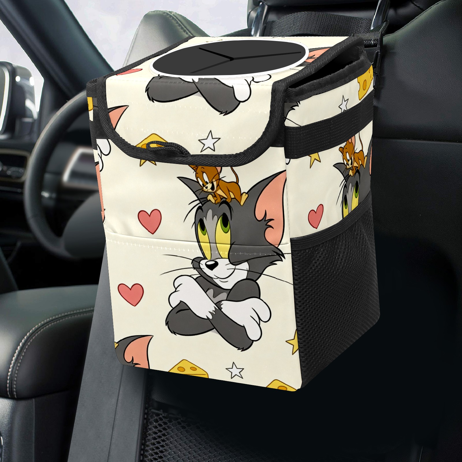 Car Trash Can with Lid, Small Portable Hanging Automotive Garbage Bin for Vehicles, Leakproof Waste Bag Container for SUV Truck Van Interior Auto Travel Road Trips(创作经典IP图 (198))
