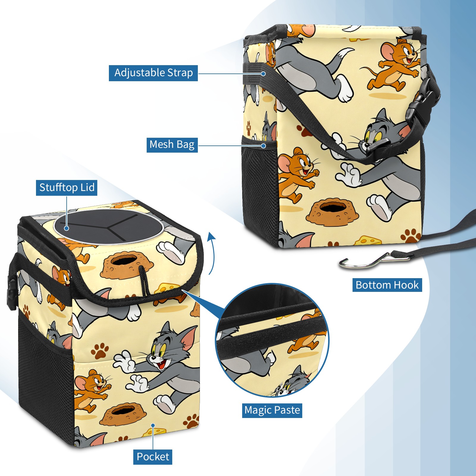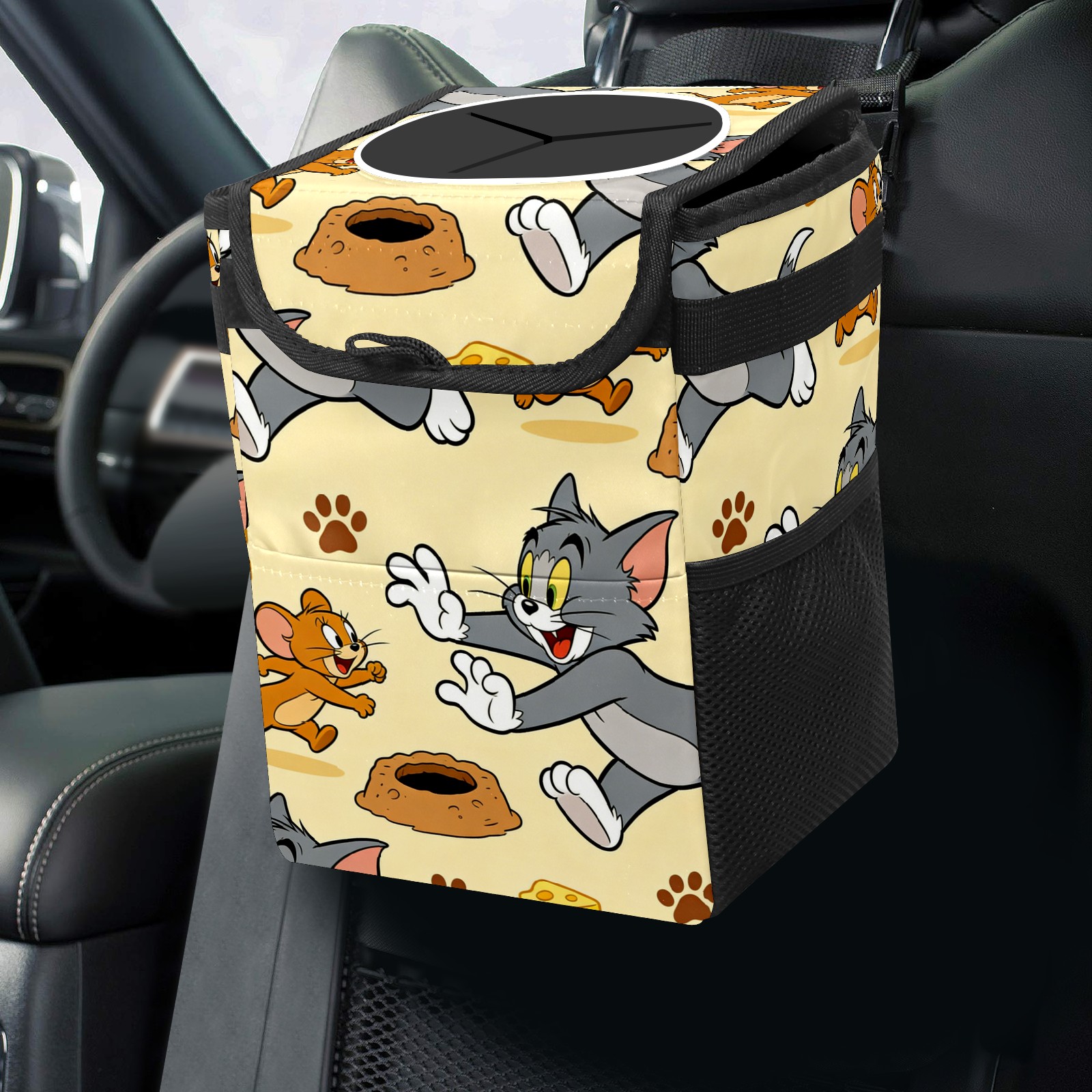 Car Trash Can with Lid, Small Portable Hanging Automotive Garbage Bin for Vehicles, Leakproof Waste Bag Container for SUV Truck Van Interior Auto Travel Road Trips(创作经典IP图12)