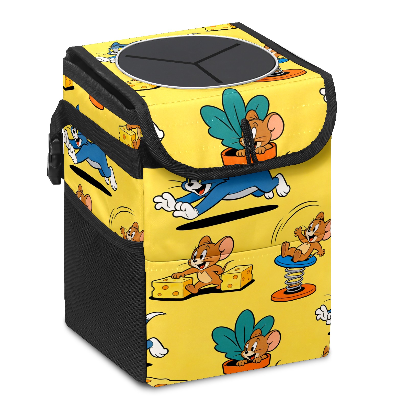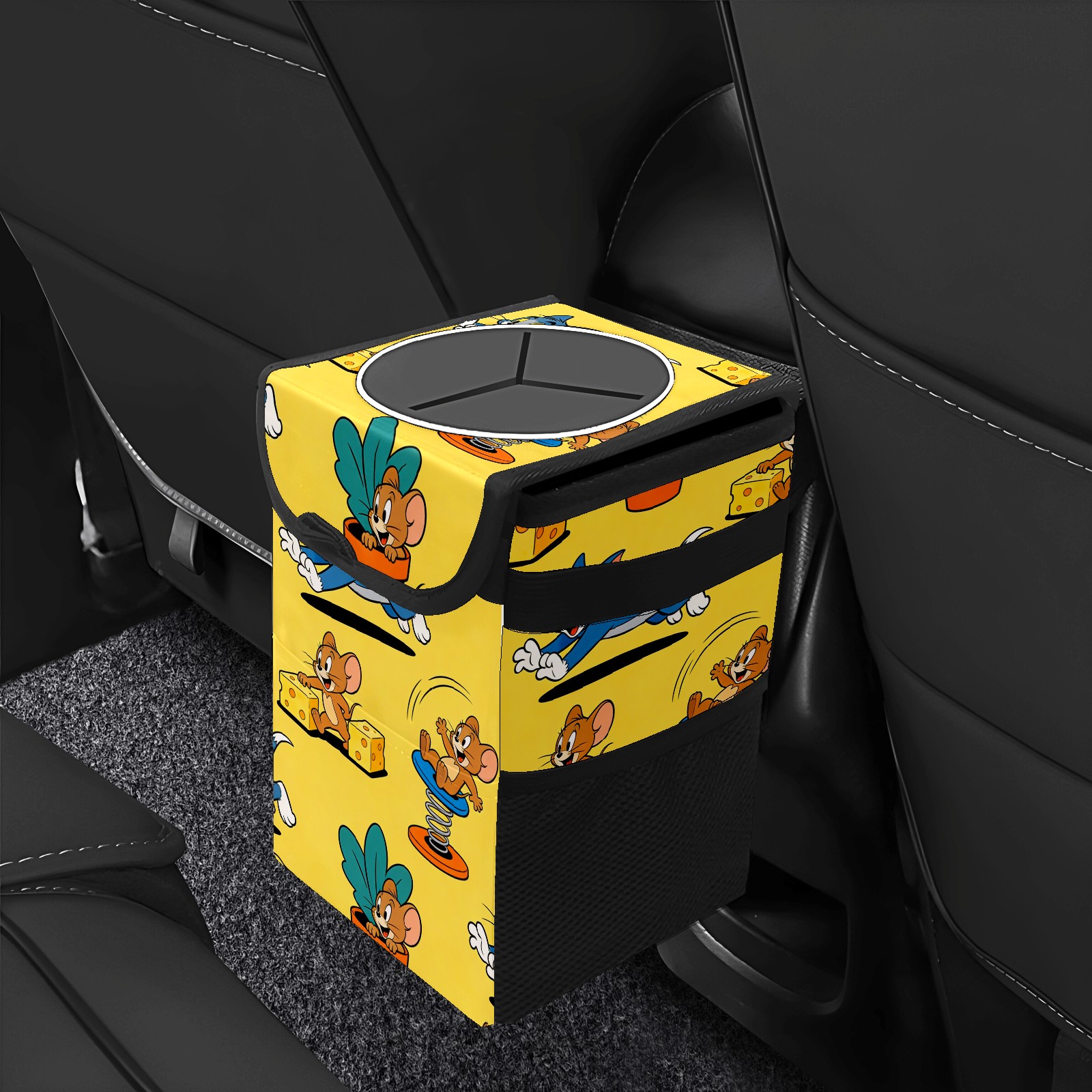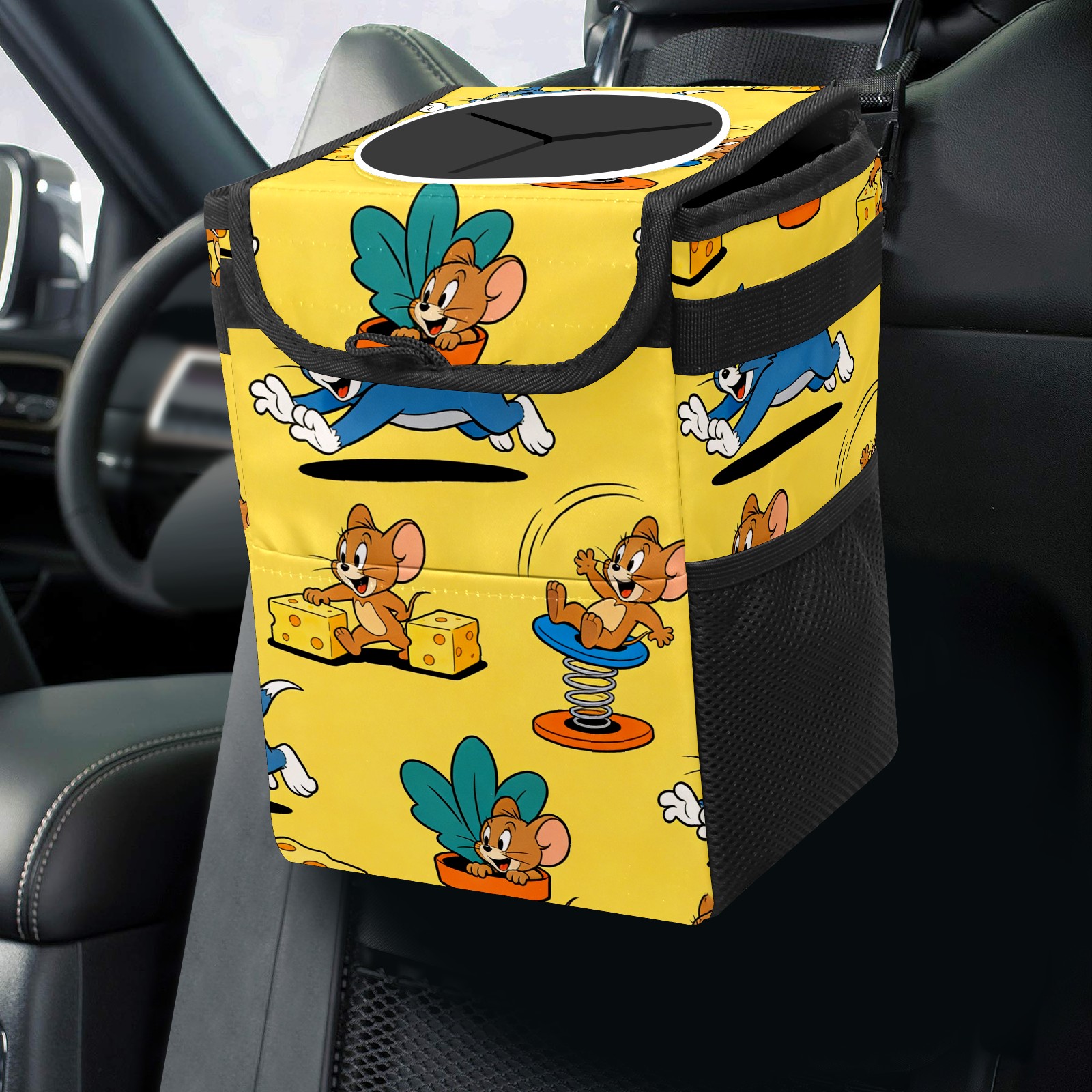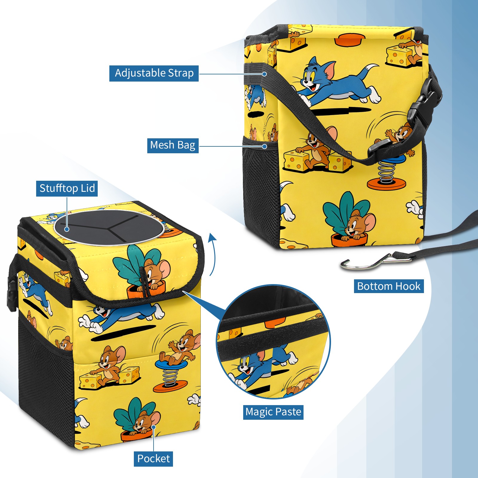 Car Trash Can with Lid, Small Portable Hanging Automotive Garbage Bin for Vehicles, Leakproof Waste Bag Container for SUV Truck Van Interior Auto Travel Road Trips(创作经典IP图1111111)