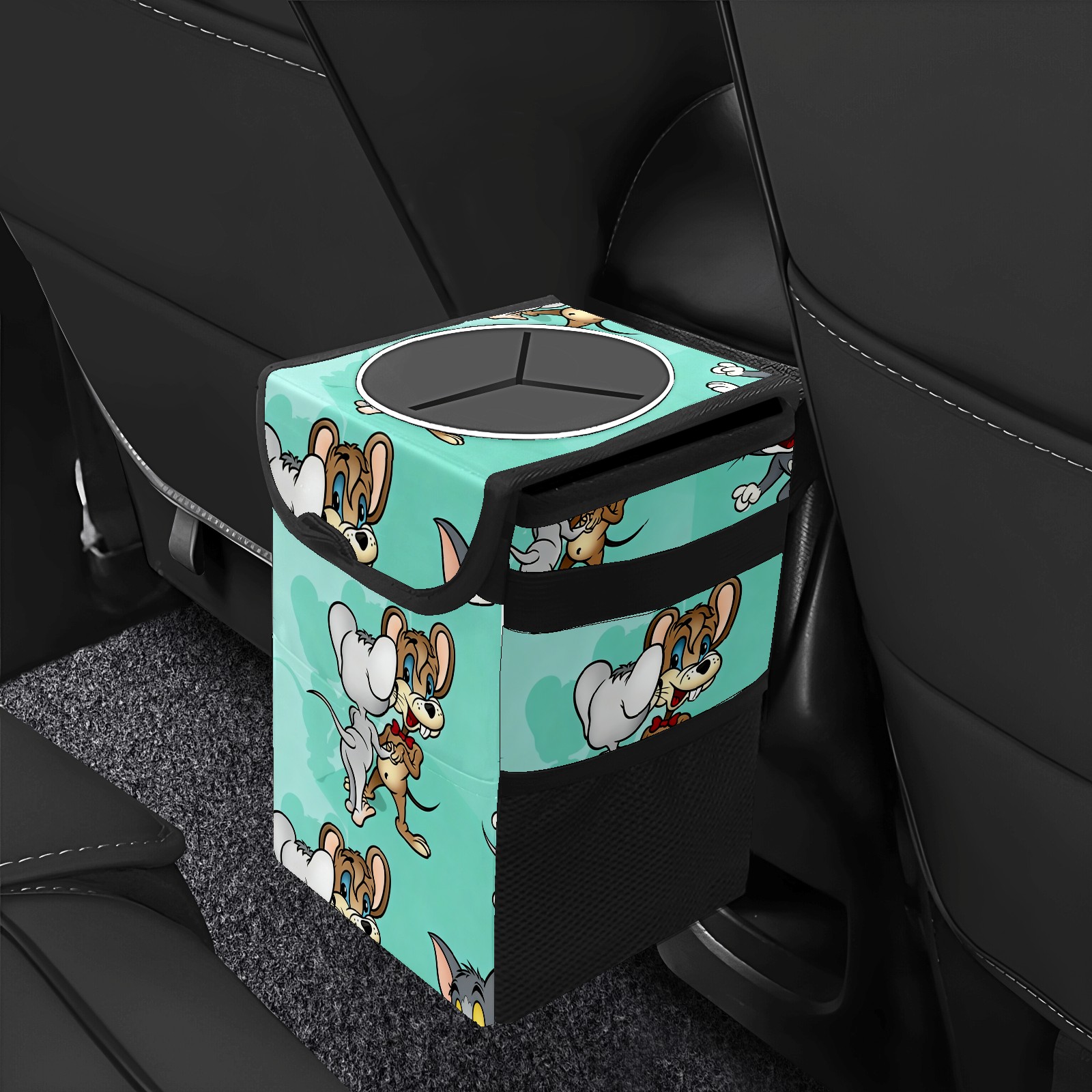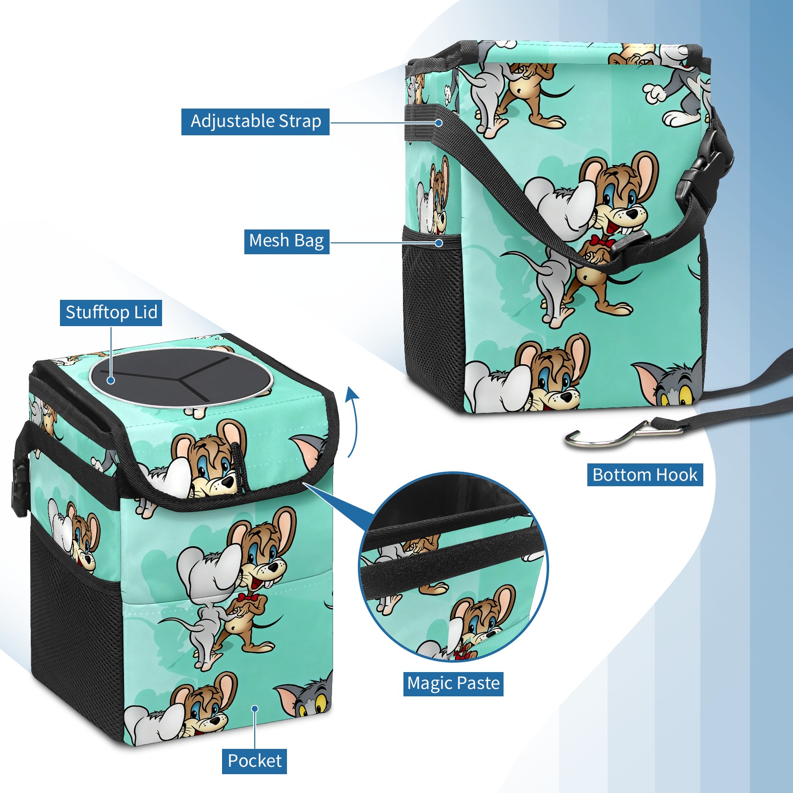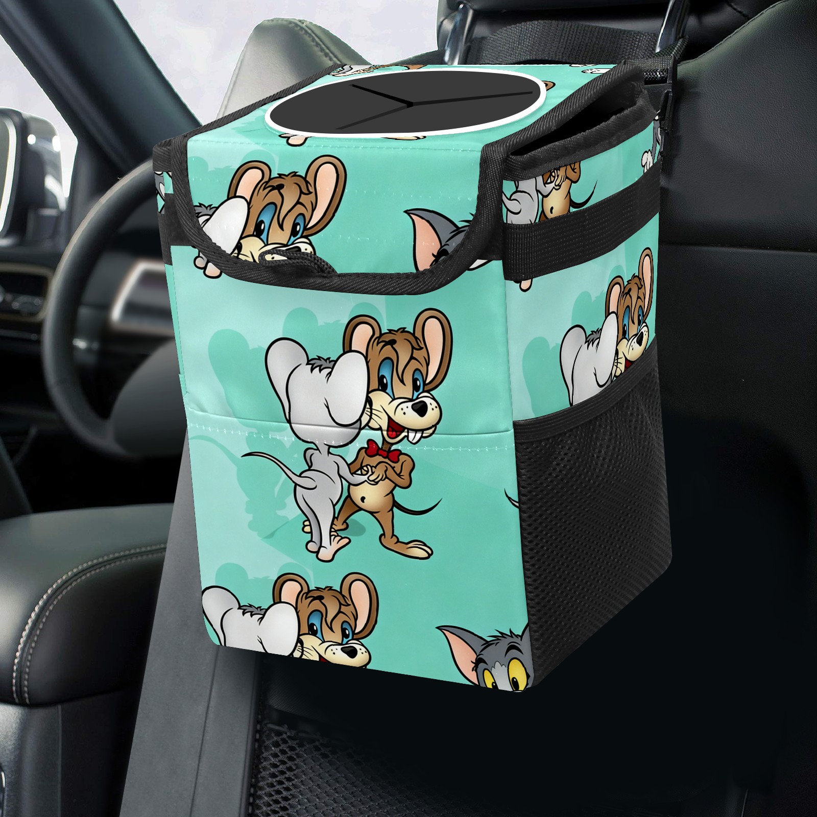 Car Trash Can with Lid, Small Portable Hanging Automotive Garbage Bin for Vehicles, Leakproof Waste Bag Container for SUV Truck Van Interior Auto Travel Road Trips(创作经典IP图 (163))