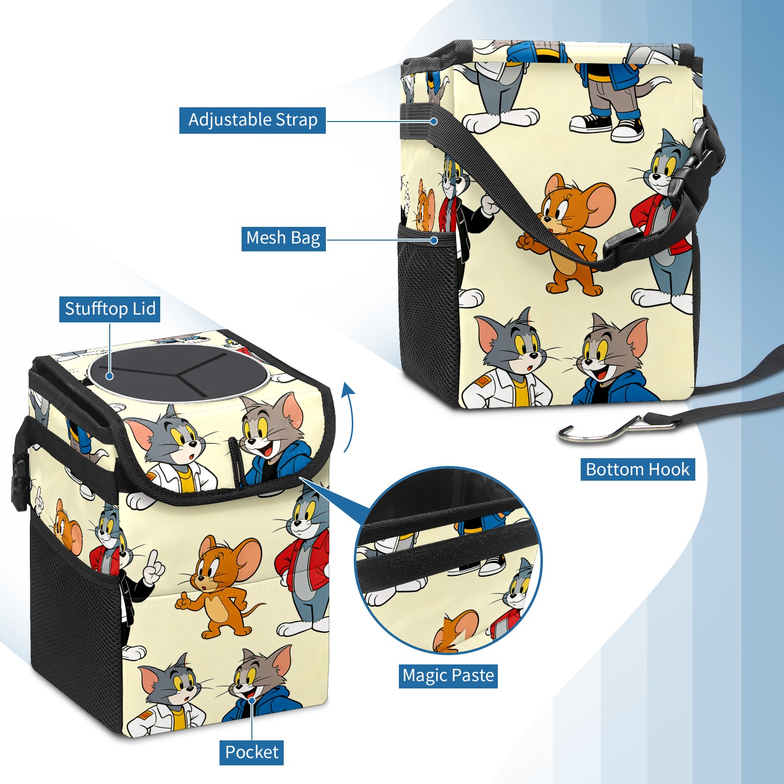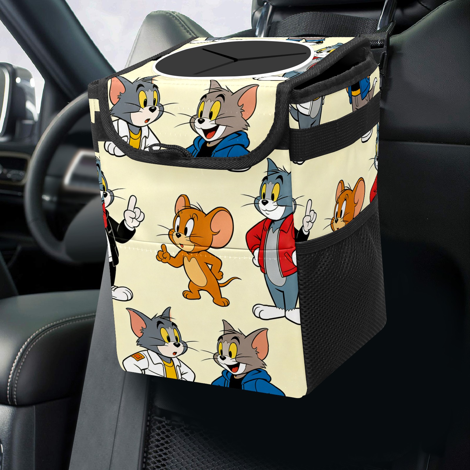 Car Trash Can with Lid, Small Portable Hanging Automotive Garbage Bin for Vehicles, Leakproof Waste Bag Container for SUV Truck Van Interior Auto Travel Road Trips(创作经典IP图 (148))