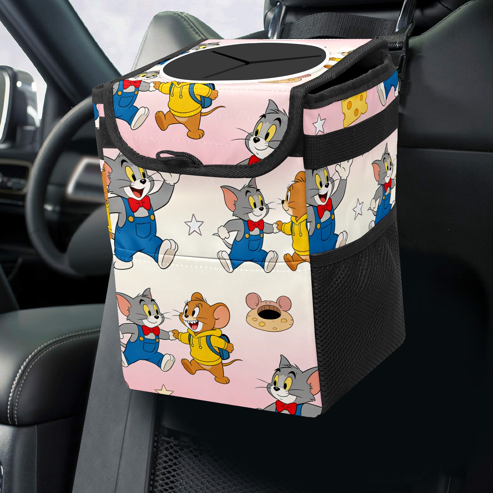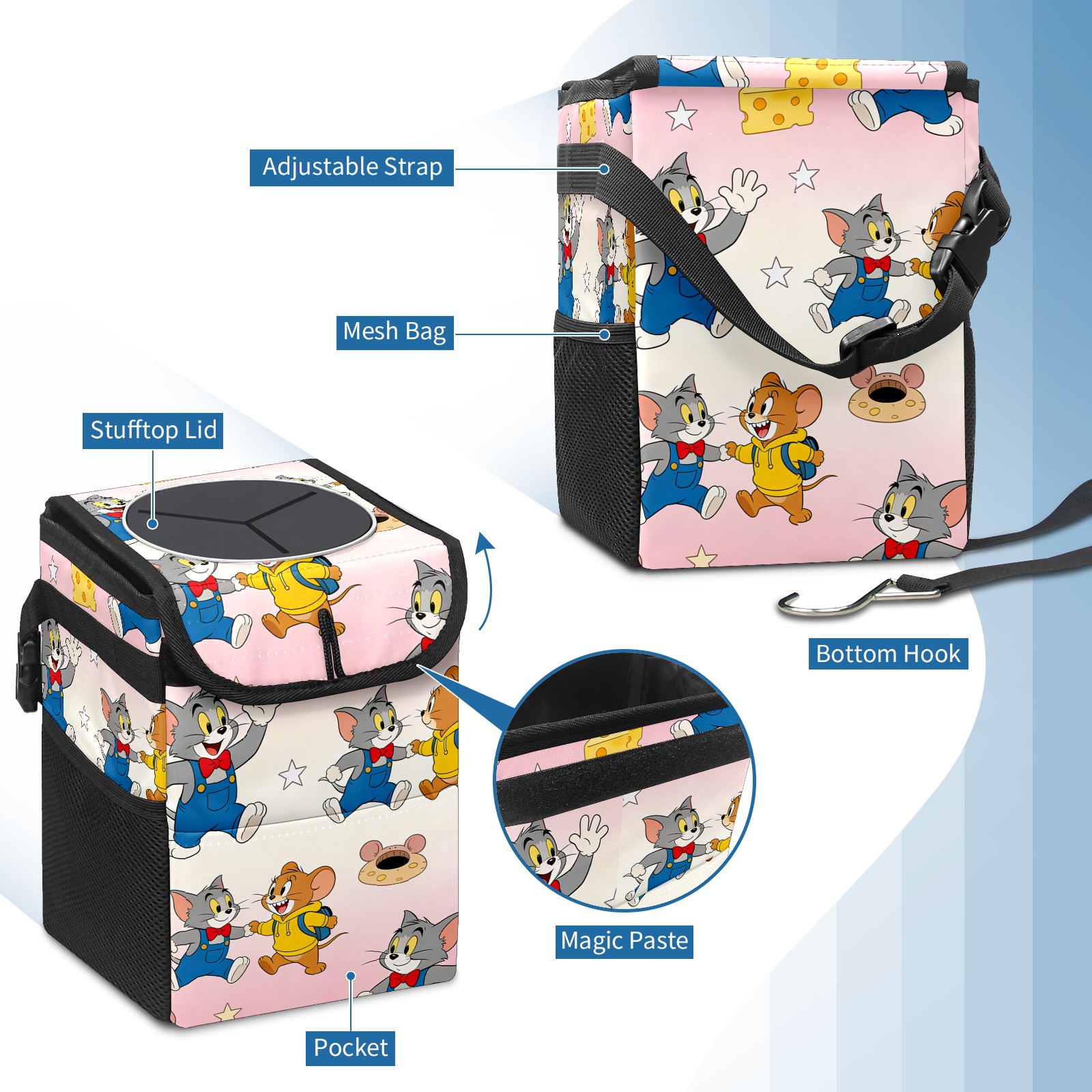 Car Trash Can with Lid, Small Portable Hanging Automotive Garbage Bin for Vehicles, Leakproof Waste Bag Container for SUV Truck Van Interior Auto Travel Road Trips(创作经典IP图 (153))