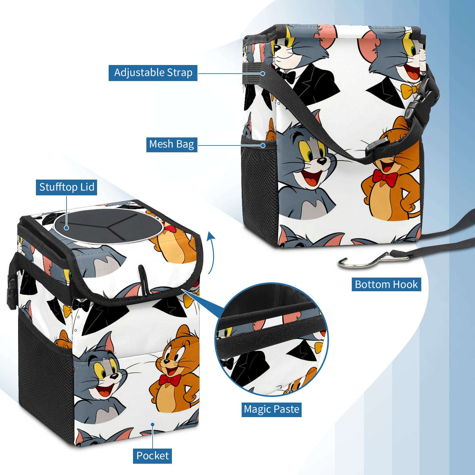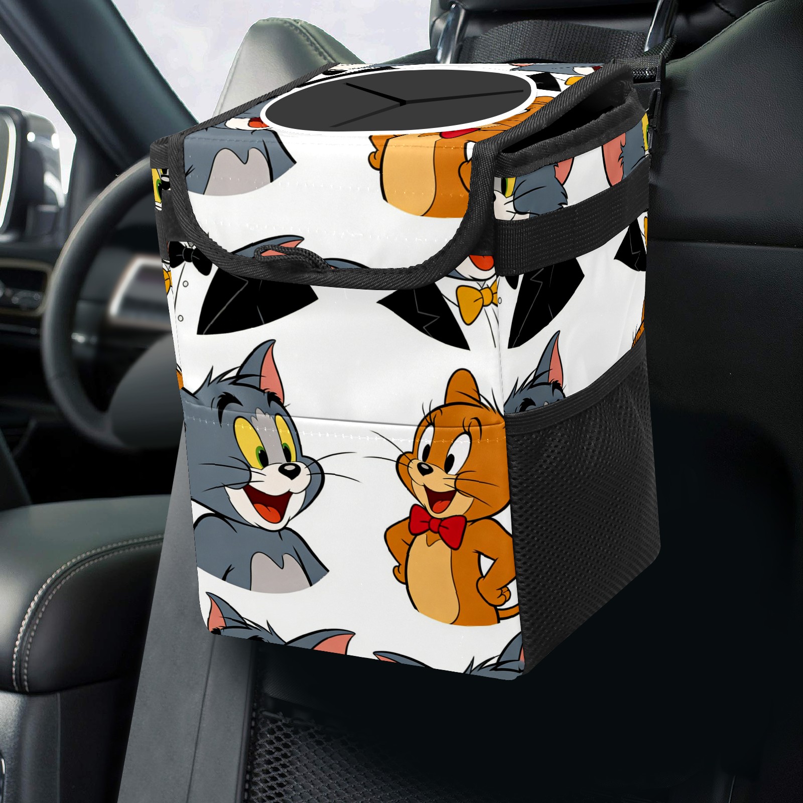 Car Trash Can with Lid, Small Portable Hanging Automotive Garbage Bin for Vehicles, Leakproof Waste Bag Container for SUV Truck Van Interior Auto Travel Road Trips(创作经典IP图 (178))