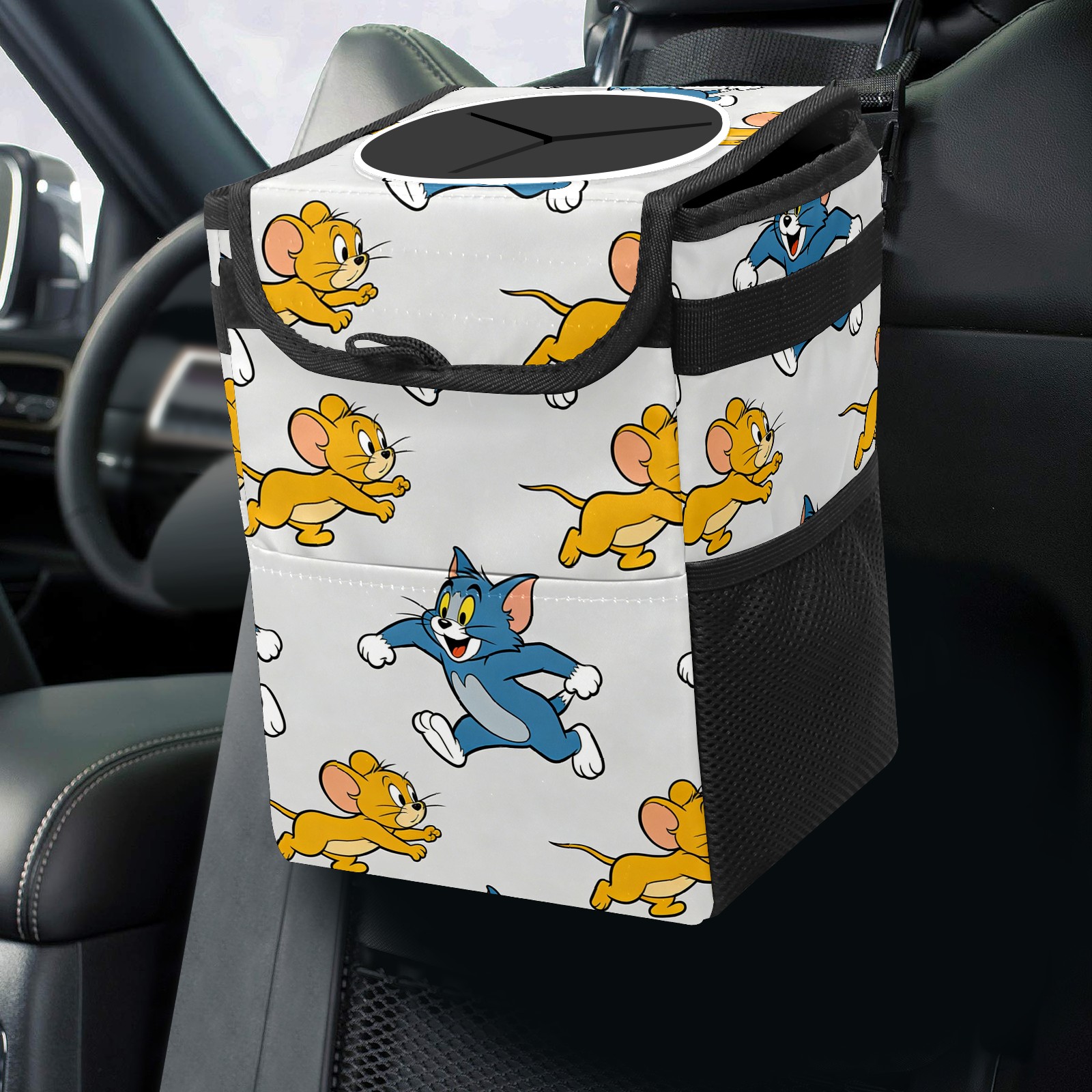 Car Trash Can with Lid, Small Portable Hanging Automotive Garbage Bin for Vehicles, Leakproof Waste Bag Container for SUV Truck Van Interior Auto Travel Road Trips(创作经典IP图 (154))