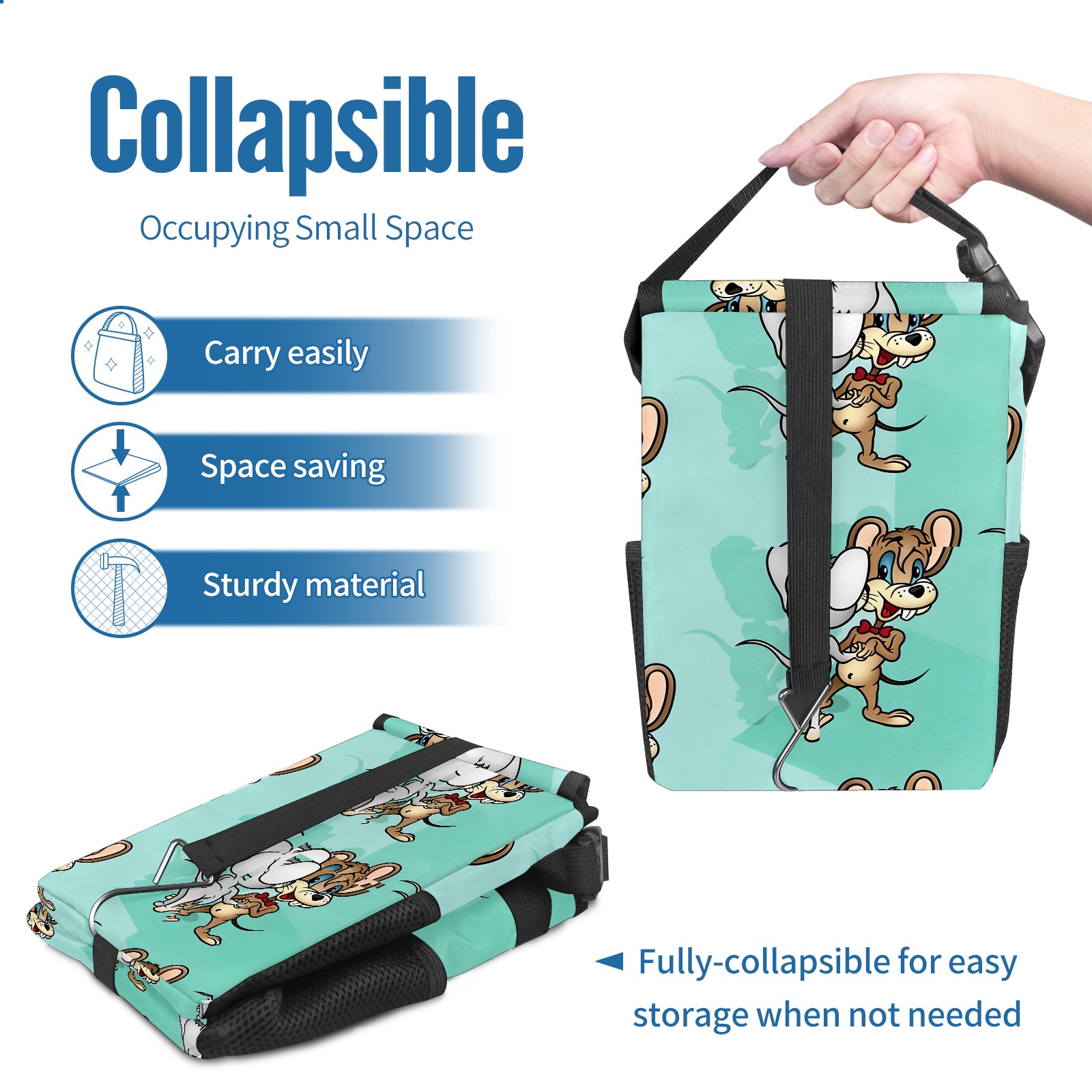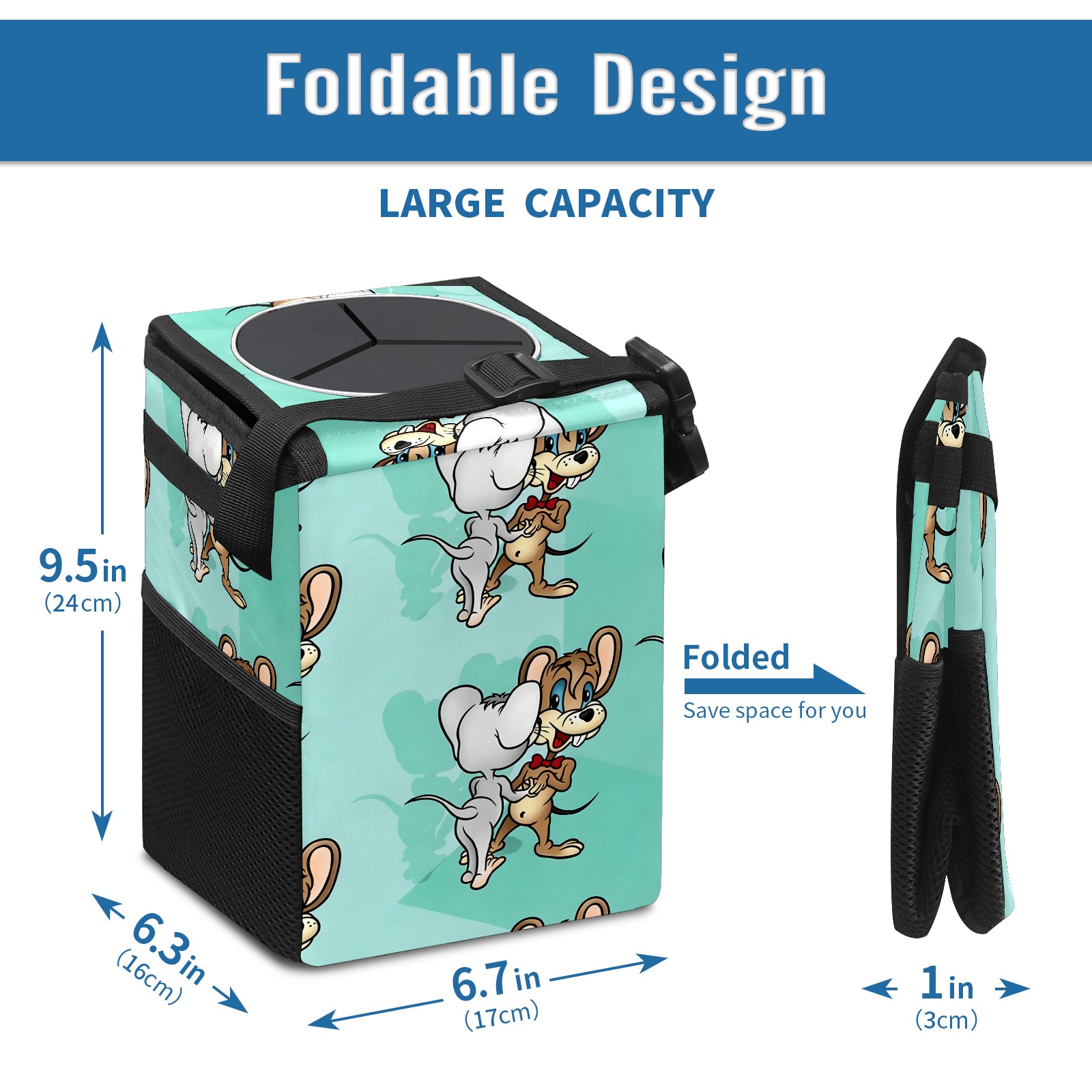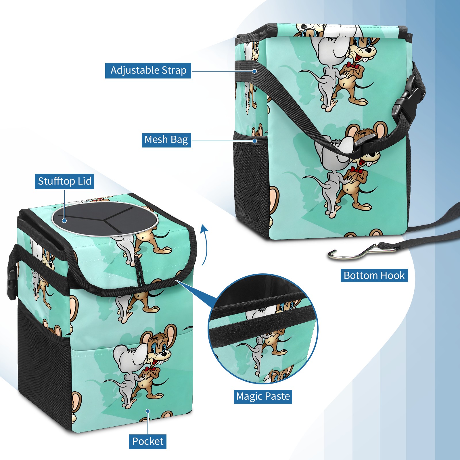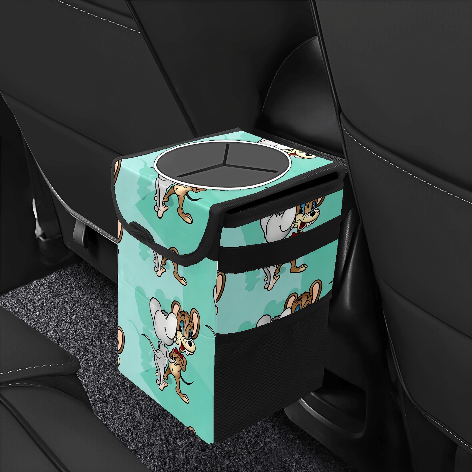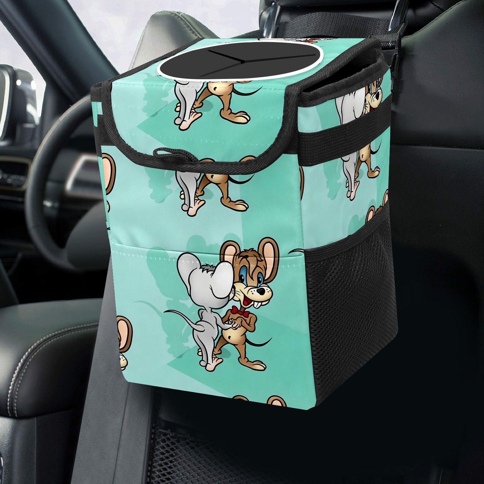 Car Trash Can with Lid, Small Portable Hanging Automotive Garbage Bin for Vehicles, Leakproof Waste Bag Container for SUV Truck Van Interior Auto Travel Road Trips(创作经典IP图 (141))