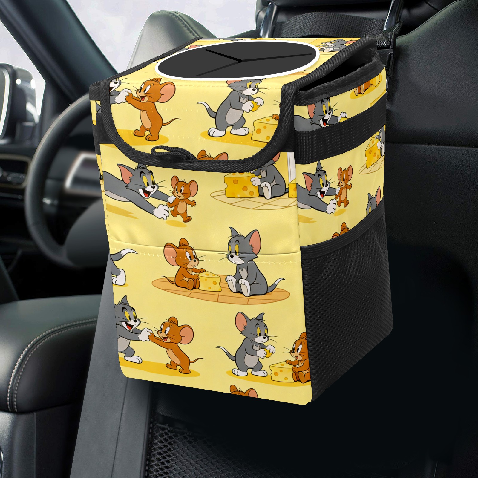 Car Trash Can with Lid, Small Portable Hanging Automotive Garbage Bin for Vehicles, Leakproof Waste Bag Container for SUV Truck Van Interior Auto Travel Road Trips(创作经典IP图 (137))
