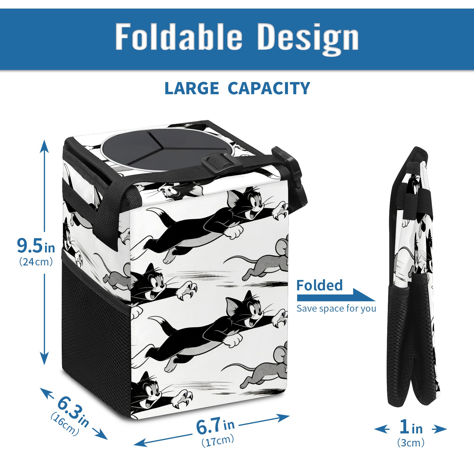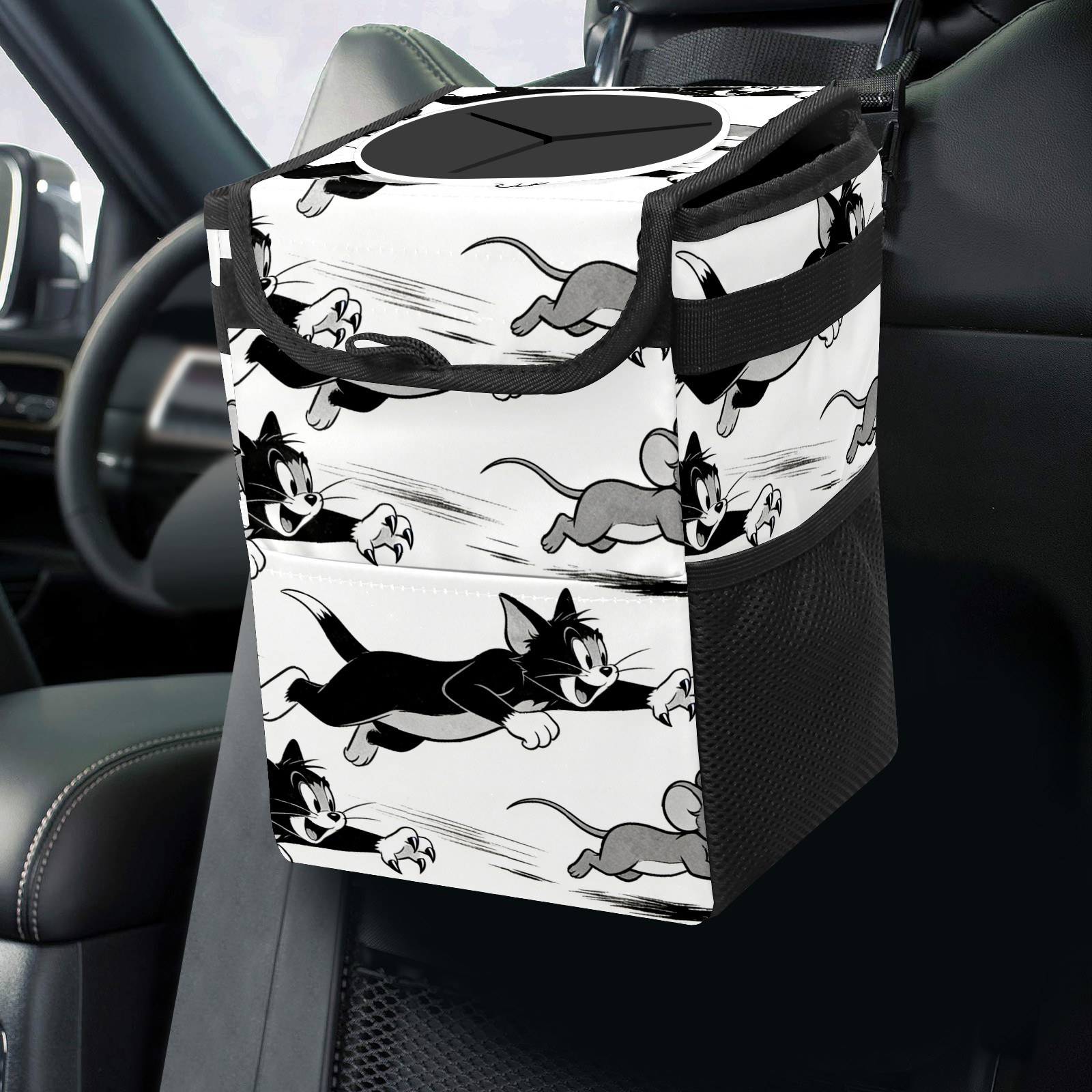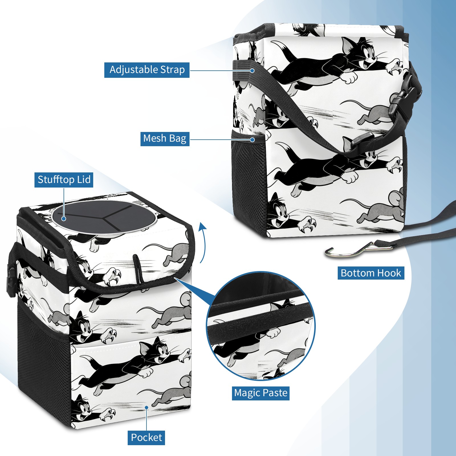 Car Trash Can with Lid, Small Portable Hanging Automotive Garbage Bin for Vehicles, Leakproof Waste Bag Container for SUV Truck Van Interior Auto Travel Road Trips(创作经典IP图123)