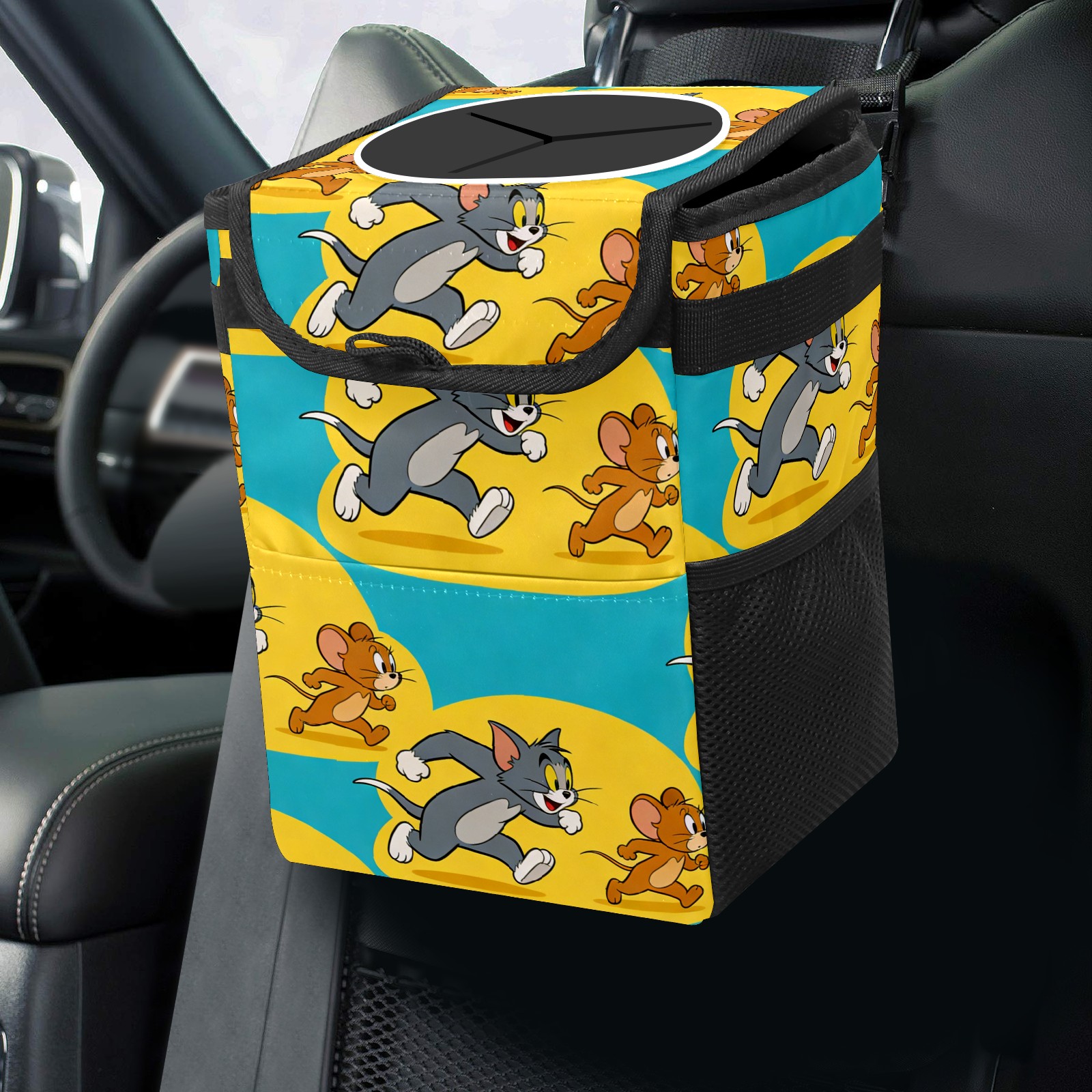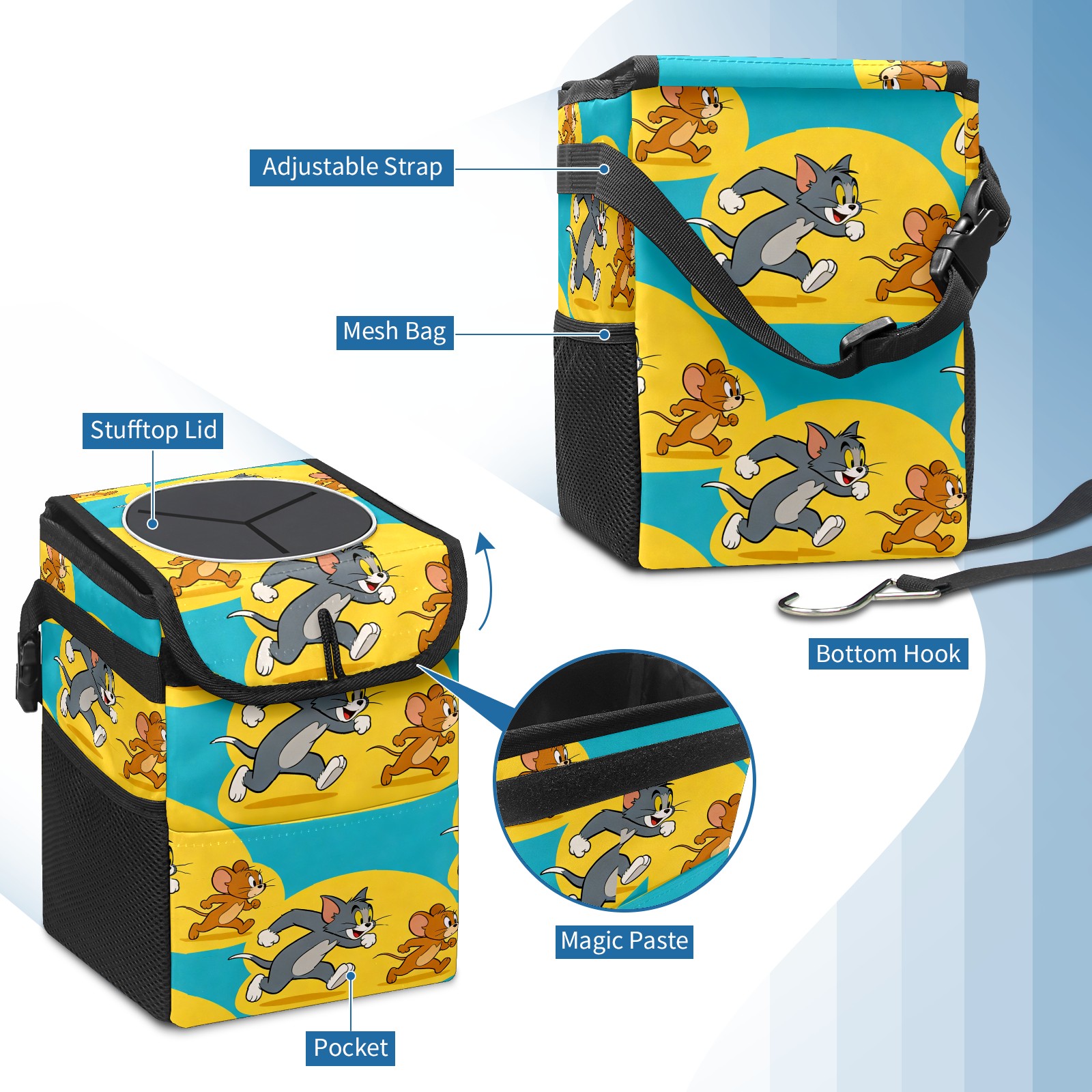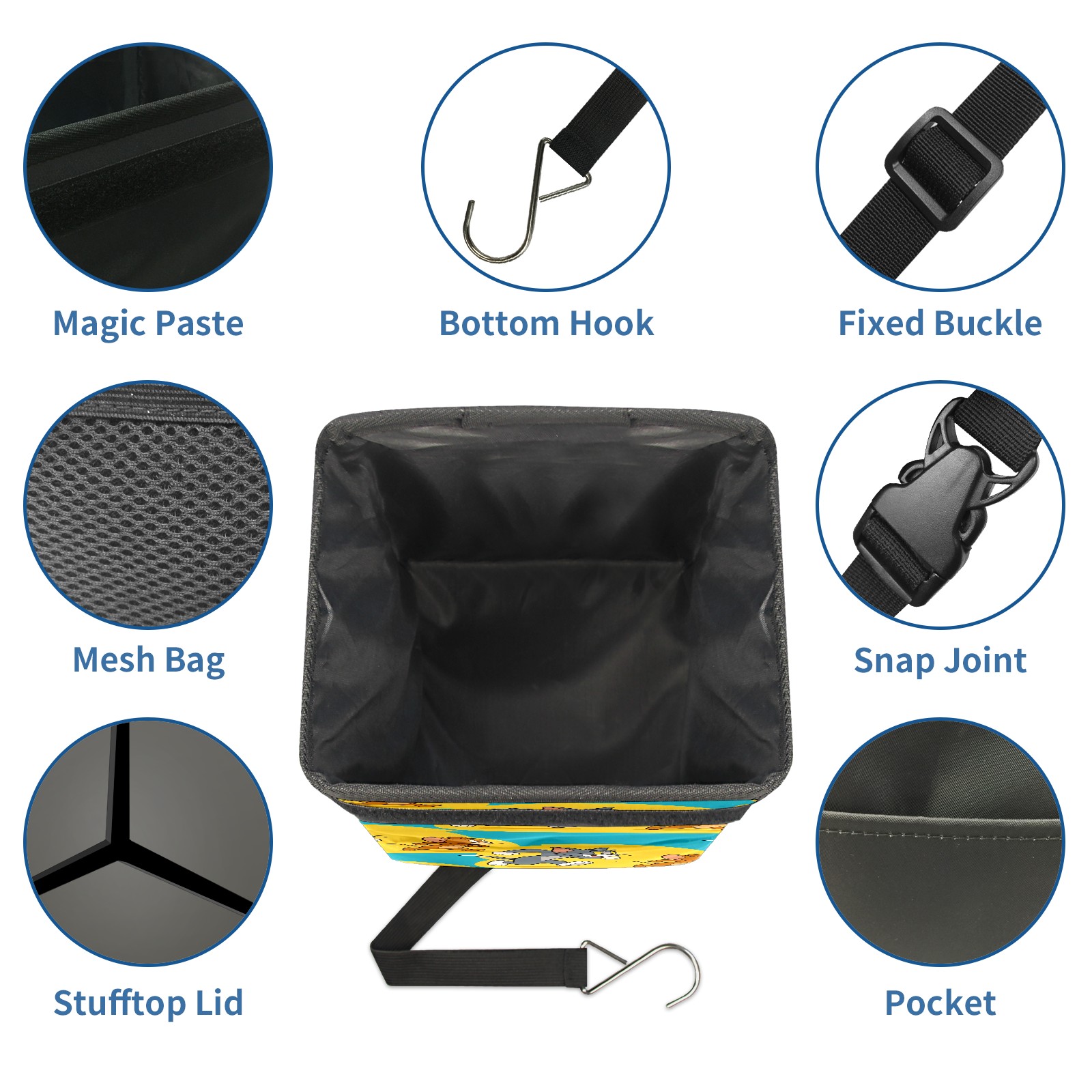 Car Trash Can with Lid, Small Portable Hanging Automotive Garbage Bin for Vehicles, Leakproof Waste Bag Container for SUV Truck Van Interior Auto Travel Road Trips(创作经典IP图 (138))