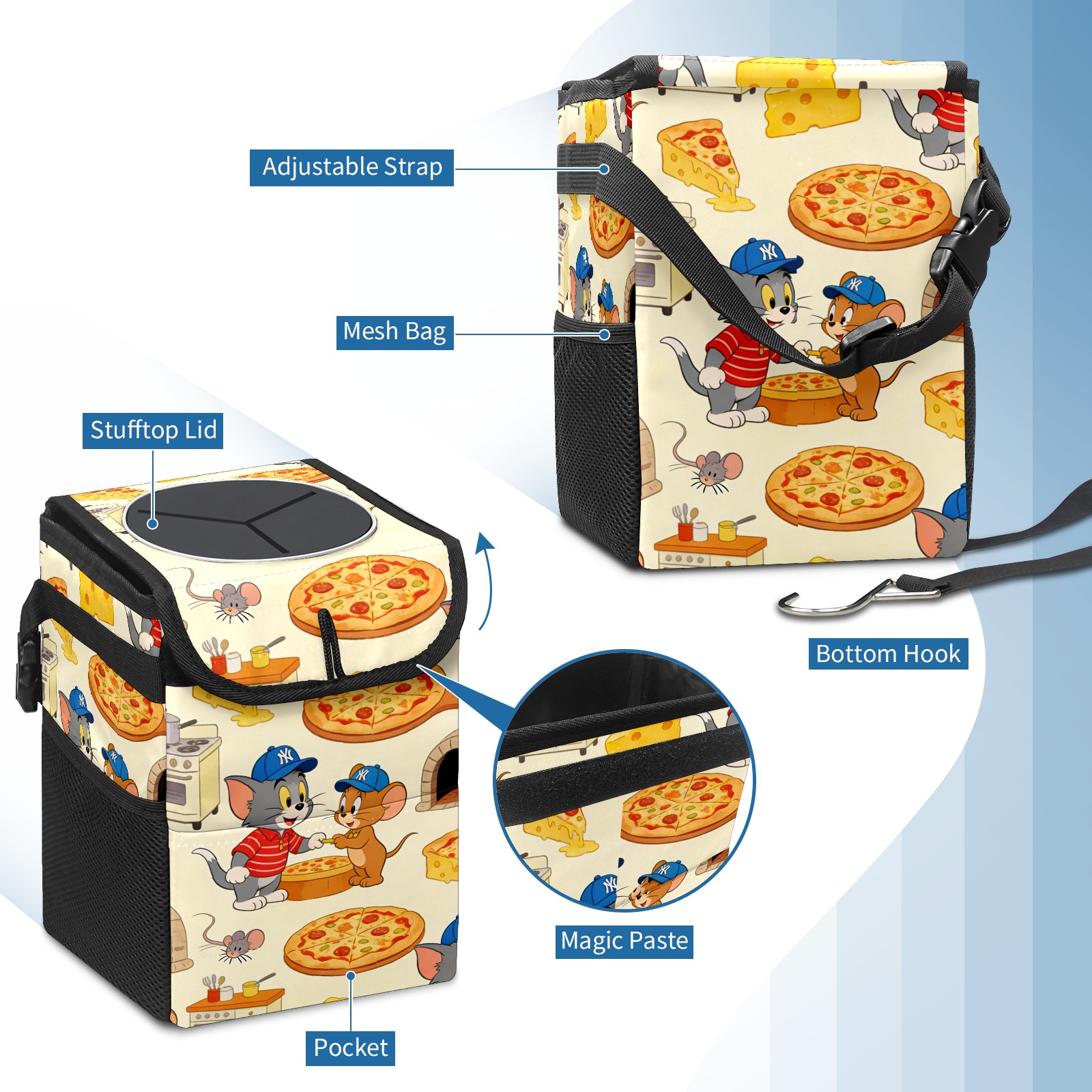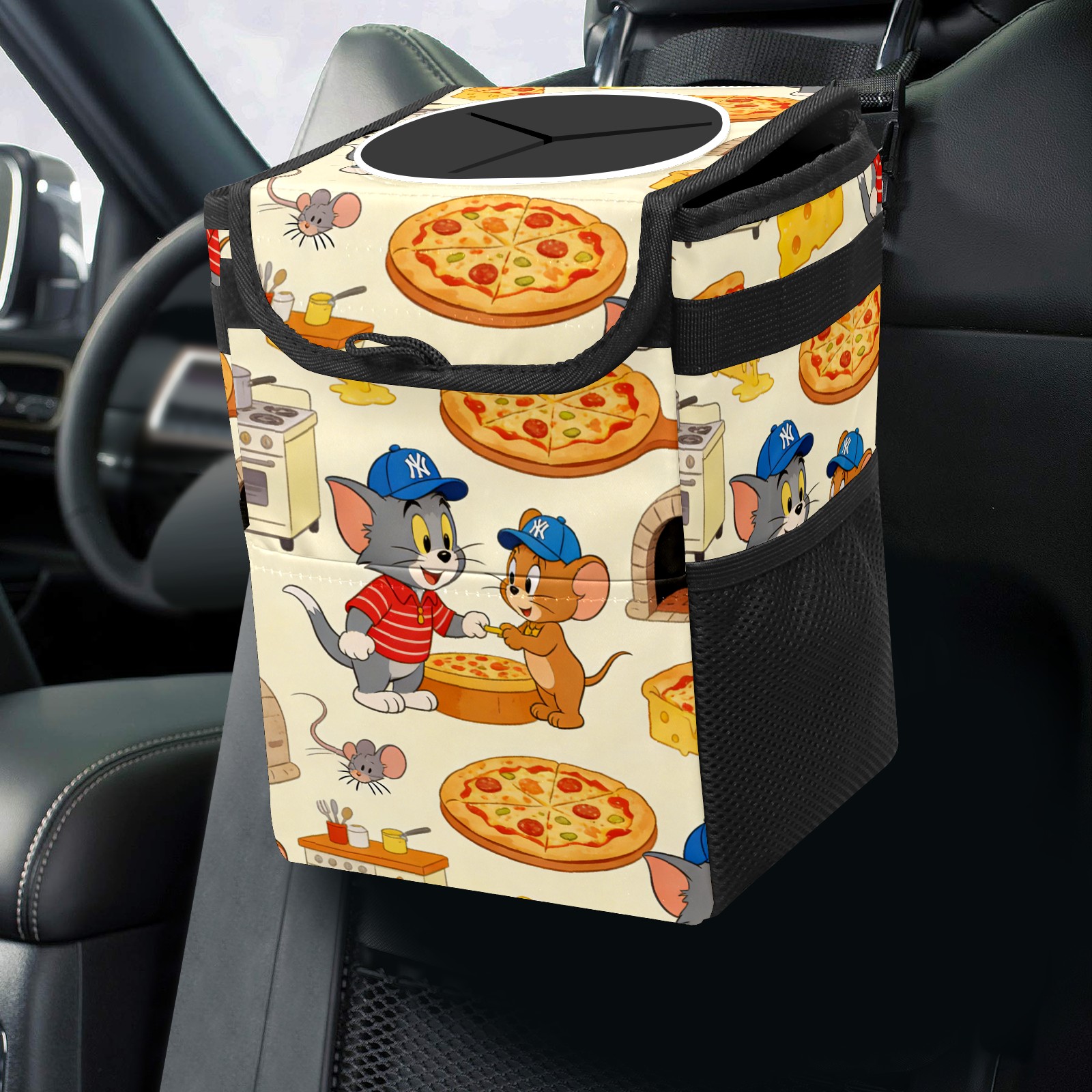 Car Trash Can with Lid, Small Portable Hanging Automotive Garbage Bin for Vehicles, Leakproof Waste Bag Container for SUV Truck Van Interior Auto Travel Road Trips(创作经典IP图 (121))