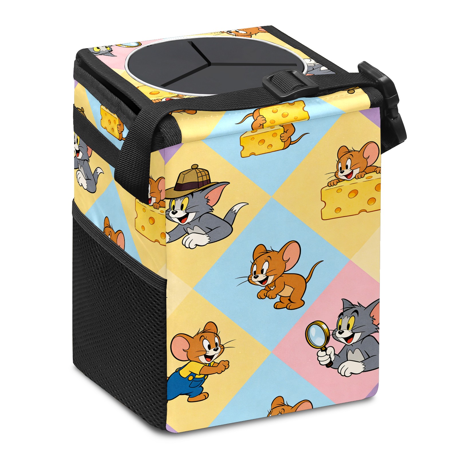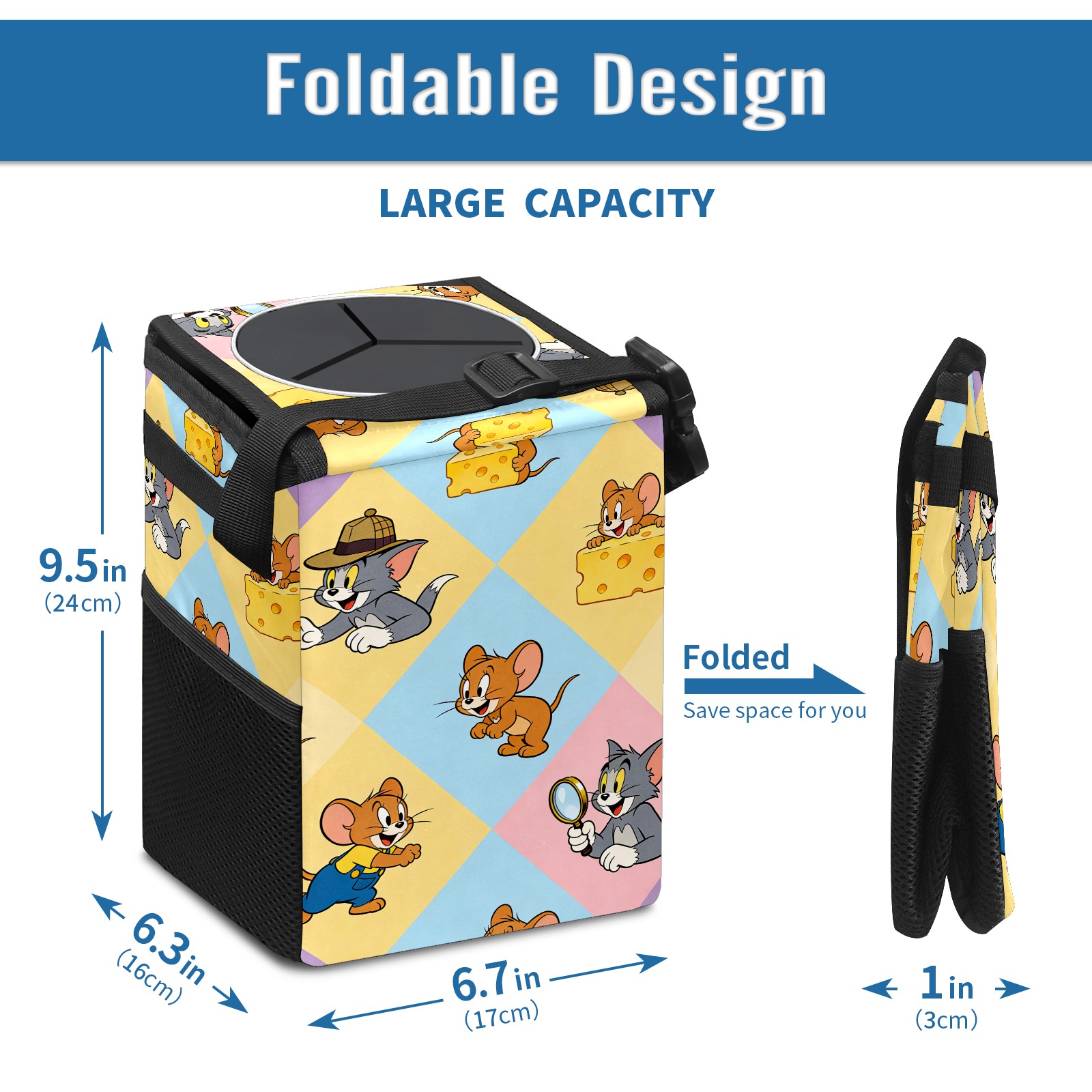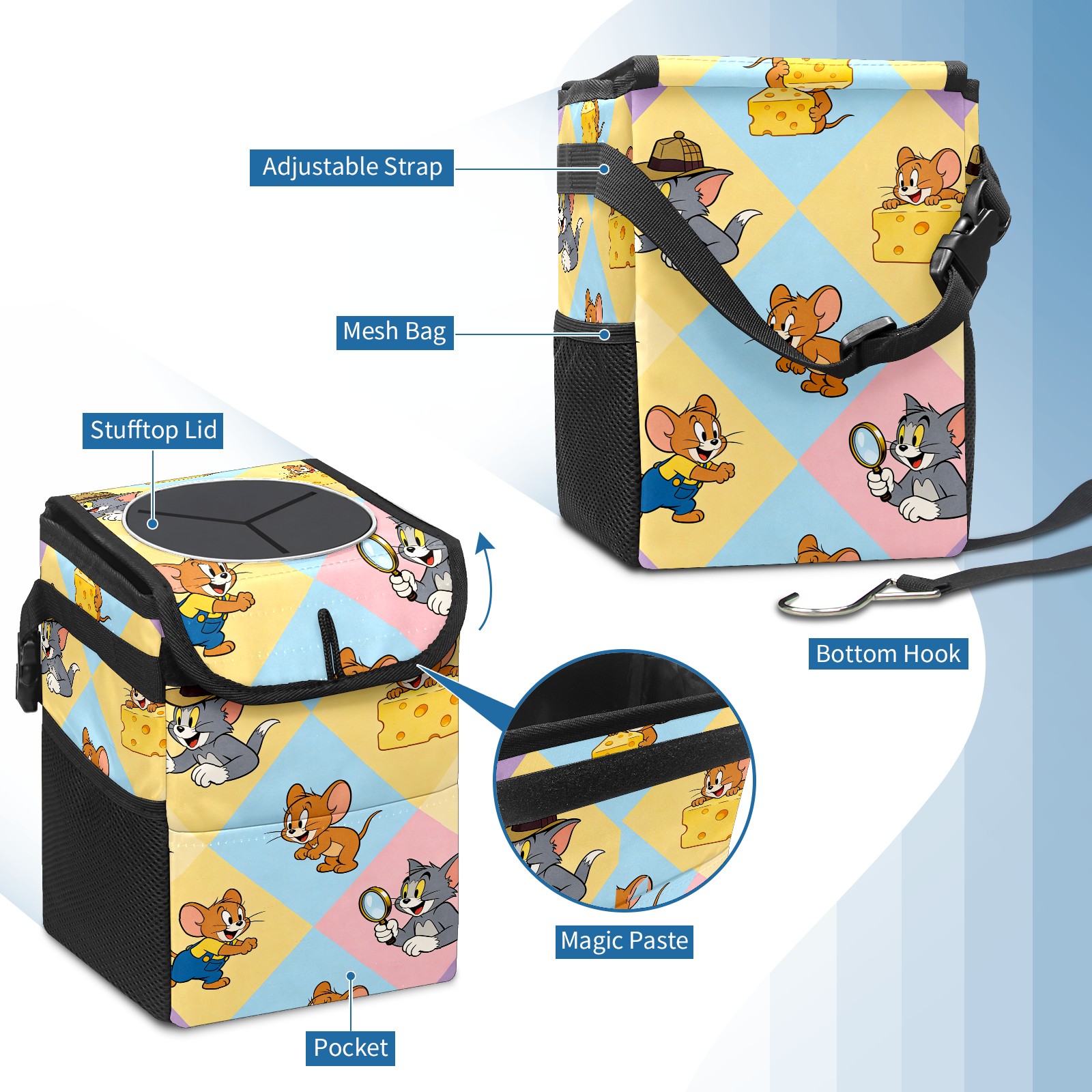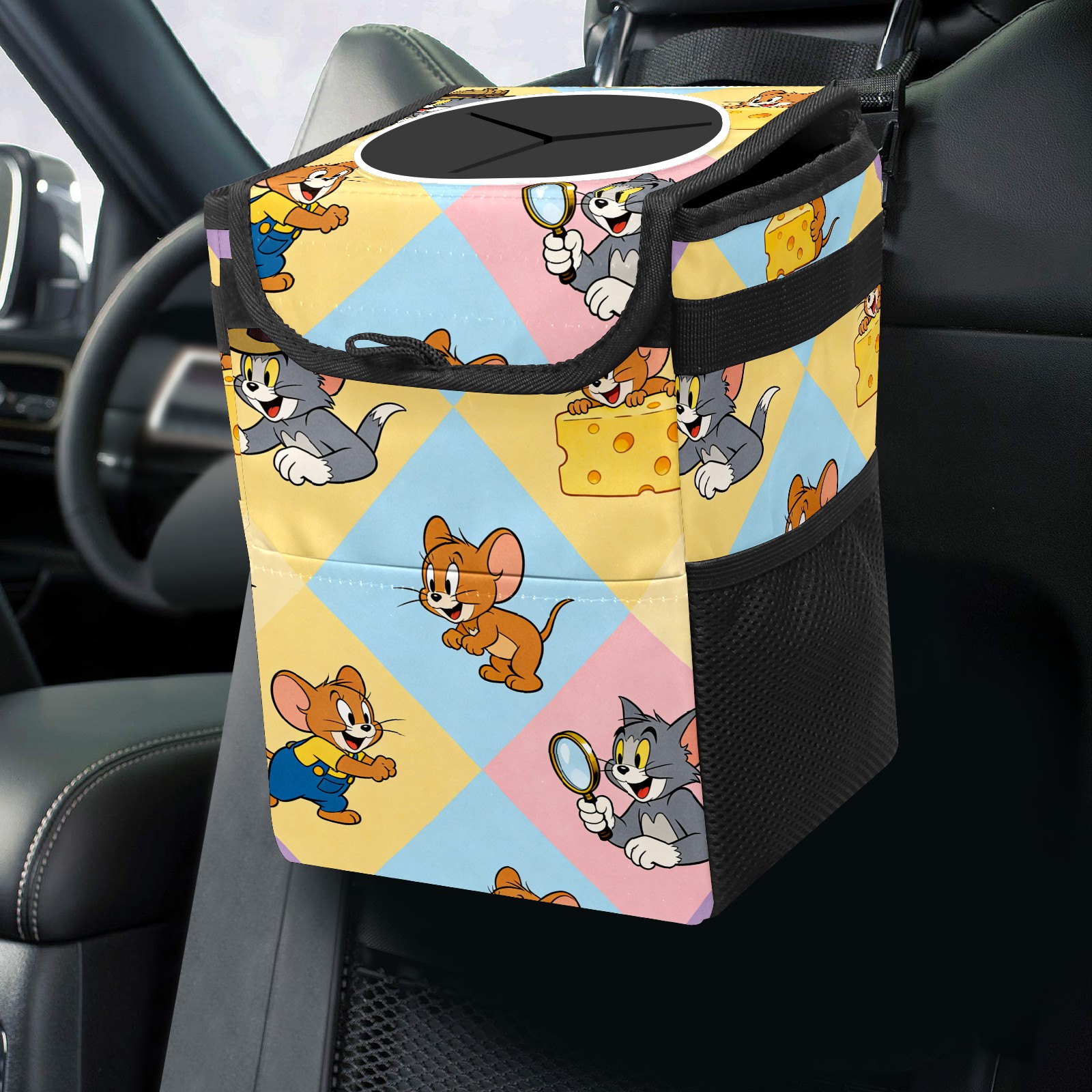Car Trash Can with Lid, Small Portable Hanging Automotive Garbage Bin for Vehicles, Leakproof Waste Bag Container for SUV Truck Van Interior Auto Travel Road Trips(创作经典IP图 (99))